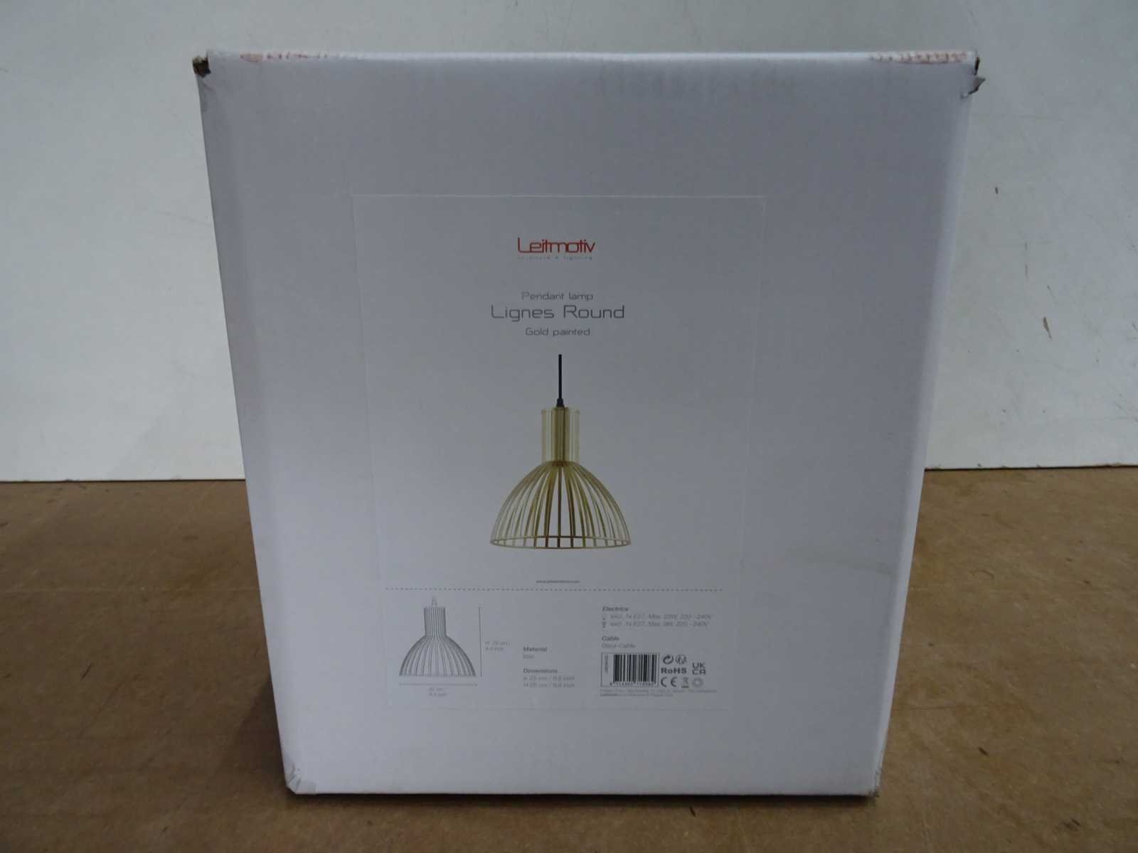 EAN: 8714302715082 Merk: Leitmotiv Model: Lignes Round Fitting: E27 Kleur: goud Breedte: 25cm Hoogte: 15cm Materiaal: ijzer