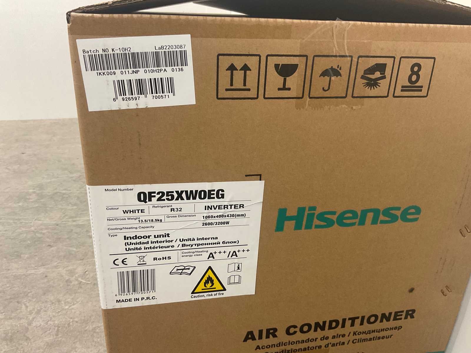 Deze split-unit airconditioner is geschikt voor zowel koelen als verwarmen en bestaat uit een binnenunit en een buitenunit met invertertechnologie en het R32-koudemiddel. Met een koelvermogen van 2,6 kW en een verwarmingsvermogen van 3,2 kW is dit model geschikt voor kleinere tot middelgrote ruimtes tot circa 20–25 m² (SEER 8,8 / SCOP 6,0). Deze serie staat bekend om zijn schone-luchttechniek met verse luchttoevoer en meervoudige filtratie. Hierdoor wordt niet alleen de temperatuur geregeld, maar ook de luchtkwaliteit merkbaar verbeterd. Binnenunit (QF25XWOEG): afmetingen: 1060 × 400 × 430 mm, geluidsniveau: 53dB, luchtvolume: 580 m³/u, vermogensinput: 20W, stroominput: 0,2A, met een gewicht (netto) van: 13,5 kg. Buitenunit (QF25XWOEW): afmetingen: 940 × 385 × 630 mm, geluidsniveau (sound power): 60 dB, Max. persdruk: 4,15 MPa, Max. zuigdruk: 1,6 MPa, met een gewicht (netto) van: 33 kg en een beschermingsklasse van: IPX4. Koelcapaciteit (BTU/h): 9000 Koelcapaciteit (W): 2600 Koelcompressor: true Verwarmingscapaciteit: 3200 Type koudemiddel: R32 Split-unit: true Aansluiting: 220-240V Eigen gewicht: 46,5kg