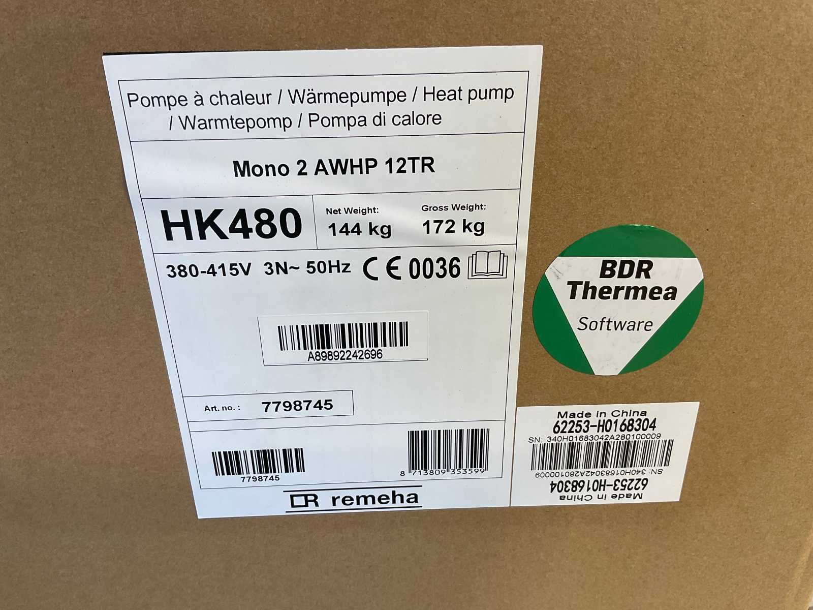 Buitendeel/Buitenunit warmtepomp monoblock AWHP 12TR (energiebesparende type pomp). Verwarmingsvermogen bij 7/35gr C volgens EN 14511 12.1 kW. Geschikt voor bijverwarming CV. Niet geschikt voor zwembadwaterverwarming, geen zwembadregeling. Wel regeling voor sturing CV-ketel en wel regeling voor sturing buffervat. Modulerende compressor. Type koudemiddel R32. Bekabelde regelunit is inbegrepen (zie foto's). Type: Mono 2 AWHP 12TR Serienummer: 7798745 Vermogen: 12kW Aansluiting: 380-415V Eigen gewicht: 144kg Totale afmeting L: 526mm Totale afmeting Breedte: 1385mm Totale afmeting Hoogte: 945mm