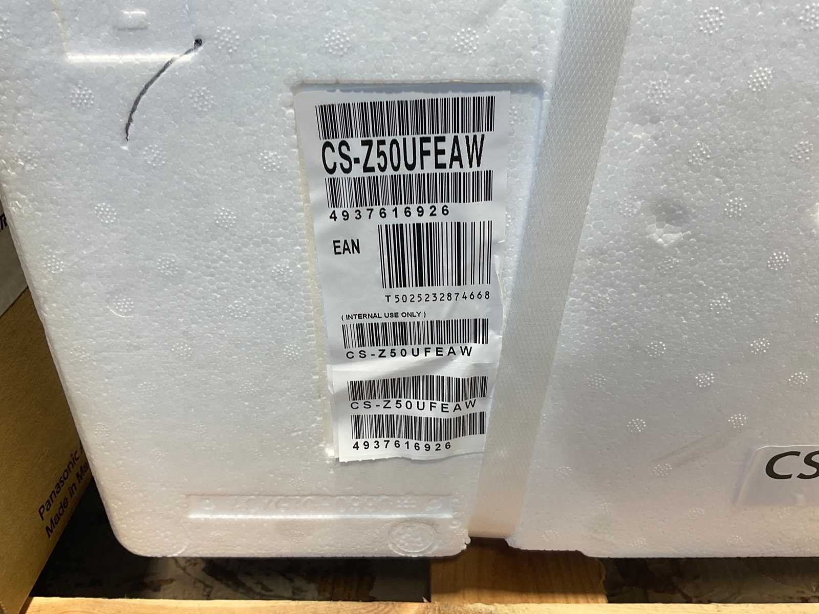 Pallet met 3 stuks Panasonic CS-XZ25ZKEW wandunits en 1 stuk Panasonic CS-Z50UFEAW vloerunit. De Panasonic CS-XZ25ZKEW is een wandgemonteerde binnenunit uit de Etherea-serie, geschikt voor toepassing in single-split en multi-split airconditioningsystemen. De unit werkt met koudemiddel R32 en beschikt over geïntegreerde Wi-Fi. Deze wandunit heeft een nominaal koelvermogen van 2,5 kW en een nominaal verwarmvermogen van 3,6 kW. De energie-efficiëntie bedraagt SEER 9,40 en SCOP 5,20 volgens de productspecificaties. De afmetingen van de unit bedragen 870 × 229 × 295 mm (B × D × H) en het gewicht is 10 kg. De Panasonic CS-Z50UFEAW is een vloerstaande binnenunit die geschikt is voor toepassing in single-split en multi-split airconditioningsystemen. De unit werkt met koudemiddel R32. Deze vloerunit heeft een nominaal koelvermogen van 5,0 kW en een nominaal verwarmvermogen van 5,8 kW. De afmetingen van de unit bedragen 750 × 207 × 600 mm (B × D × H) en het gewicht is 13 kg. Merk: Panasonic Type: CS-XZ25ZKEW/ CS-Z50UFEAW Koelcapaciteit (W): 2500-5000 Verwarmingscapaciteit: 3600-5300 Type koudemiddel: R32 Split-unit: true Aansluiting: 230V Eigen gewicht: 10-13kg