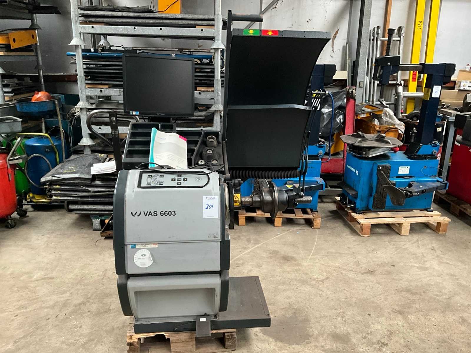 Merk: Beissbarth Type: VAS 6603 Bouwjaar: 2011 Serienummer: 1694200265 Aansluiting: 230V Totale afmeting L: 930mm Totale afmeting Breedte: 1150mm Totale afmeting Hoogte: 1460mm