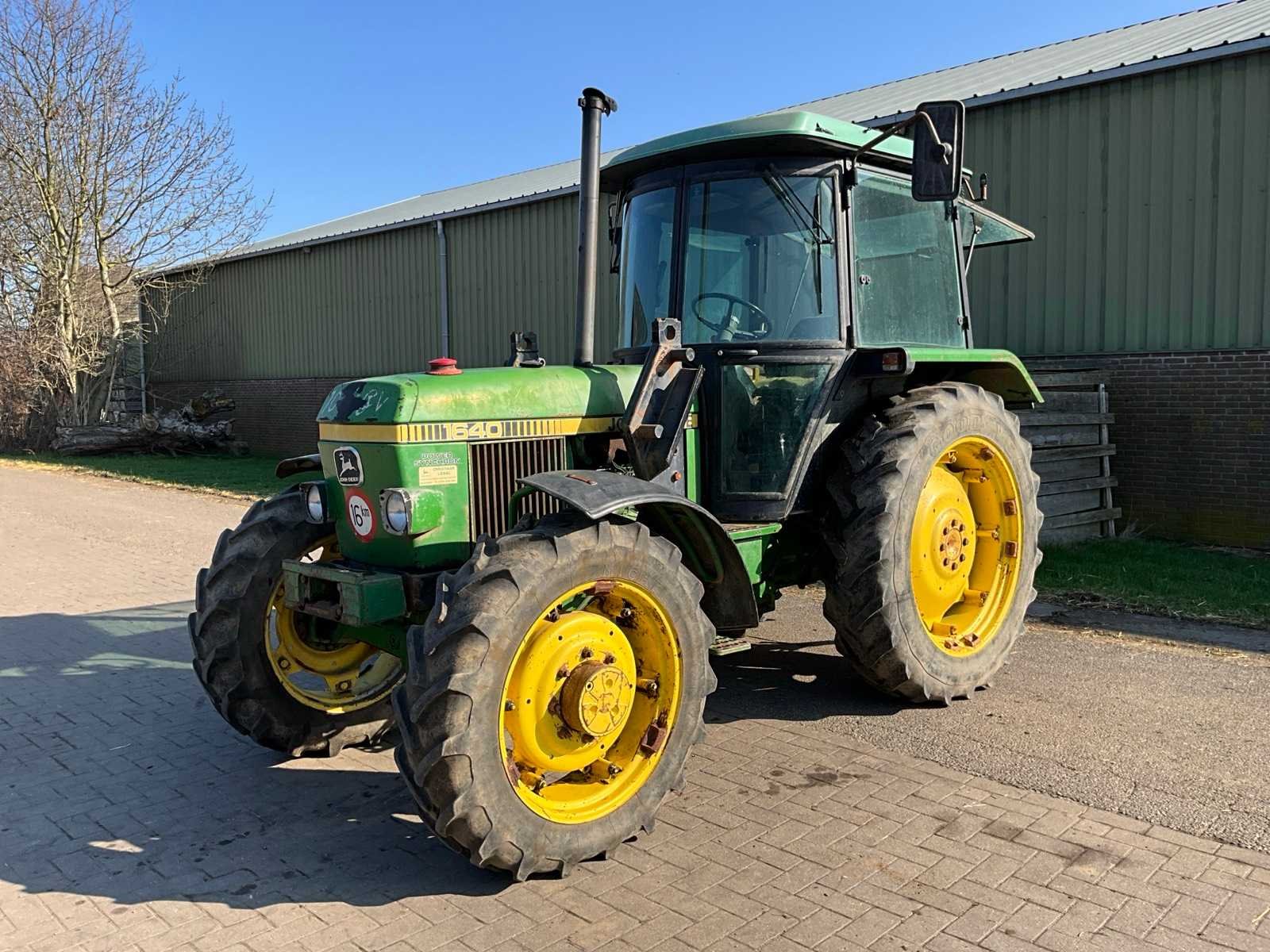 Voorzien van hefinrichting, Merk: John Deere Type: 1640 Power Synchron Serienummer: 542074 Motorvermogen (kW): 46kW Afgelezen urenstand: 8976 Versnellingsbaktype: Handgeschakeld Aantal hydraulische ventielen achter: 2 Bandenmaat voor: 11.2R28 Bandenmaat achter: 13.6R38 Cabine: true Totale afmeting L: 3500mm Totale afmeting Breedte: 1900mm Totale afmeting Hoogte: 2600mm