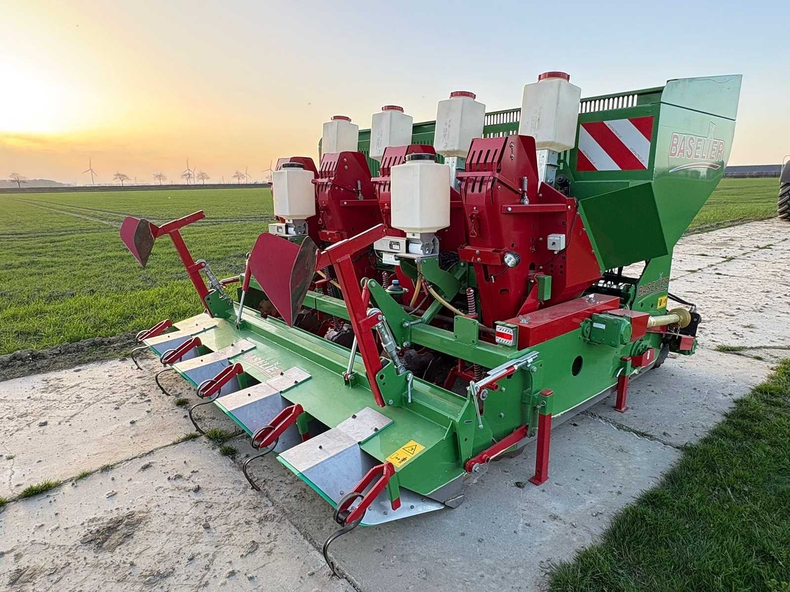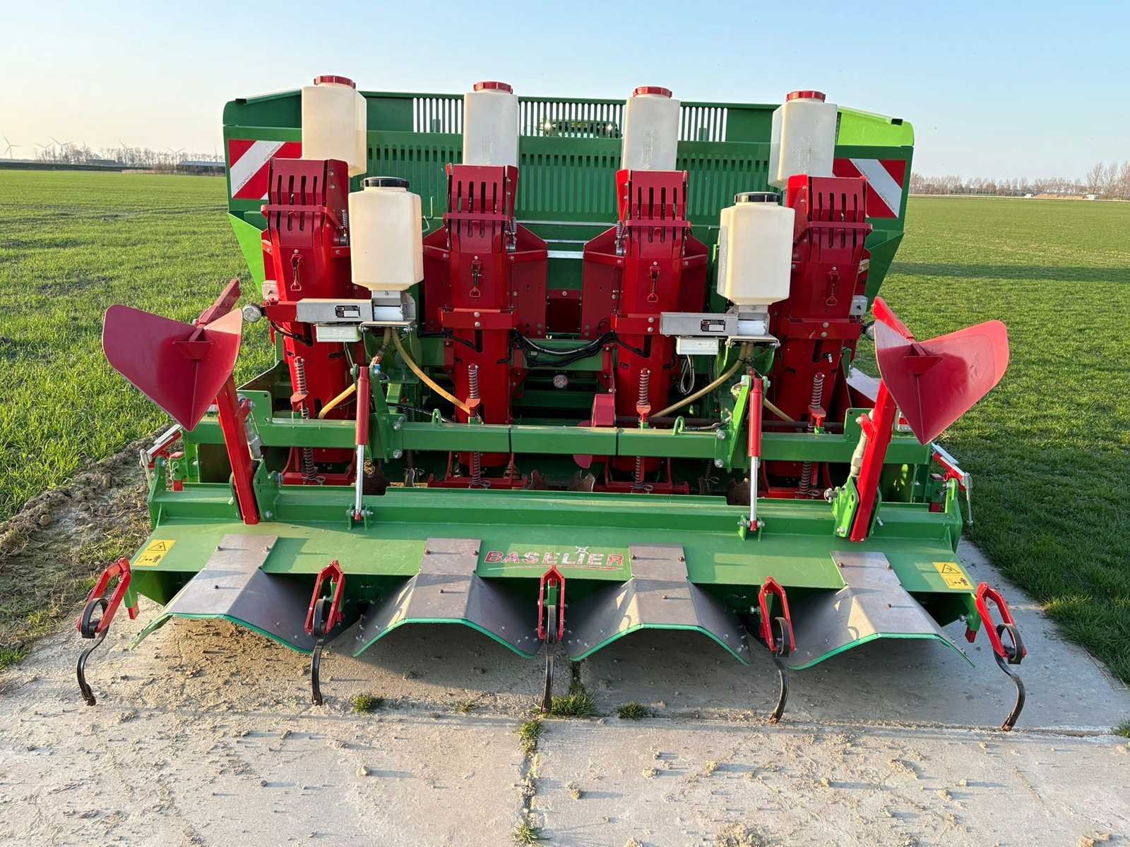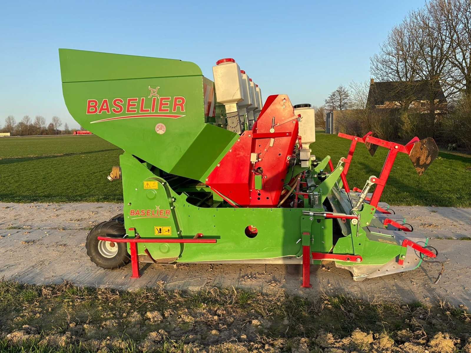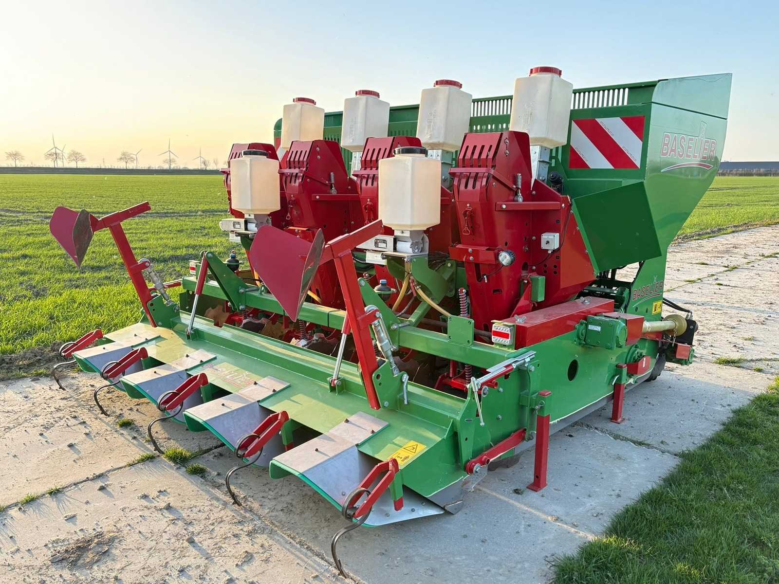 Frees-pootcombinatie, 4x75cm. Mechanische aandrijving. Elektronische trillers op de pootbanden. 120 widia freeshaken. Sirius pootelementen. Misser control. Hydraulische diepte control. Spuitpaden wissers. Granulaat strooier. Merk: Baselier Type: FA310W Bouwjaar: 2018 Serienummer: 14343 Werkbreedte: 3000mm Aantal rijen: 4 Rijenafstand: 75mm Eigen gewicht: 3100kg Totale afmeting L: 3000mm Totale afmeting Breedte: 3200mm Totale afmeting Hoogte: 2500mm
