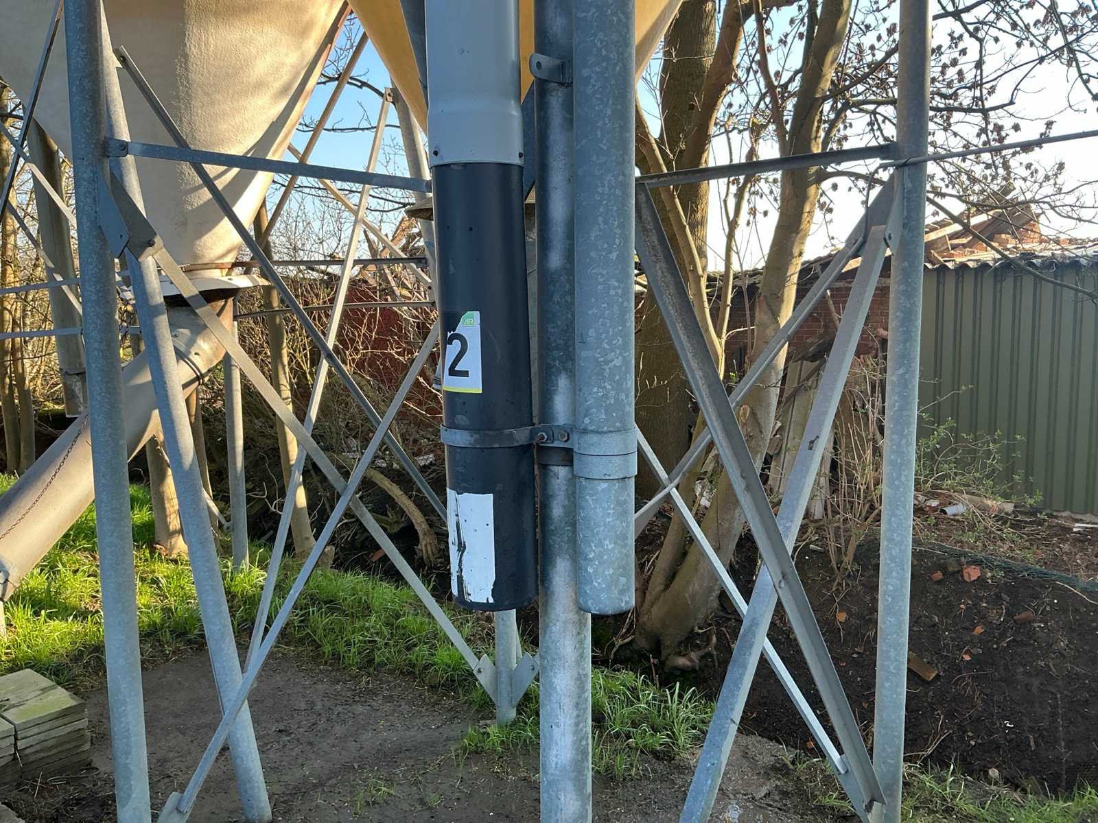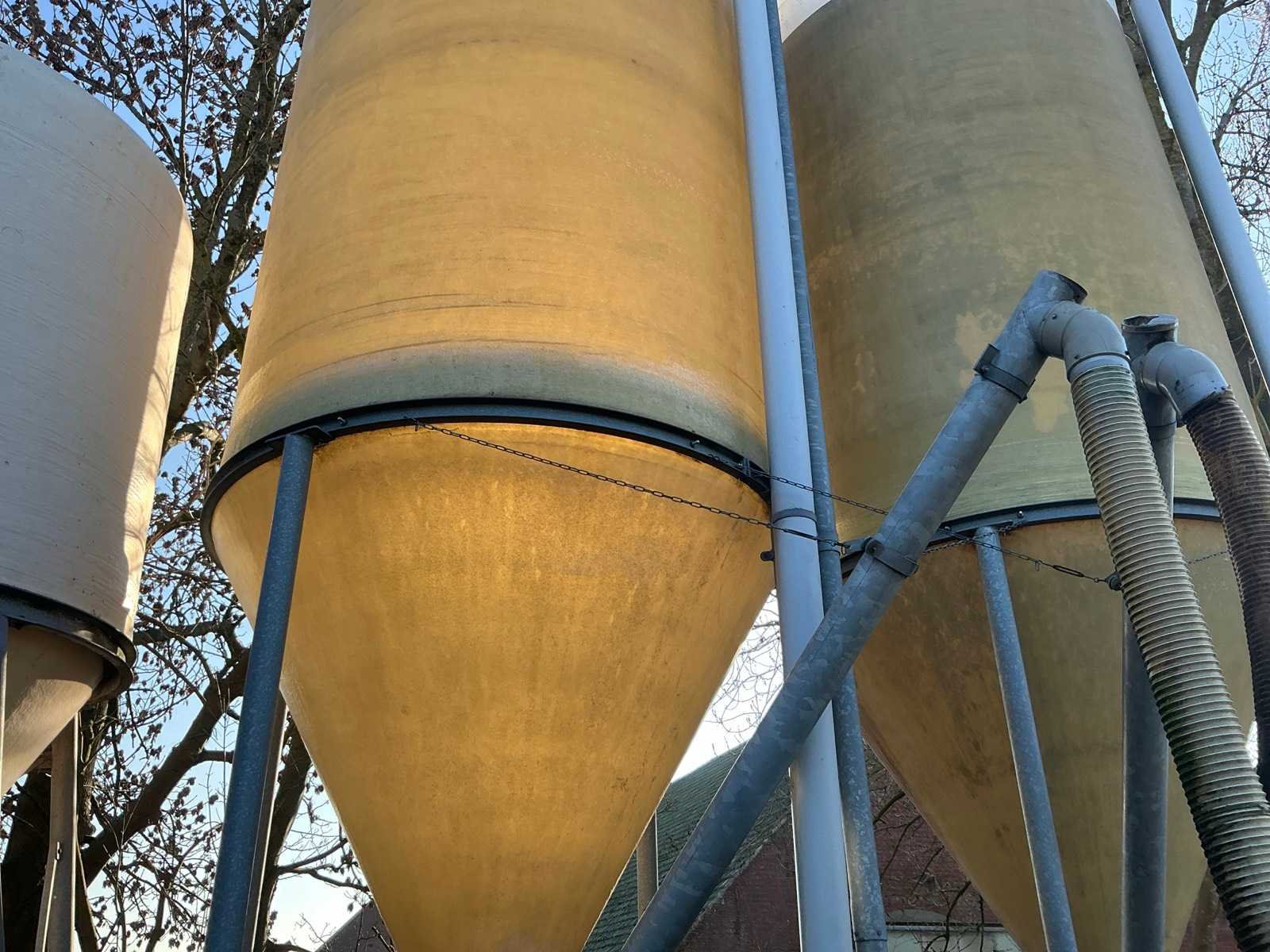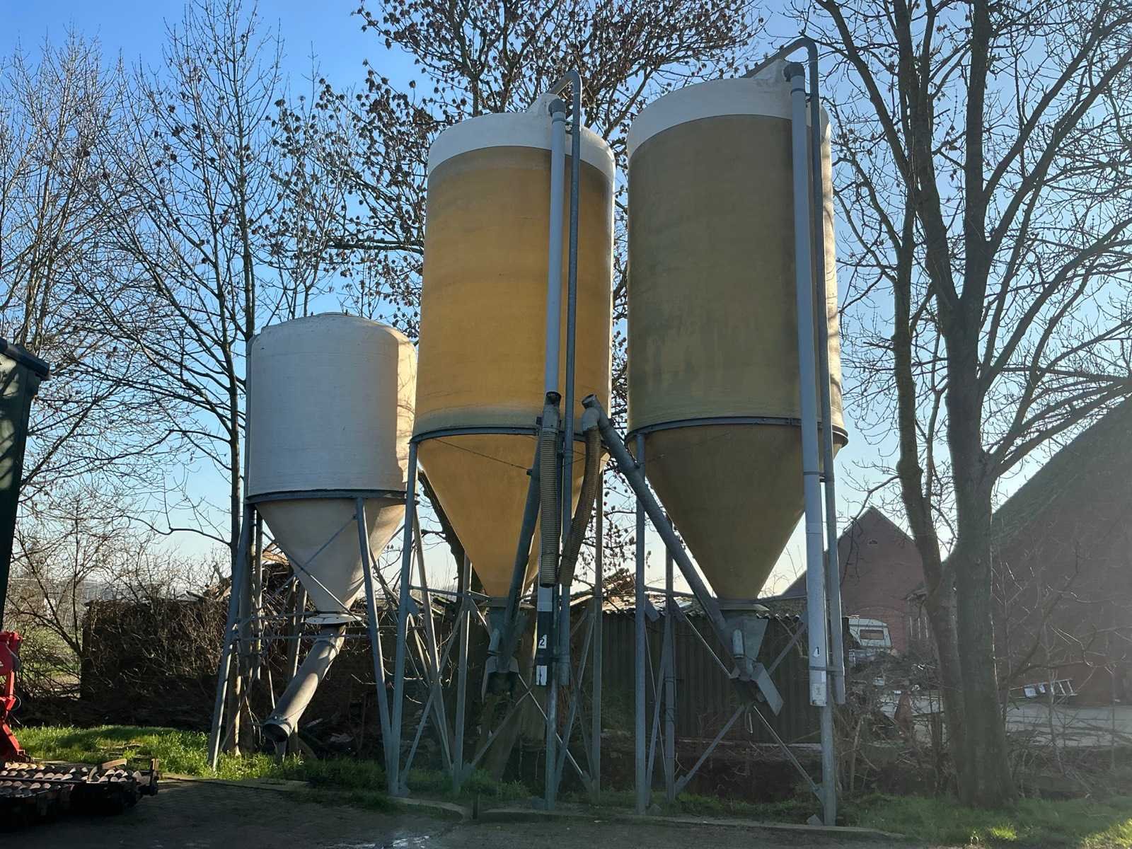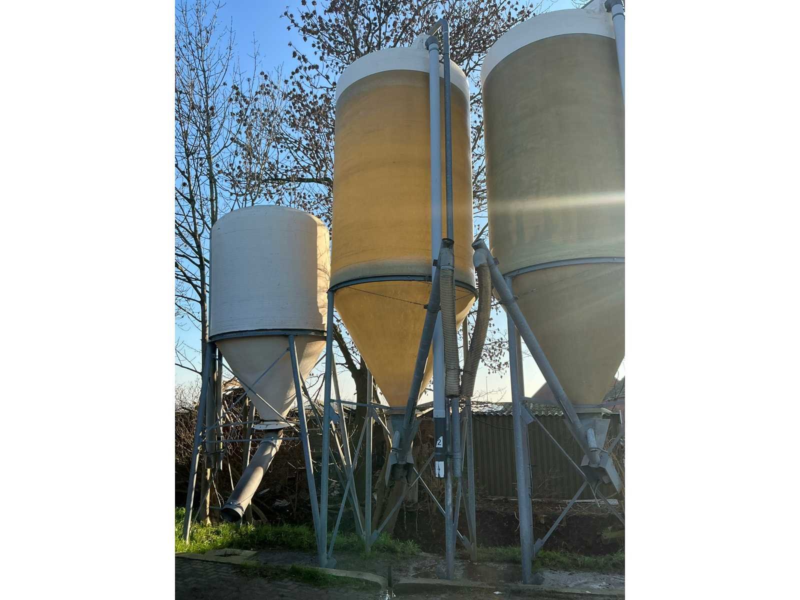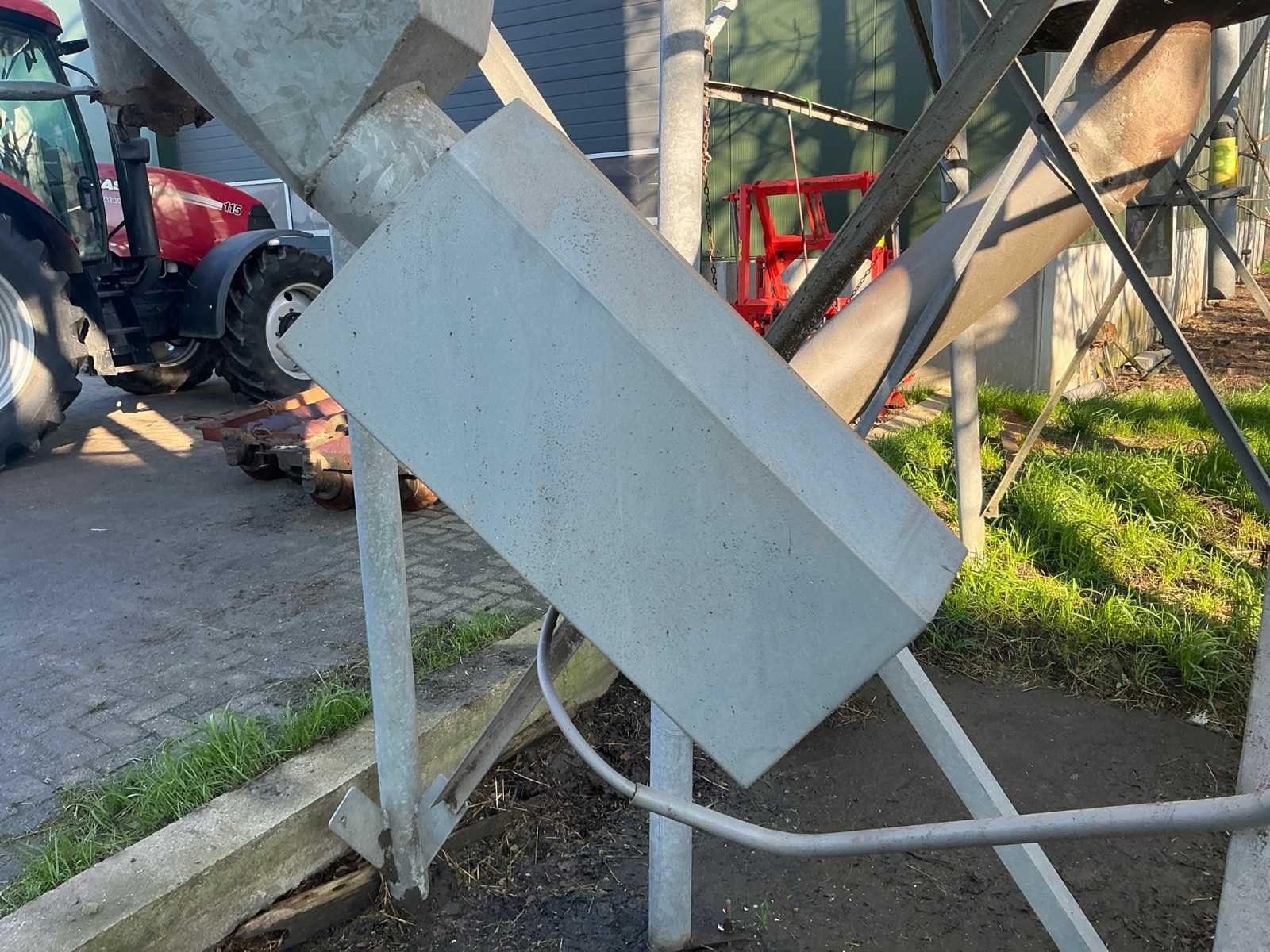 Volgens opgave 23 kuub en circa 15 ton inhoud. Op gegalvaniseerd onderstel. Voorzien van elektrisch aangedreven vijzel Ø140mm. Invoer silo Ø100mm Besturing vijzel niet inbegrepen. Totale afmeting L: 2000mm Totale afmeting Breedte: 2000mm Totale afmeting Hoogte: 7400mm