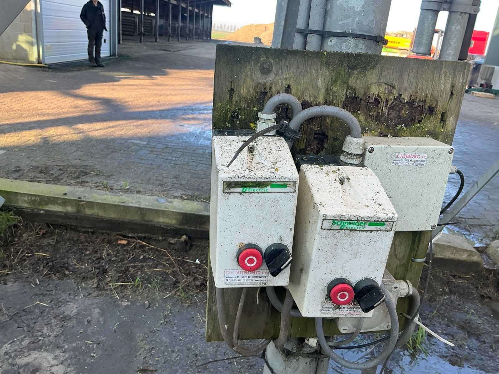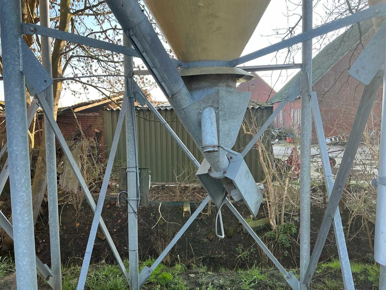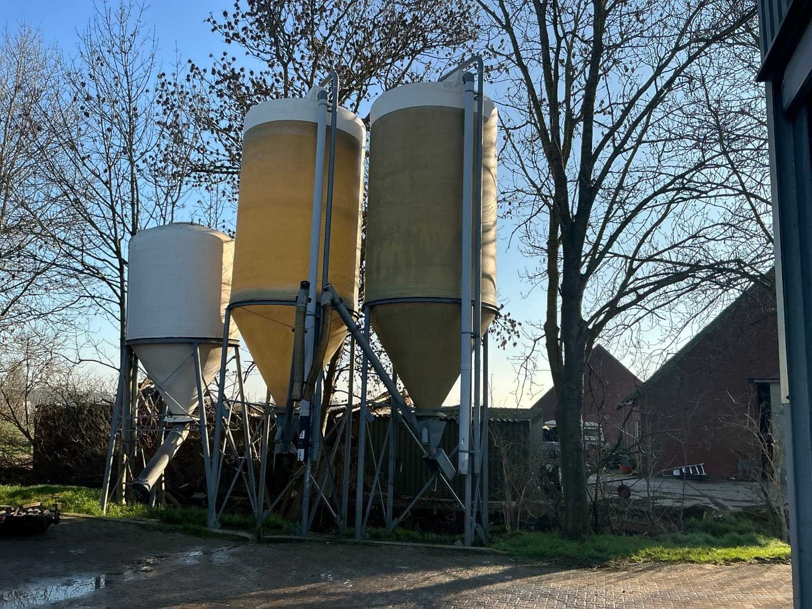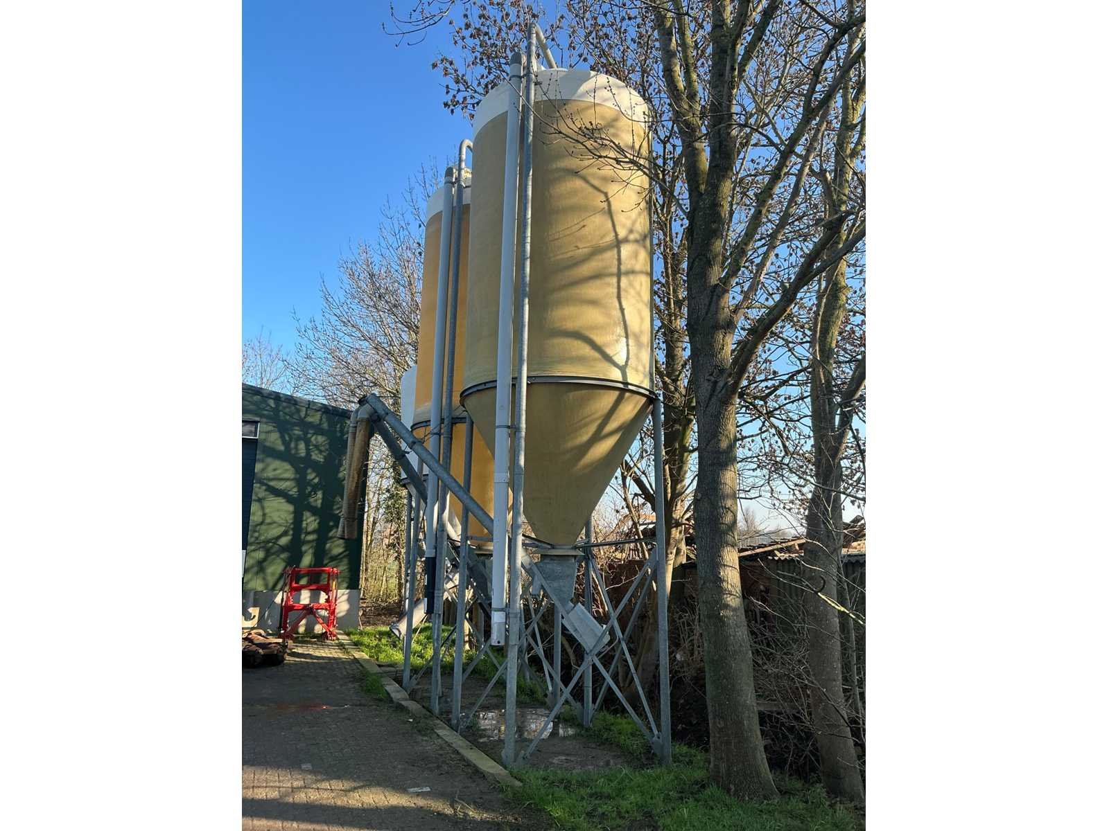 Volgens opgave 23 kuub en circa 15 ton inhoud. Op gegalvaniseerd onderstel. Voorzien van elektrisch bedienbare vijzel Ø 140mm. Invoer silo circa Ø 100mm. Inclusief afstandsbedienig Totale afmeting L: 2000mm Totale afmeting Breedte: 2000mm Totale afmeting Hoogte: 7400mm