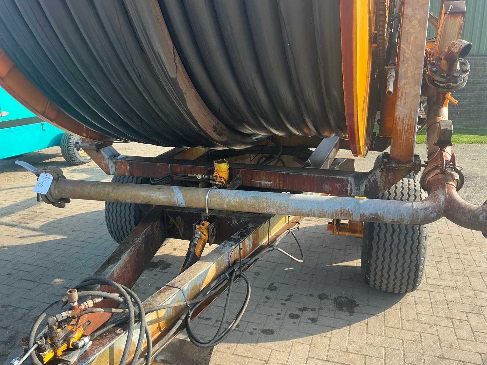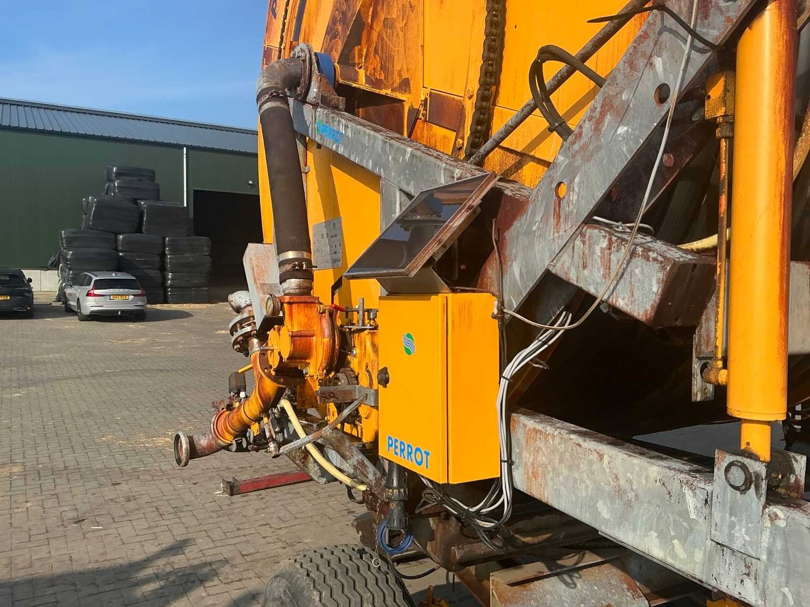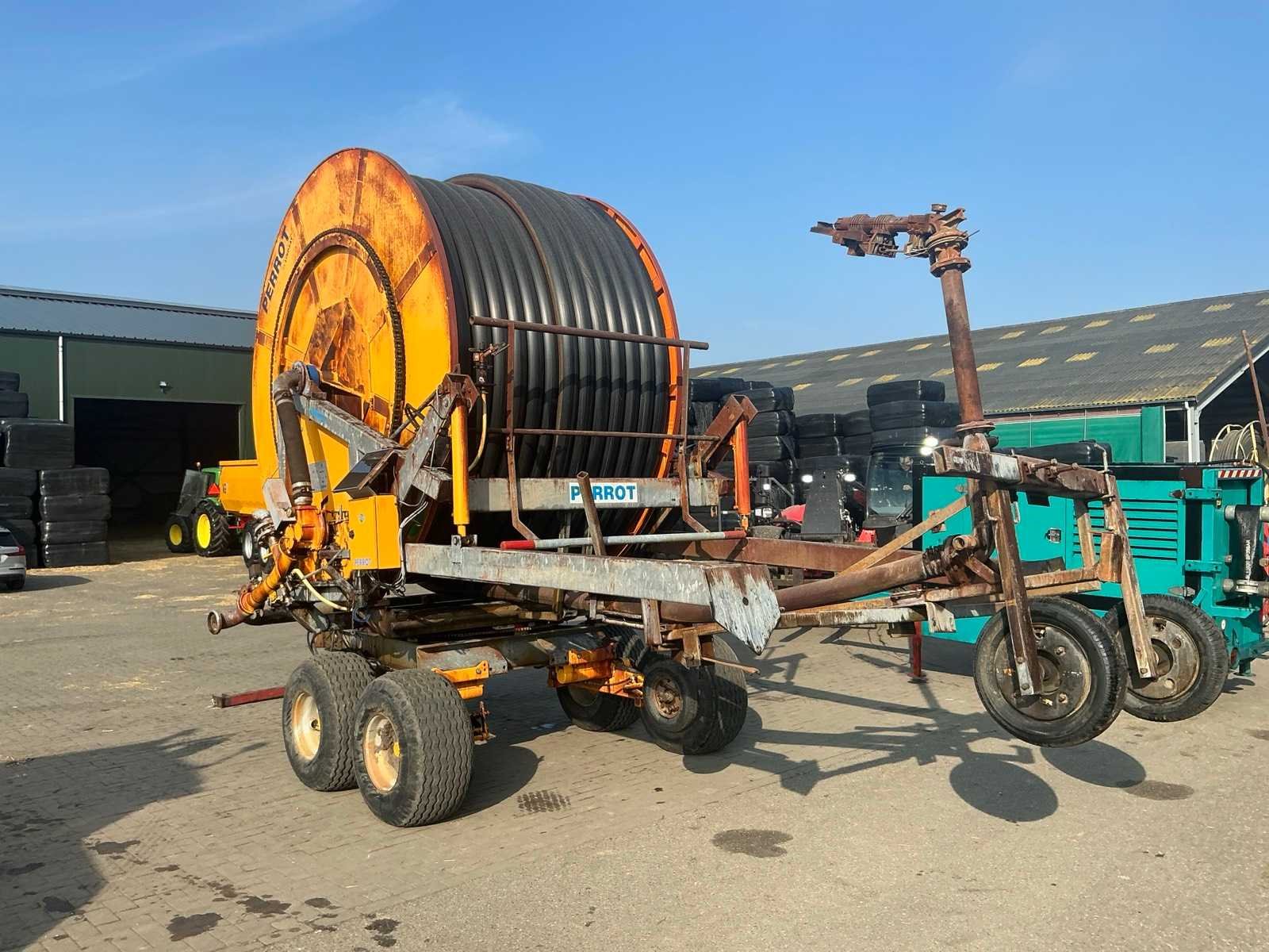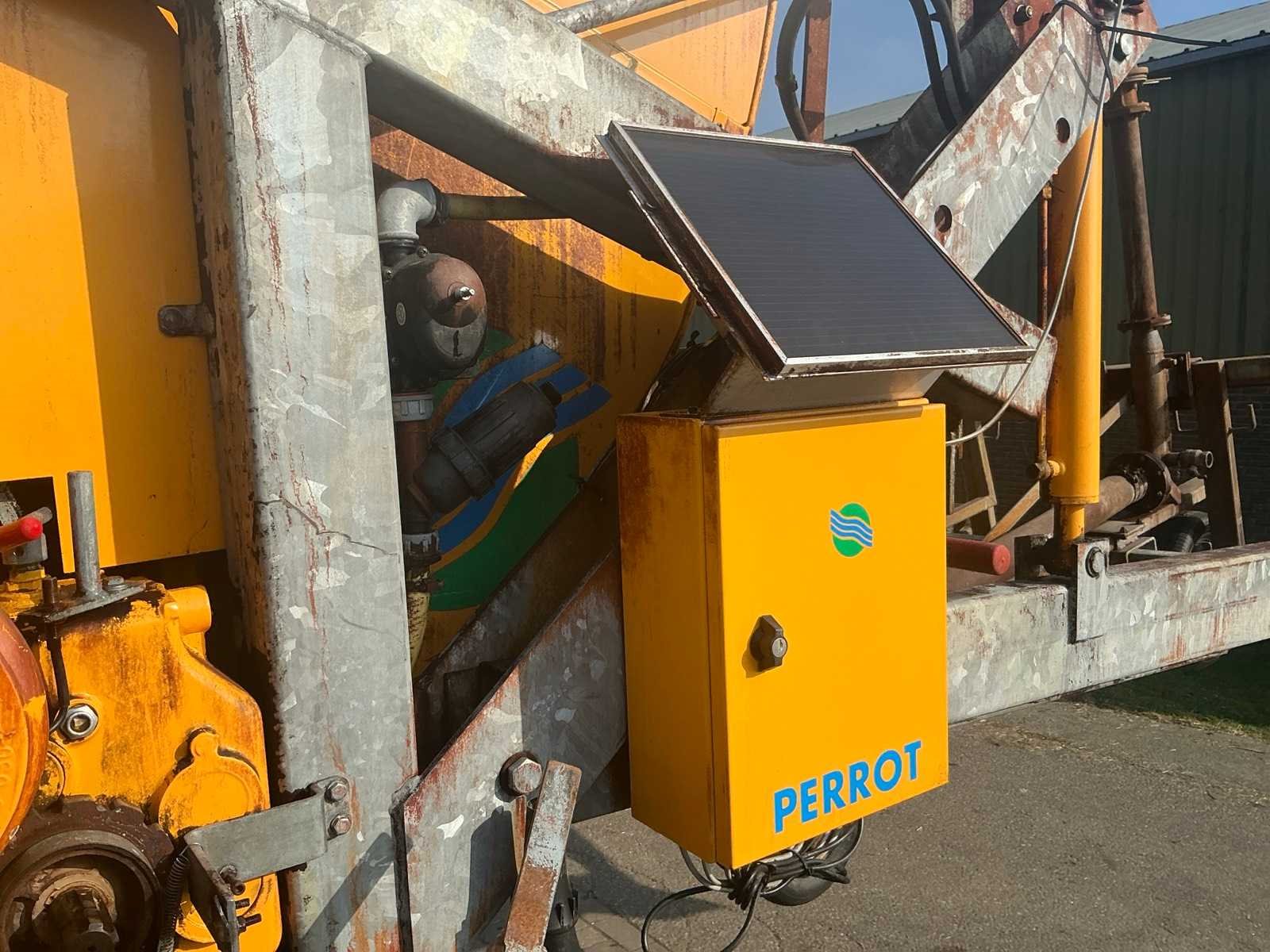 Voorzien van onder andere: tandemonderstel, bandenmaat 400/160-15.5, kopakkersproeier, hydraulische steunpoot, hydraulisch draaibaar. Verstelbare spoorbreedte kanon. Inclusief trekbok, inclusief GSM module. Merk: Perrot Type: TR55 120/520 Bouwjaar: 2011 Totale afmeting L: 6800mm Totale afmeting Breedte: 2700mm