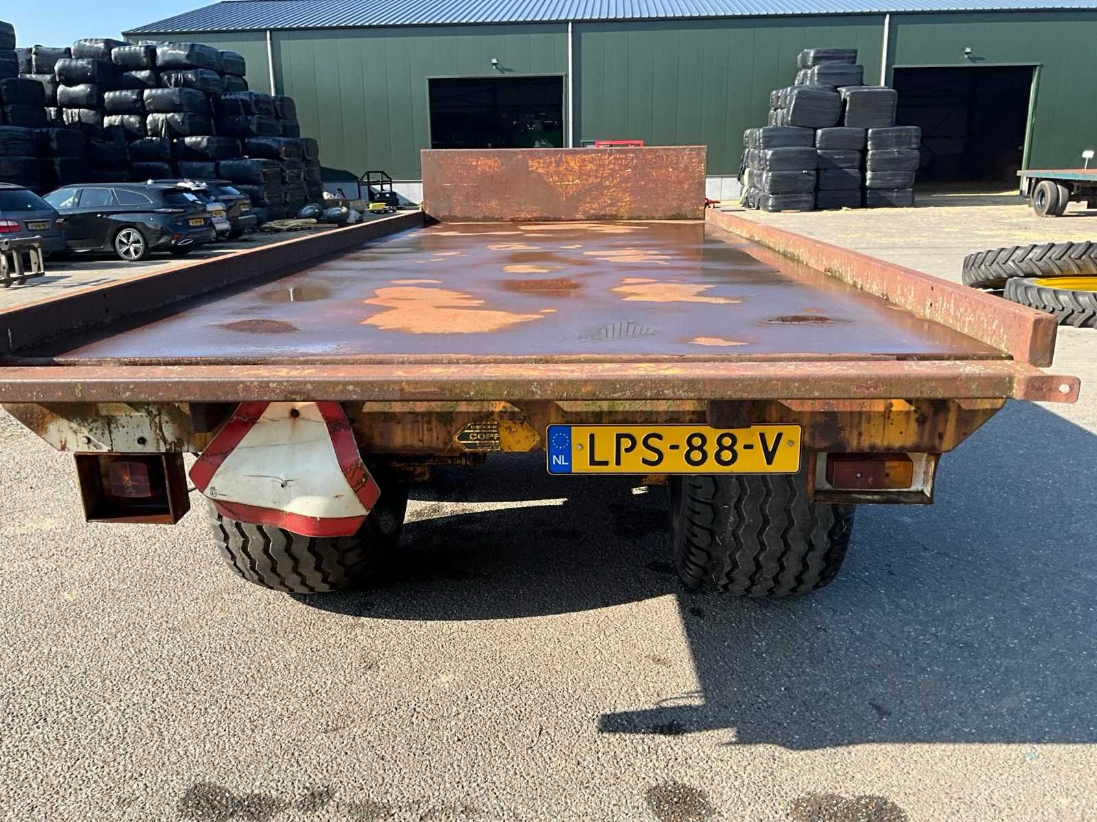Voorzien van stalen laadvloer, laadvloer lengte 5100 mm, Merk: Zelfbouw Bouwjaar: 1981 Serienummer: 2876 Kenteken: LPS-88-V Aantal assen: 2 Bandenmaat: 500/55-15.5 Totale afmeting L: 6600mm Totale afmeting Breedte: 2200mm