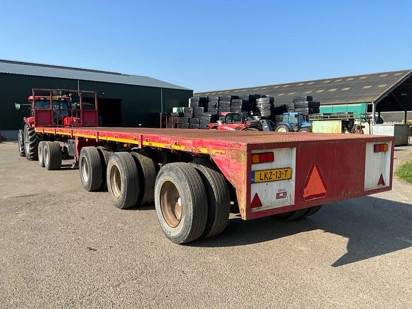 Voorzien van 2-assige Dolly; As 2 en 3 zijn stuuras (gedwongen; Ledverlichting Merk: Agpro Type: 3A Bouwjaar: 2012 Chassisnummer VIN: 2012094 Kenteken: LKZ-13-T Datum eerste toelating (NL): 2021-12-15 Datum eerste toelating: 2012-06-30 Aantal assen: 3 Laadvermogen: 0kg Totale afmeting L: 12600mm Totale afmeting Breedte: 2450mm Totale afmeting Hoogte: 2960mm Zelf rijdend exporteren: Mogelijk