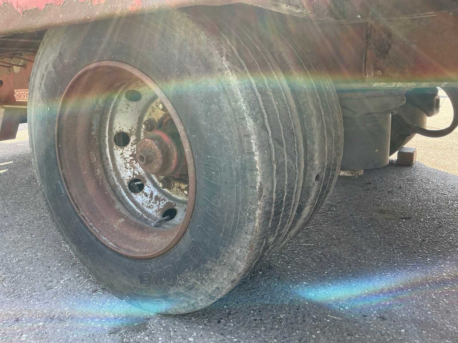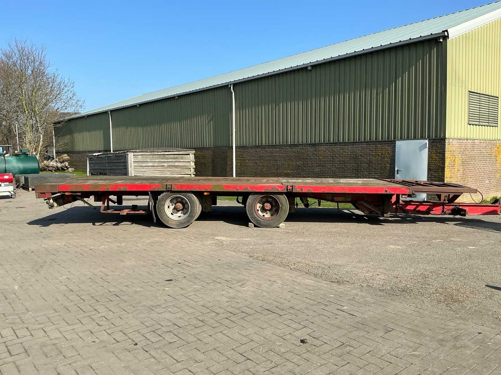Laadvloer 10mx2,5m Merk: GROENEWEGEN Type aanhangwagencarrosserie: Open Aanhangwagen Aantal assen: 2 Totale afmeting L: 9500mm Totale afmeting Breedte: 2540mm Totale afmeting Hoogte: 840mm Zelf rijdend exporteren: Niet mogelijk No self drive export!: true