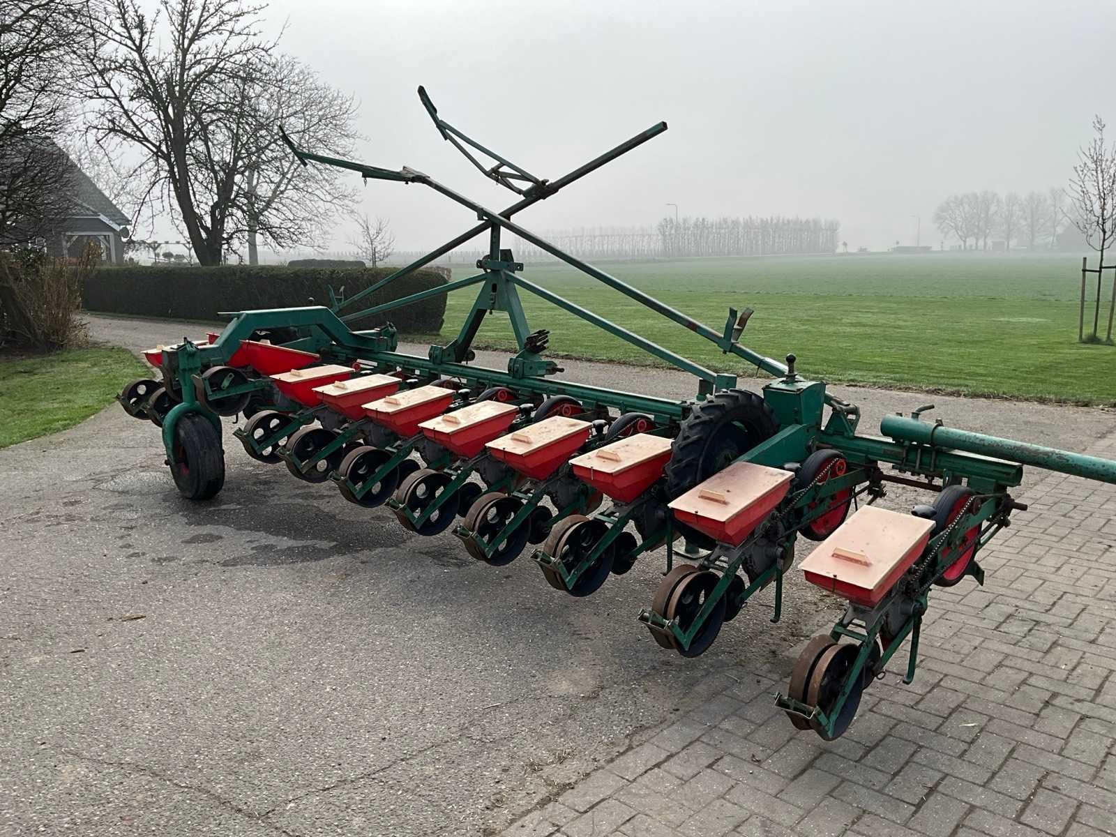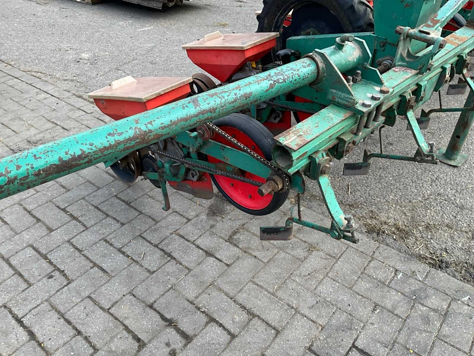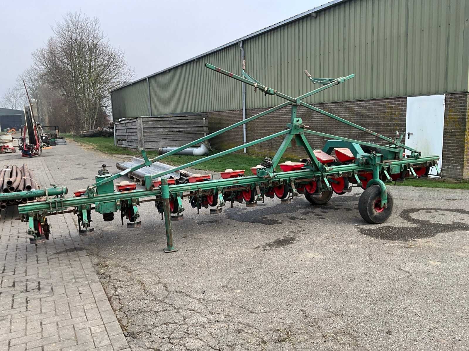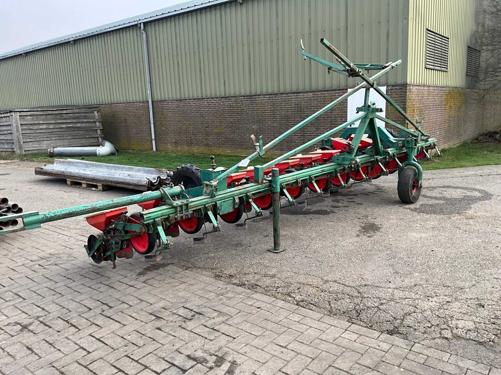 Gedragen in werkstand, getrokken in transportstand, voorzien van wiel aandrijving Merk: Fahse & Co Type: Monozentra “S” Werkbreedte: 6000mm Aantal rijen: 12 Rijenafstand: 500mm