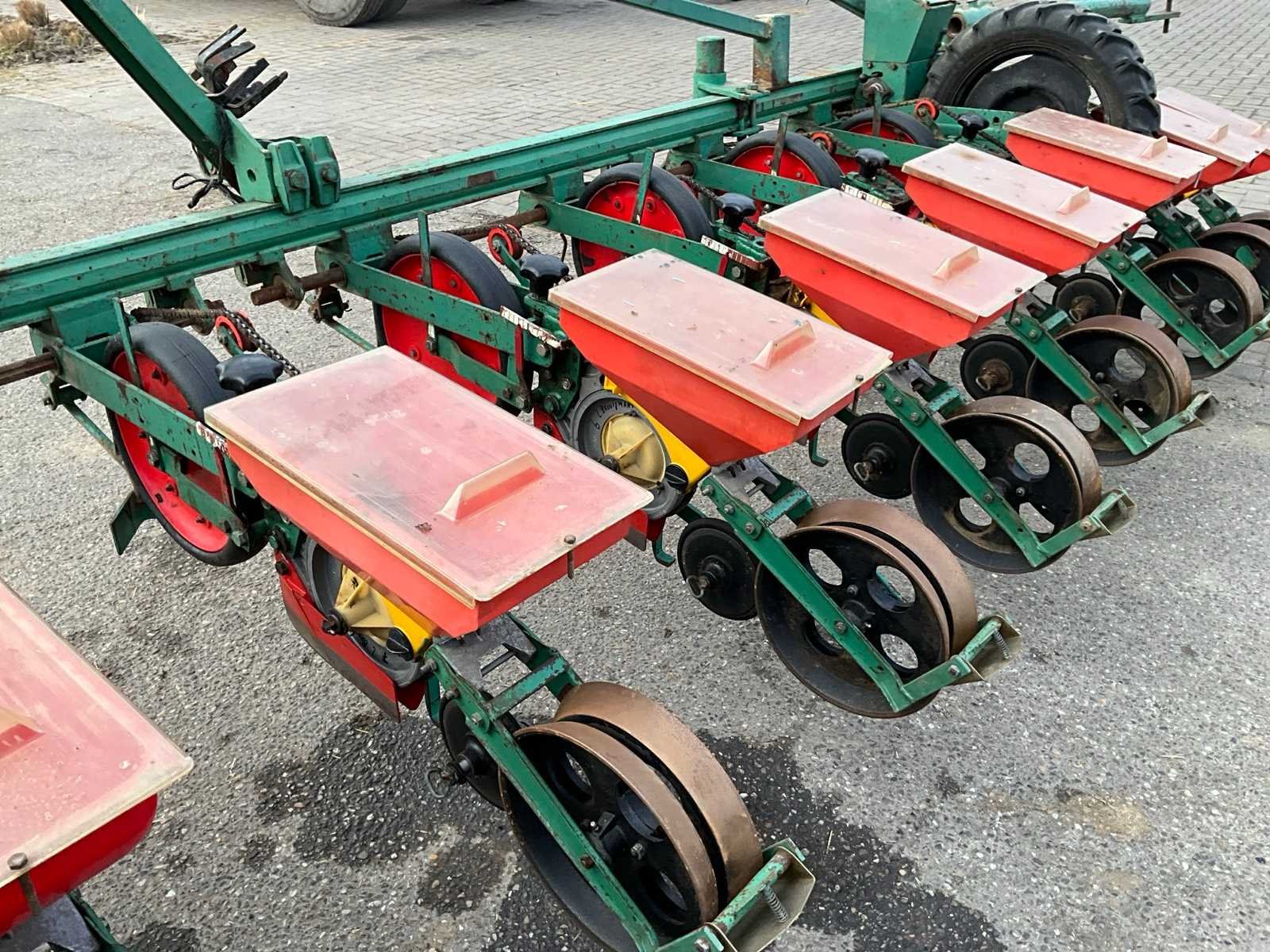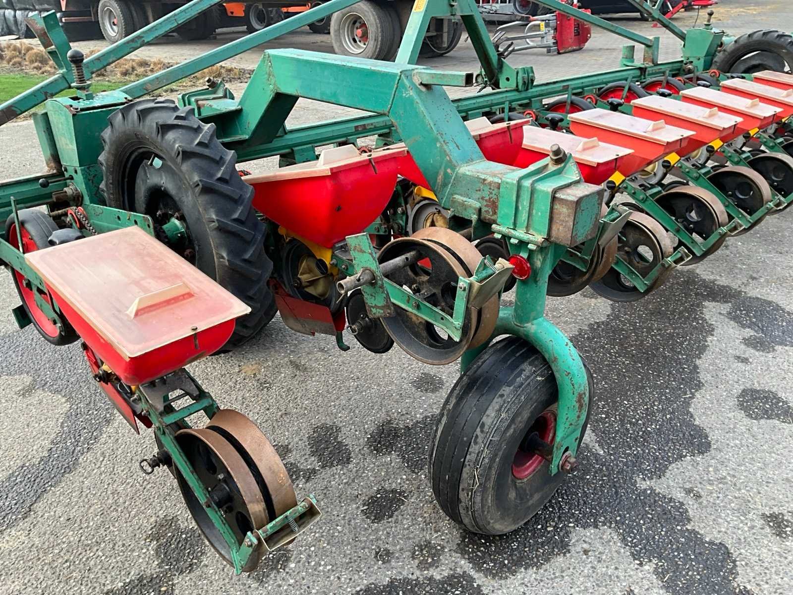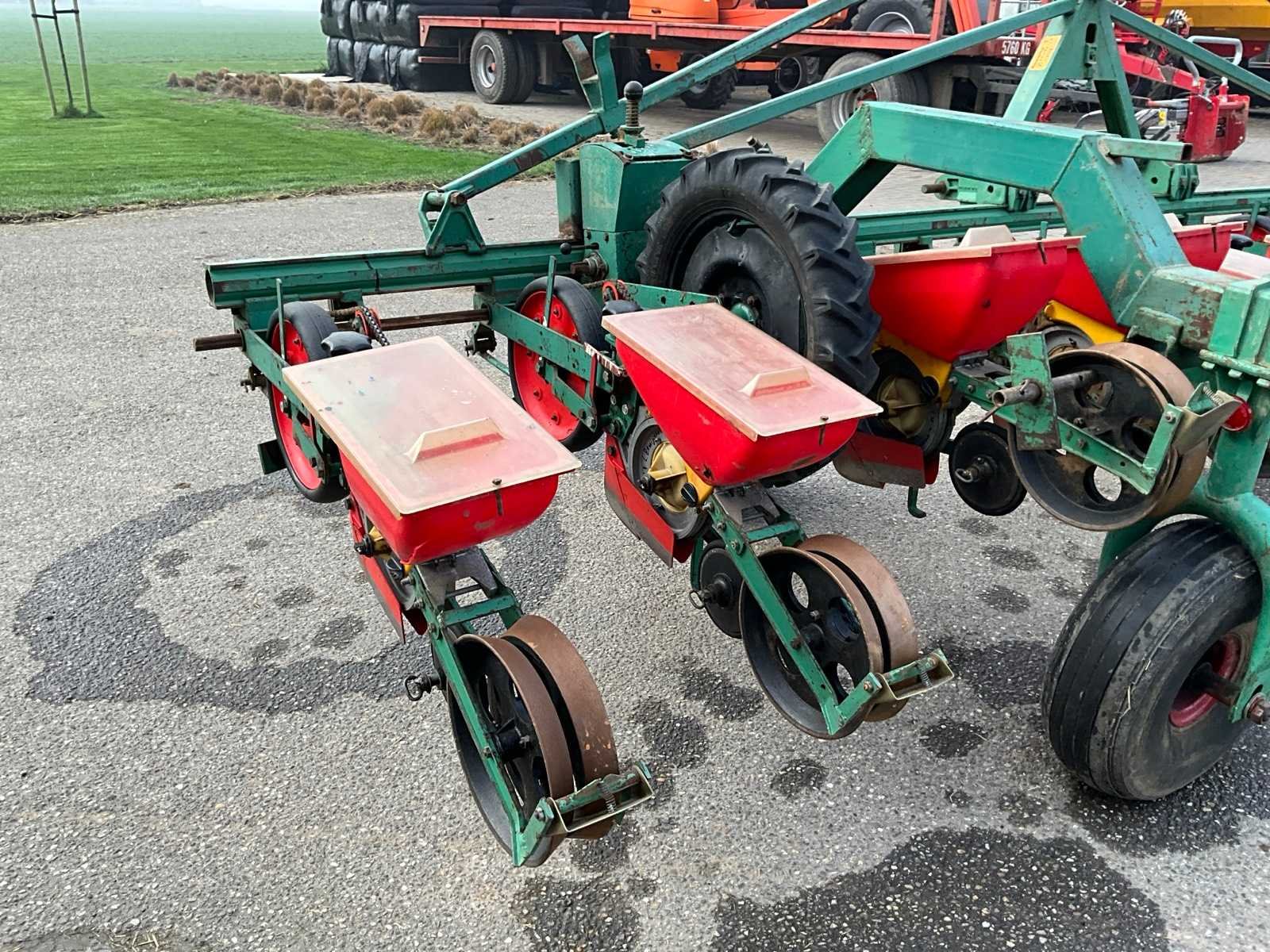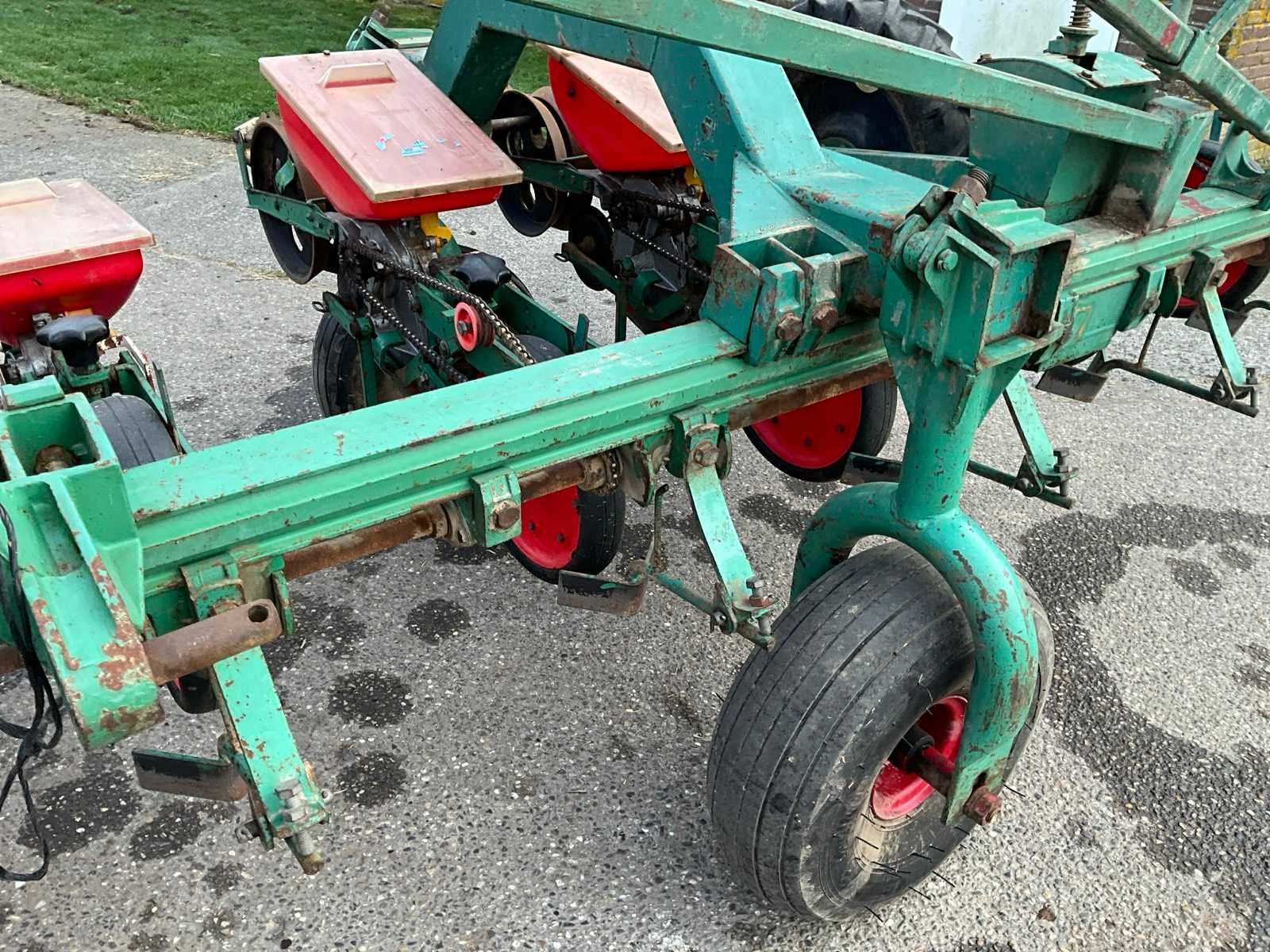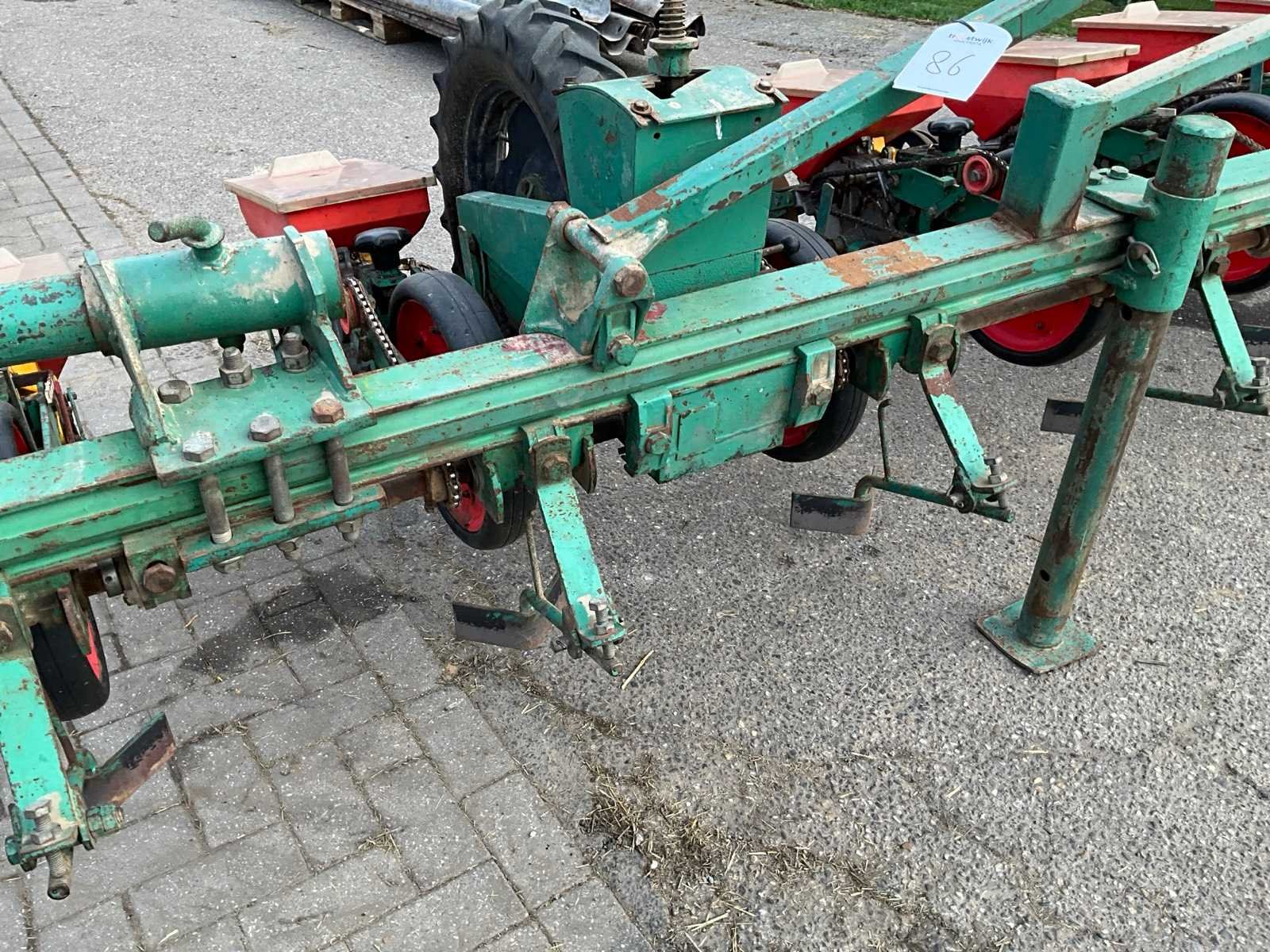 Gedragen in werkstand, getrokken in transportstand, voorzien van wiel aandrijving Merk: Fahse & Co Type: Monozentra “S” Werkbreedte: 6000mm Aantal rijen: 12 Rijenafstand: 500mm