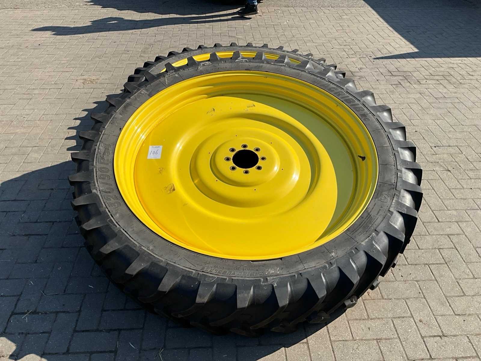 Voorzien van 8x205 velg, naaf ø 150 mm Afkomstig van John Deere 6105R, Spoor 1.5m. Merk: Michelin Type: Agribib rc Bandenmaat: 320/90 Maat (getal): 54''