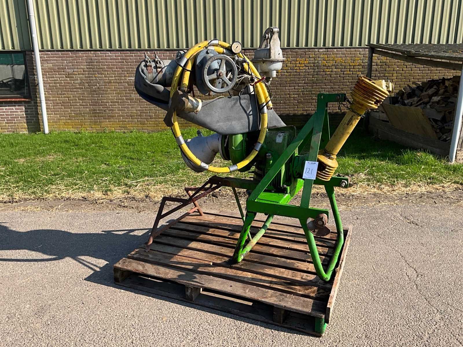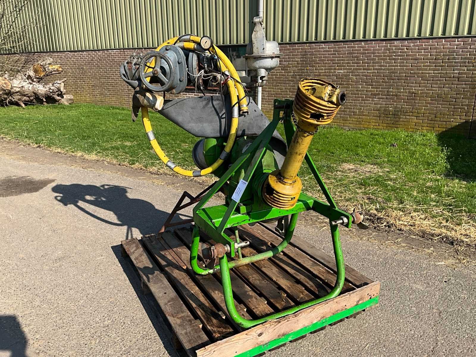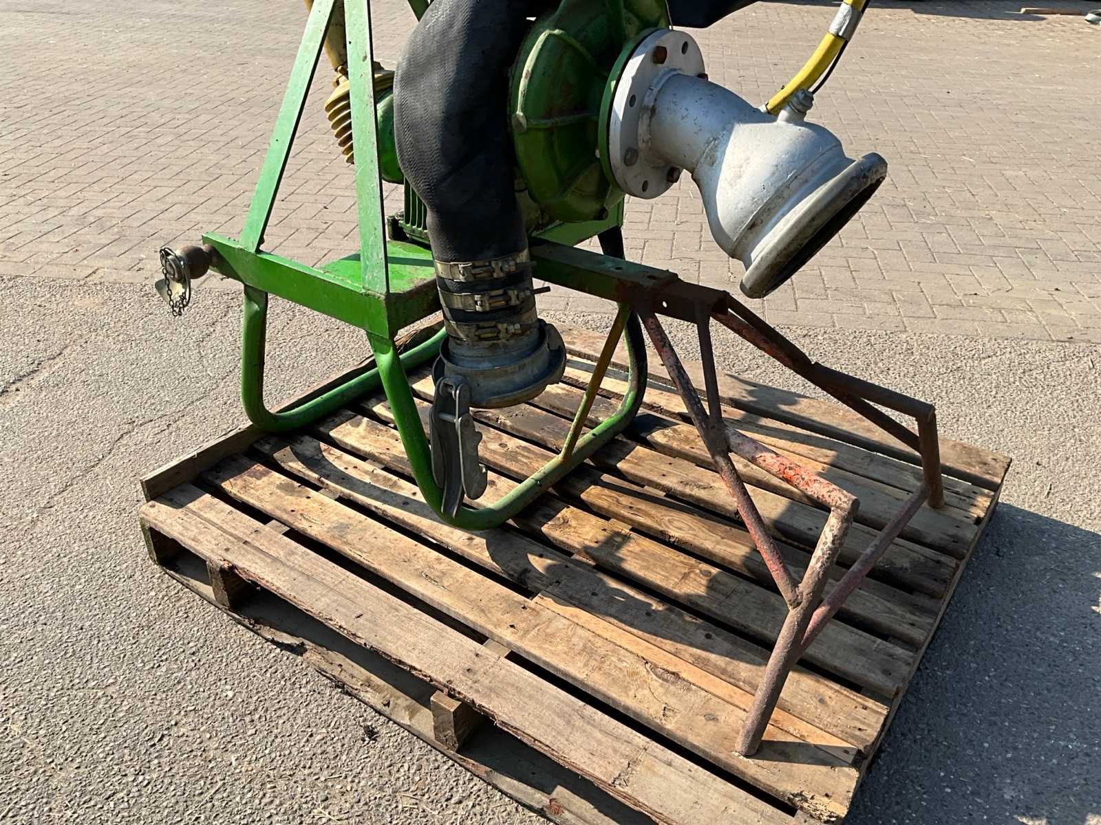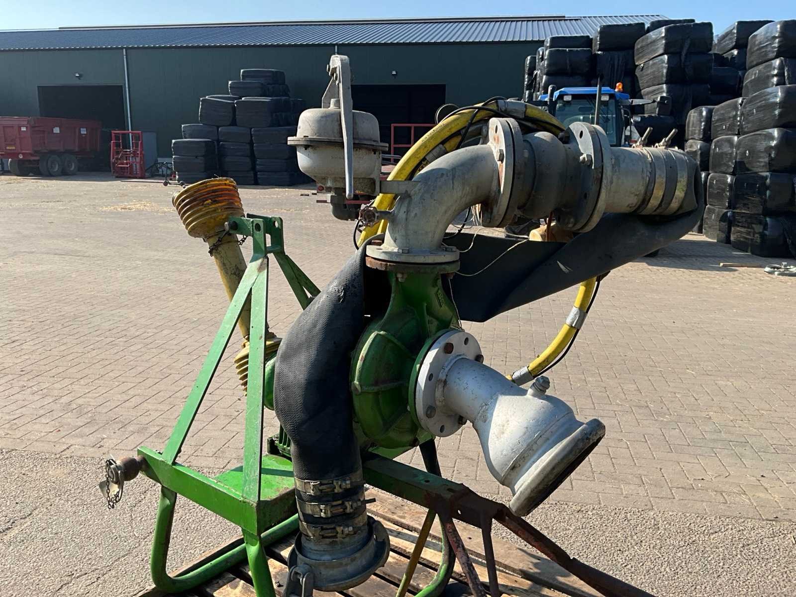 Aftakas aandrijving, driepunt aansluiting, hand aanzuigpomp, Groot volumepomp. Gebruikt voor in boomgaard. Merk: Rovatti Type: T4 125L Totale afmeting L: 1300mm Totale afmeting Breedte: 1000mm Totale afmeting Hoogte: 1500mm