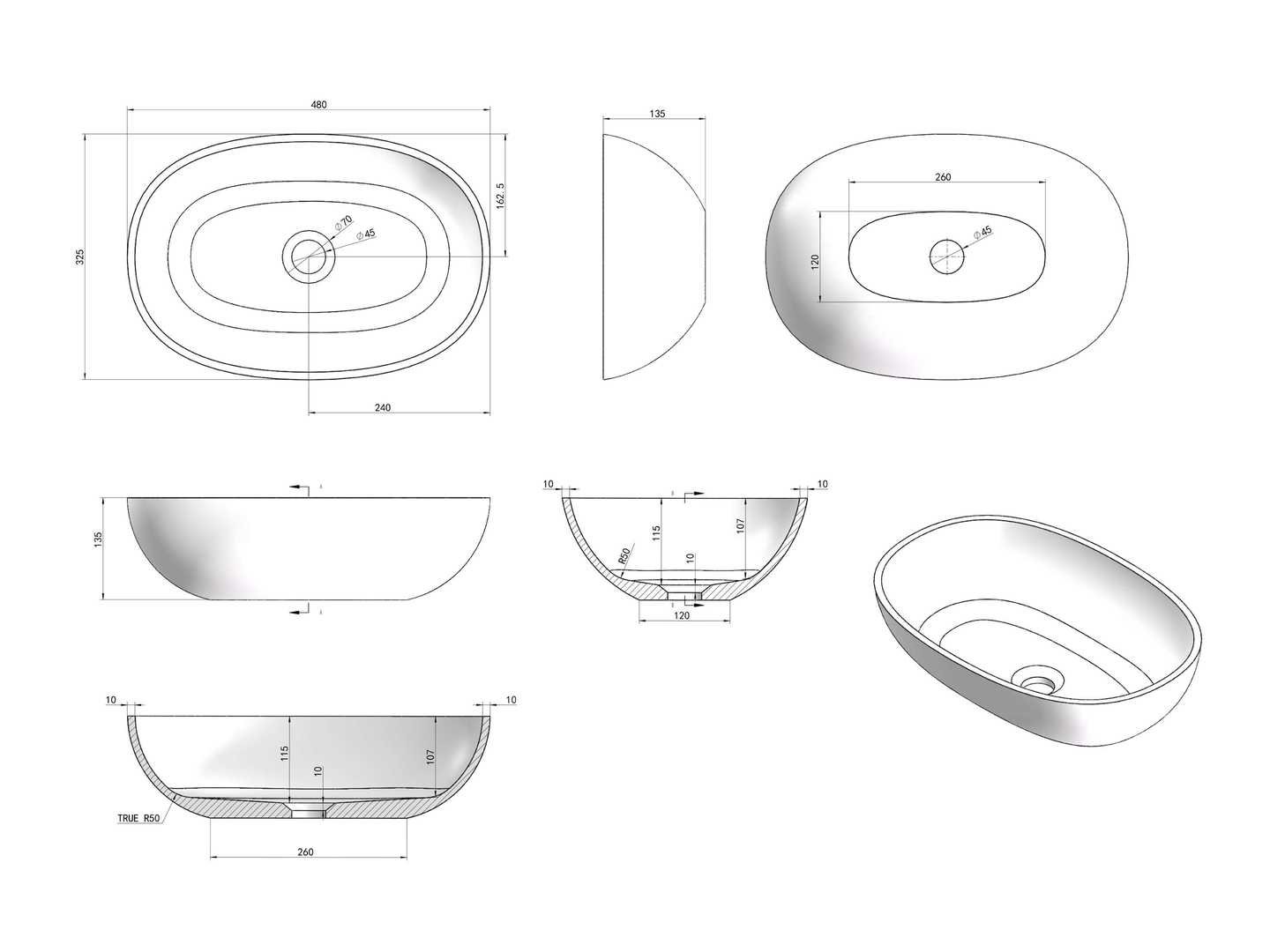 Ongebruikt in doos Merk: Luca sanitair Model: Ovaal Product type: LUVA1305A Kleur: Antraciet mat Gewicht: 4kg Breedte: 48cm Materiaal: Solid Surface