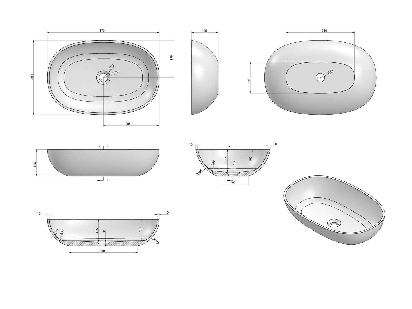 Ongebruikt in doos Merk: Luca sanitair Model: Ovaal Product type: LUVA1306A Kleur: Antraciet mat Gewicht: 4kg Lengte: 38cm Breedte: 57cm Materiaal: Solid Surface