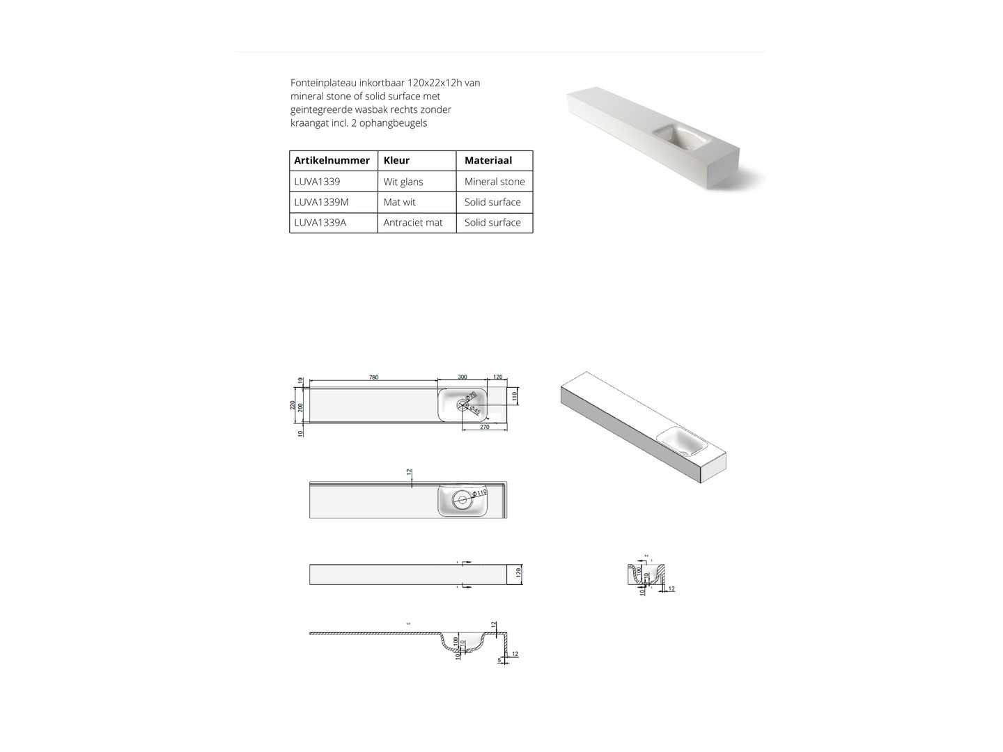 Luca sanitair - luva1339a - fonteinplateau rechts 120 x 22 cm