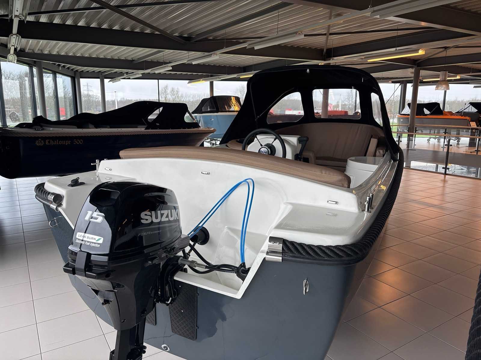 Kleur antraciet grijs, Ankerluik afsluitbaar op voordek, Buiskap met afdekzeil , kleur: zwart, Kussenset & zonnedek in kleur ottonno , Grote opbergruimten onder zitbanken, Navigatie verlichting & Toplicht, Schakelpaneel met usb en 12 v, Accu, accubak, ingebouwde hoofdschakelaar, RVS boegoog, RVS kikkers (6 x), RVS bekerhouders, Stuurconsole, RVS stuurwiel, Gashendel, 12l tank, Suzuki DF15 Merk: Chaloupe 490 2025 Type: 490 Rompmateriaal: polyester Brandstof: benzine Bouwjaar: 2025 Lengte over alles: 4,90m Breedte formaat: 1,90m Type motor: outboard Vermogen: 11kW Inhoud brandstoftank: 12l Navigatieverlichting: true
