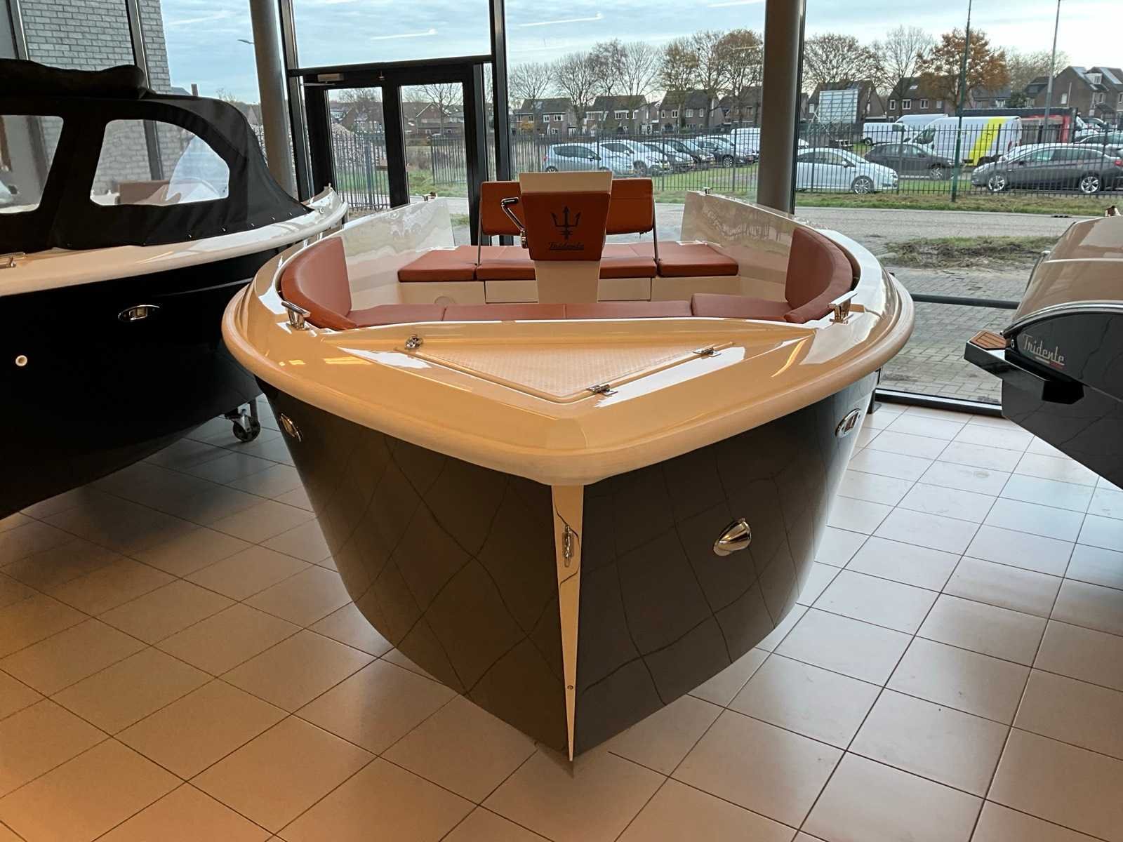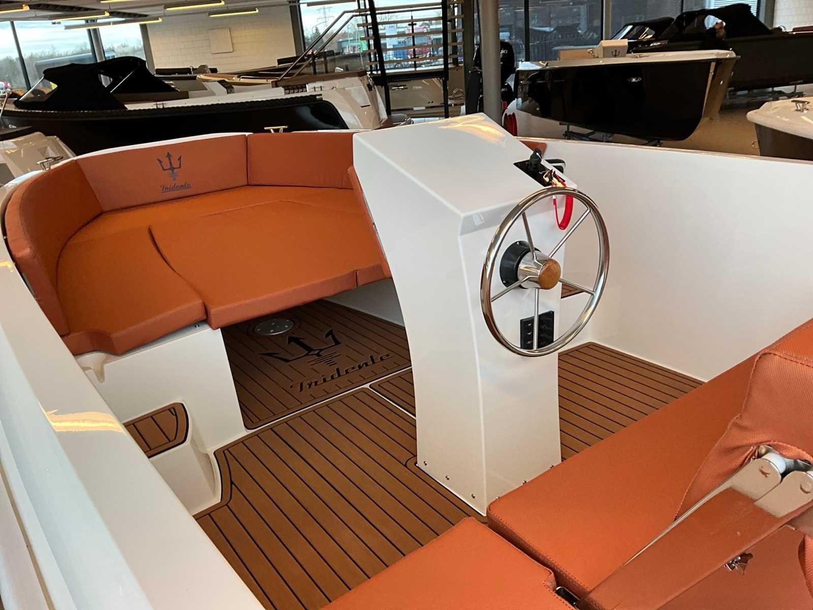 Diverse ruime opbergvakken, Luxe kussenset in Diamante kleur cognac, Luxe marine deck vloer volledig uitgerust, Exclusivepack zonnedek met tafel, Zonnedek voor en achterzijde, Zwemplateau’s, RVS Zwemtrap, Navigatie verlichting, Toplicht, USB 12V, Rubberenstootrand, Wc voorbereiding, Stuurconsole, Stuursysteem met stuurwiel, Ankerluik, 3 x RVS kikkers per zijde en traileroog Merk: Tridente Type: 19S Rompmateriaal: Polyester Brandstof: Benzine Bouwjaar: 2023 Lengte over alles: 5.95m Breedte formaat: 2.35m Type motor: Suzuki DF15