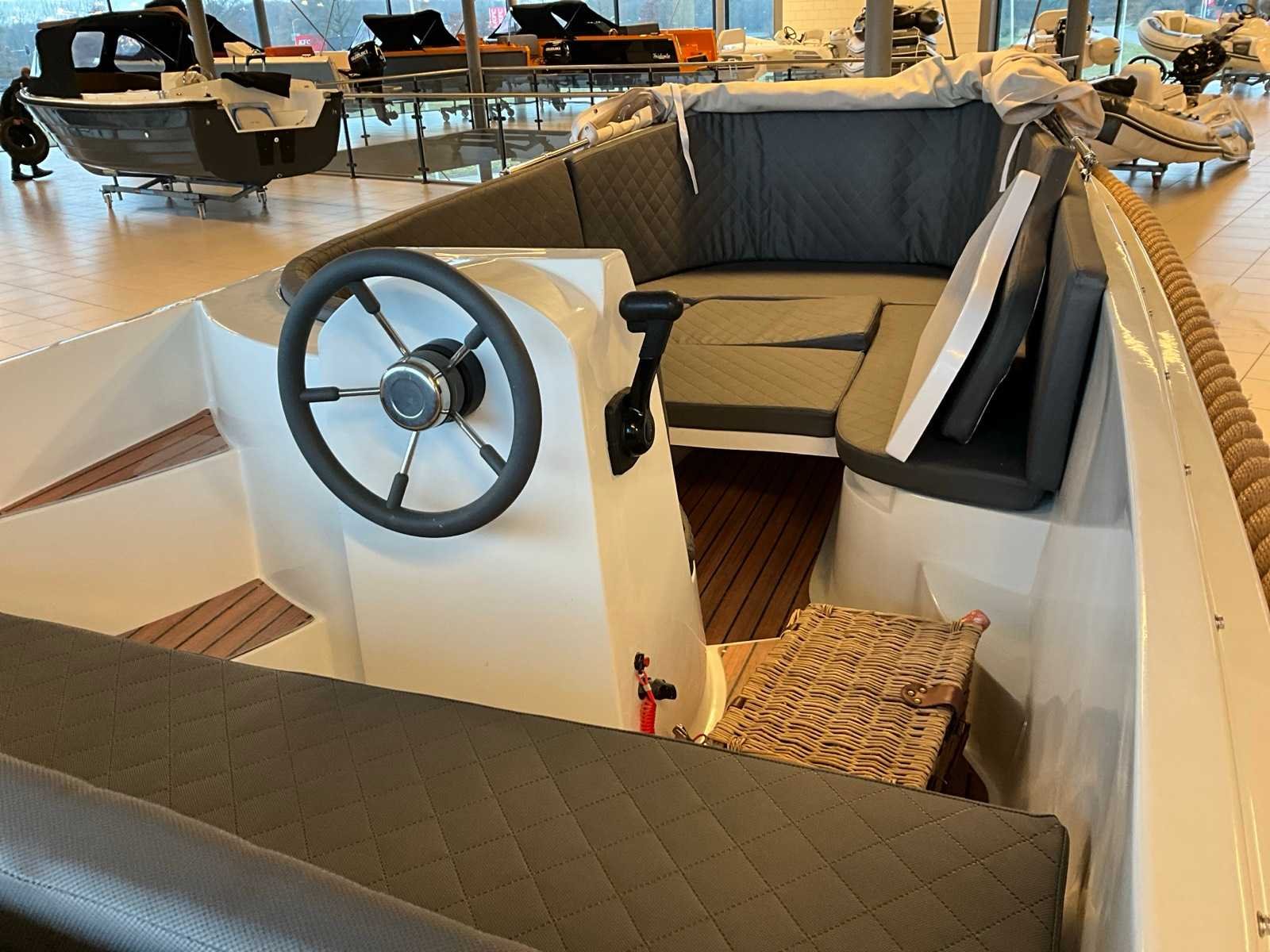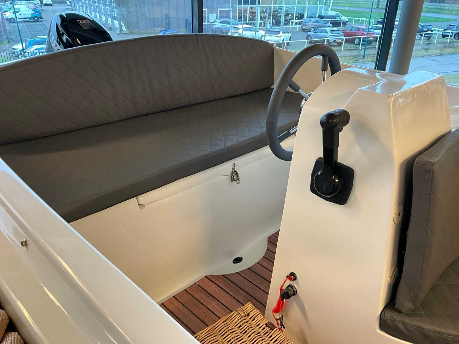 Kleur Zwart, hpl vloer Polyester dek kleur wit, Ankerluik afsluitbaar op voordek, Buiskap met afdekzeil kleur: zand, Kussenset & zonnedek in kleur antraciet , Grote opbergruimten onder zitbanken, Zelflozing naar bilge, automatische bilgepomp, RVS package, Navigatie verlichting & Toplicht, 12 volt aansluiting, Accu, accubak, ingebouwde hoofdschakelaar, RVS boegoog, RVS kikkers (6 x), RVS bekerhouders, Stuurconsole, RVS stuurwiel, Gashende, 12l tank Door inruil verkregen, nieuwe motor ! Merk: Chaloupe Type: 490 tender Rompmateriaal: Polyester Brandstof: Benzine Bouwjaar: 2022 Lengte over alles: 4.9m Breedte formaat: 2m Type motor: Suzuki DF9,9 Eigen gewicht: 570kg