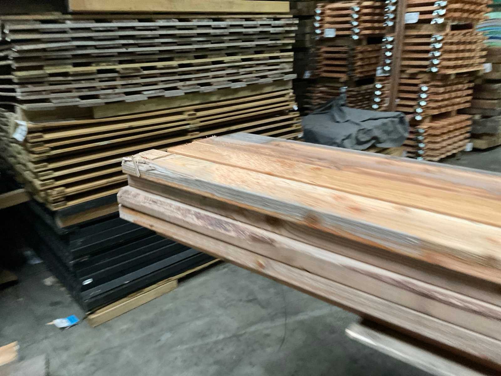 Zie foto's voor details. Merk: Woodvision Houtsoort: Douglas Materiaal: Douglas geschaafd Lengte: 300cm Kopmaat: 45x120 Gewicht: 150kg