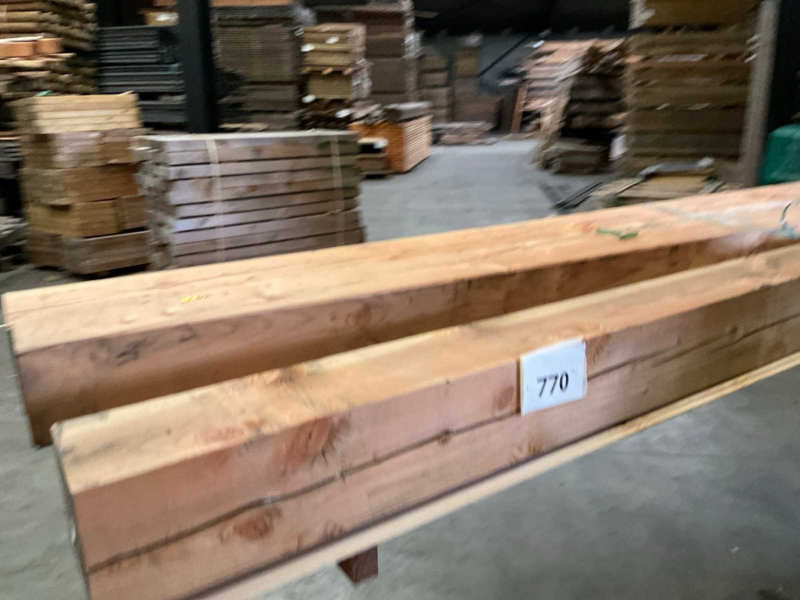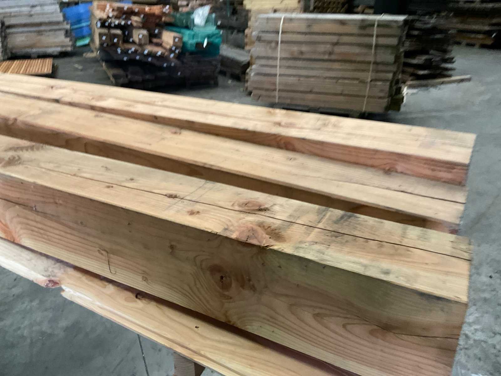 Zie de foto's voor meer details. Houtsoort: Douglas Materiaal: Geschaafd Kopmaat: 200x200mm Gewicht: 250kg Totale afmeting Breedte: 4000mm