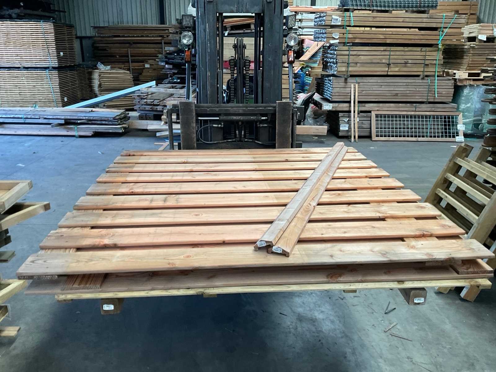 Douglas tuinscherm geschaafd 17-planks - 180x180 cm. 16mm dikte planken. geleverd met Afwerkregel. Gewicht: 125kg Lengte: 180cm Breedte: 180cm Hoogte: 1,6cm Materiaal: Douglas