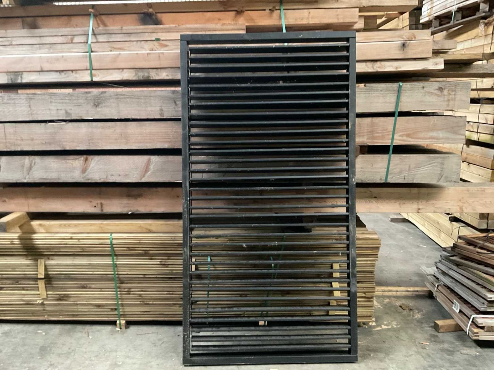 Merk: Hillhout Model: Verstelbare schutter lamelle Gewicht: 50kg Breedte: 120cm Hoogte: 225cm Materiaal: Douglas zwart gespoten