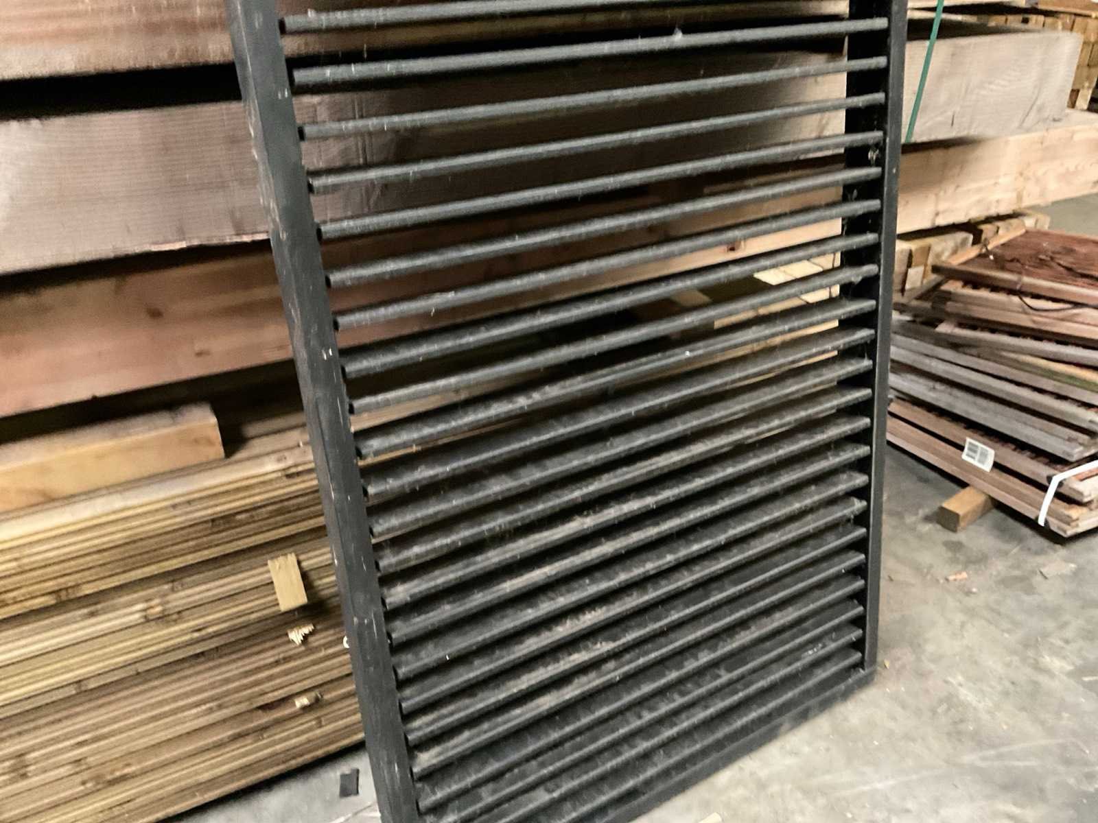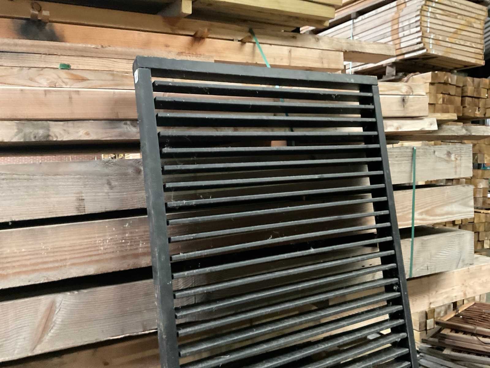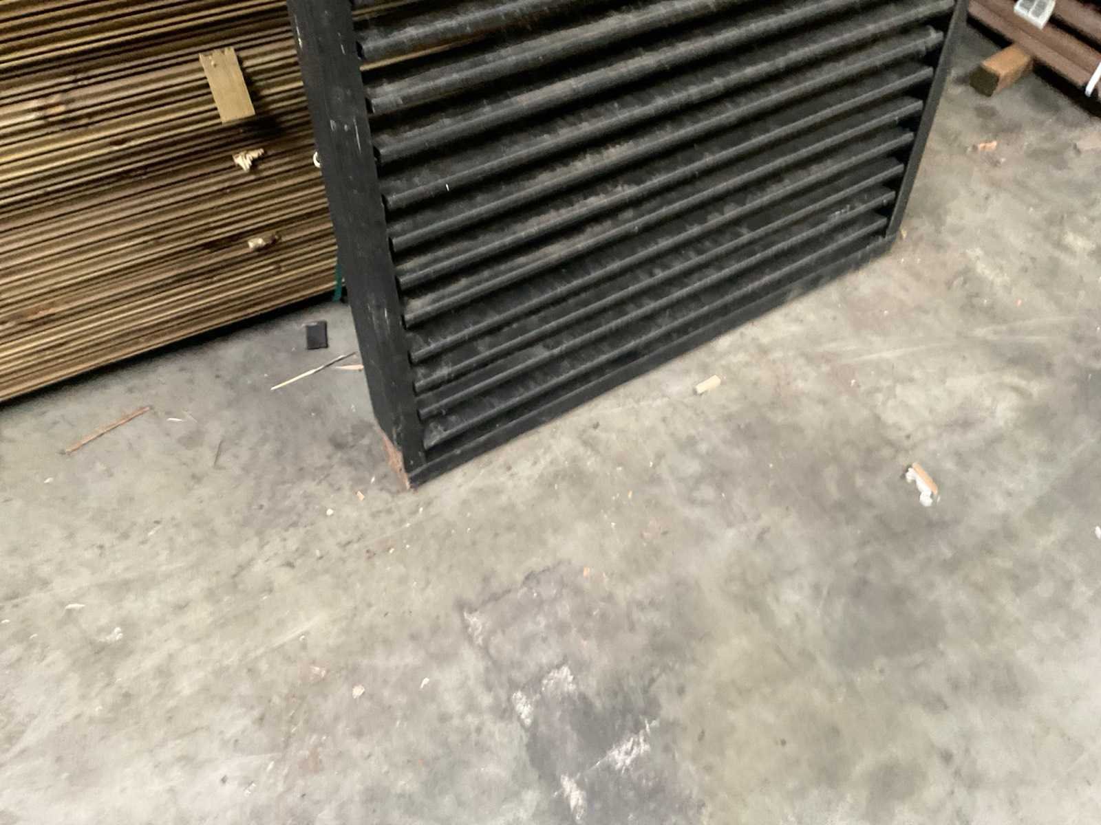 Douglas zwart gespoten Shutterscherm 120x225 cm. Merk: Hillhout Model: Verstelbare schutter lamelle Gewicht: 50kg Breedte: 120cm Hoogte: 225cm Materiaal: Douglas zwart gespoten