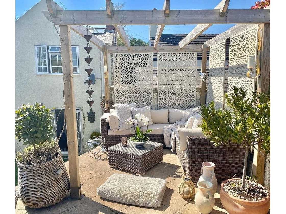 De Moucharabiya is het perfecte buitenscherm om stijl en privacy aan uw tuin toe te voegen. Geïnspireerd door het traditionele ontwerp van ramen uit de Arabische architectuur, vormt het een prachtige aanvulling op uw tuin. Merk: Screen Wiht Envy Model: Moucharabiya Product type: scherm Kleur: Cream Gewicht: 10kg Lengte: 90cm Breedte: 0.5cm Hoogte: 180cm Materiaal: Composiet
