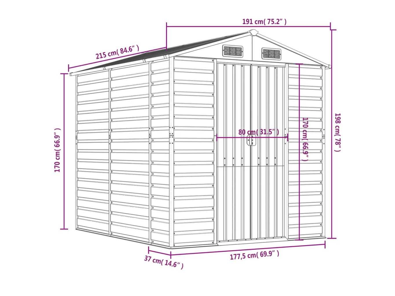 Omschrijving Breid je tuinopbergmogelijkheden uit en bescherm je gereedschap met deze multifunctionele tuinschuur. Robuust materiaal: het tuinschuurtje is gemaakt van gegalvaniseerd staal, dat roestvorming voorkomt en lang meegaat. Staal is een buitengewoon hard en sterk materiaal. Het biedt stevigheid en stabiliteit. Galvanisatie biedt een betere bescherming tegen corrosie en is handig voor producten die buiten of in ruwe omgevingen worden gebruikt. Voldoende opbergruimte: deze metalen schuur biedt voldoende ruimte om je brandhout, tuingereedschap, meubels, uitrusting en meer in op te bergen. Handige handgrepen: de deur van de opbergschuur is voorzien van handgrepen voor gemakkelijke toegang. Goede ventilatie: de berging heeft 4 ventilatieopeningen die zorgen voor ventilatie, om de ophoping van vocht en geurtjes in de schuur te verminderen. Schuin ontwerp: dankzij het schuine dak loopt water er ongehinderd vanaf. Kleur: lichtbruin Materiaal: gegalvaniseerd staal Totale afmetingen: 191 x 215 x 198 cm (B x D x H) Afmetingen deur: 80 x 170 cm (B x H) Merk: vidaXL Model: zadeldak Product type: tuinhuis Kleur: Hout keur Gewicht: 100kg Lengte: 215cm Breedte: 191cm Hoogte: 198cm Materiaal: Verzinkt-gespoten staal