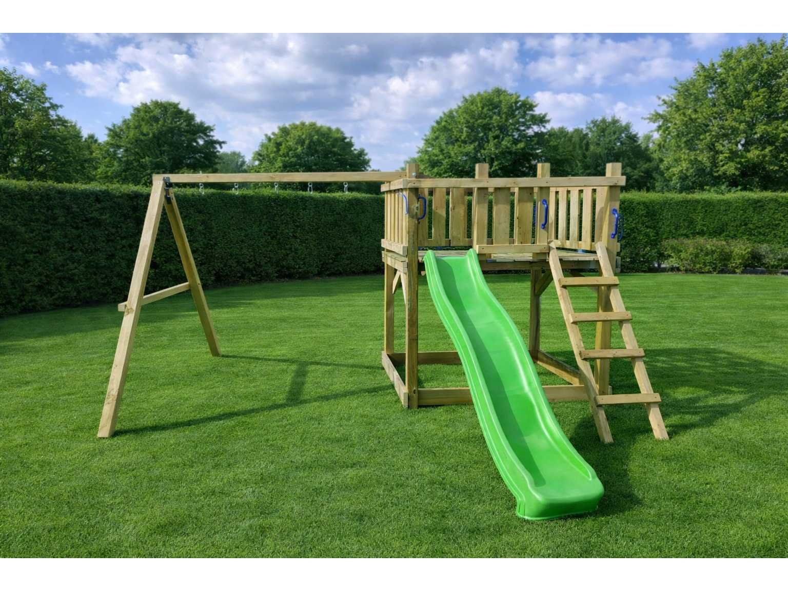 Vrijstaande speeltoren met schommel en glijbaan 410x300x200 cm