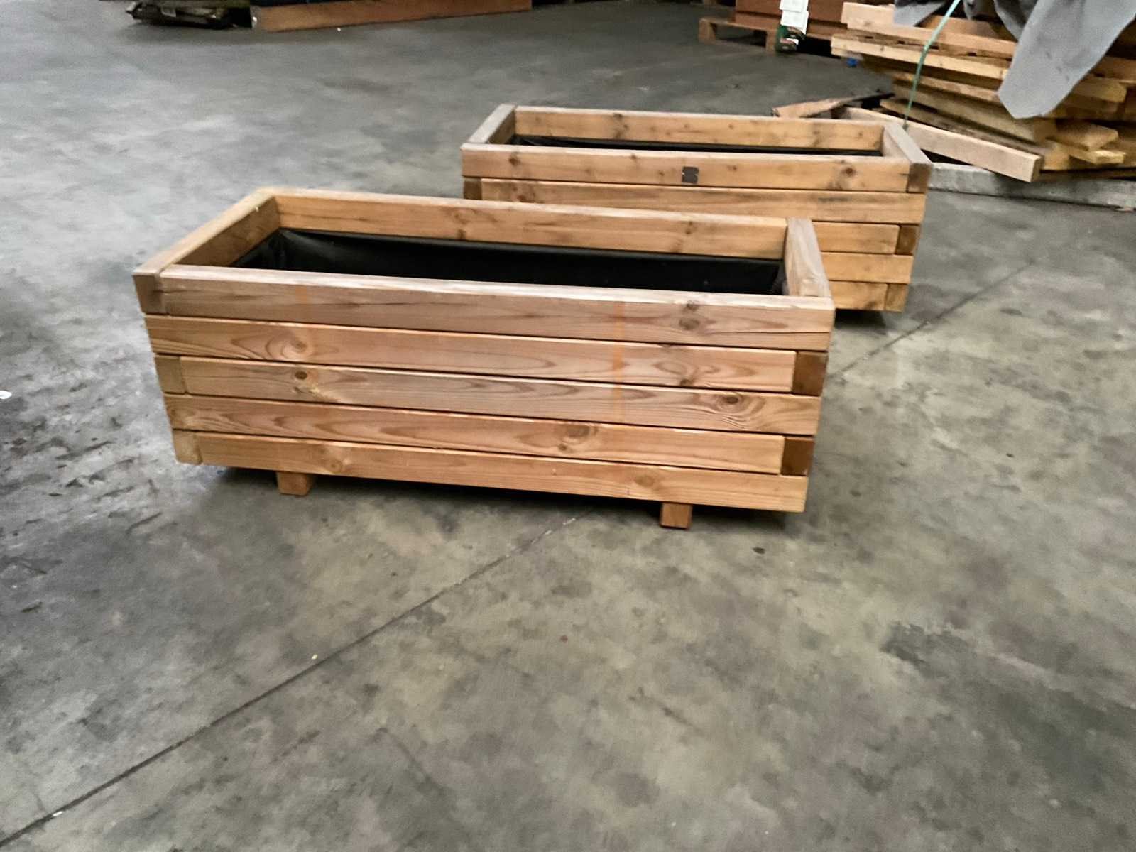 Let op: Bakken zijn licht krom, zie foto's voor details. Merk: Garlux Model: Rechthoek Gewicht: 50kg Lengte: 90cm Breedte: 40cm Hoogte: 35cm Materiaal: Vuren geimpregneerd