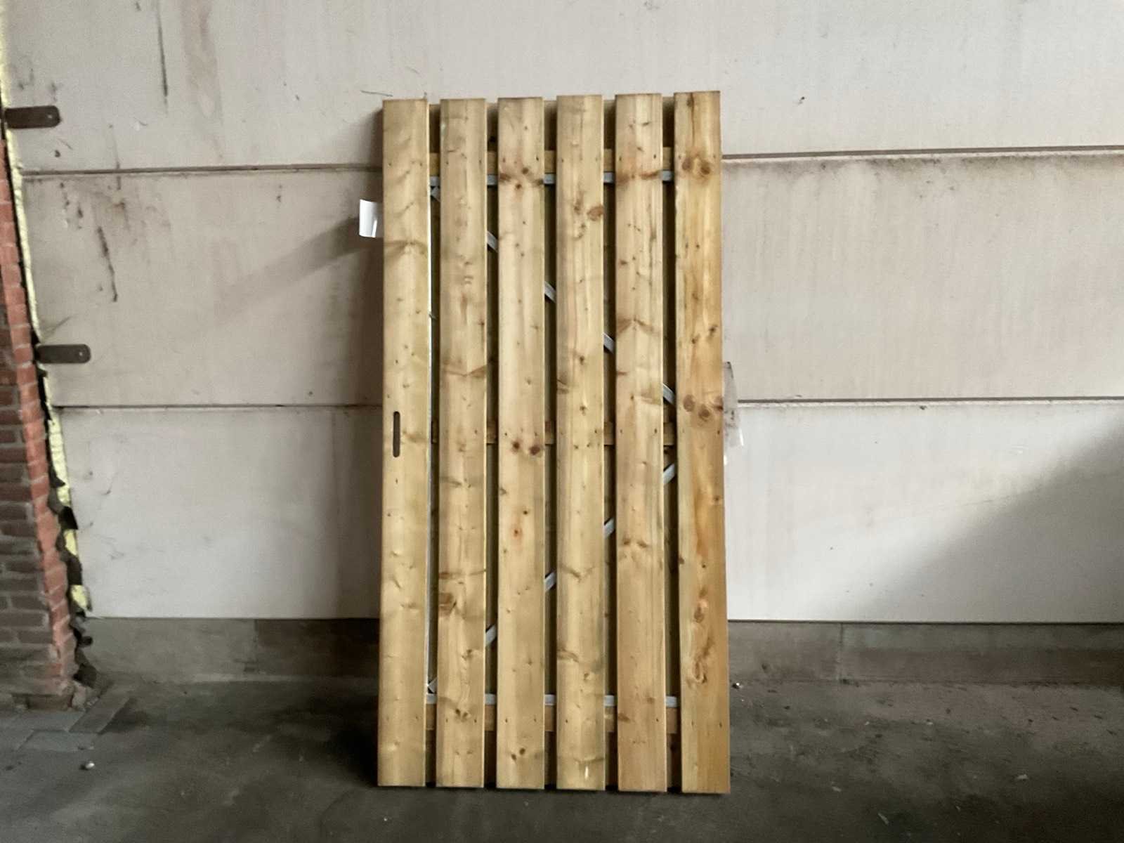 Vuren geïmpregneerd tuinpoort met metalen frame 195x100 cm. zonder hang- en sluitwerk. Licht beschadigd, zie foto's voor details. Merk: Hillhout Model: Tuinpoort Product type: Metalen frame Gewicht: 75kg Breedte: 100cm Hoogte: 195cm Materiaal: Geimperneerd vuren