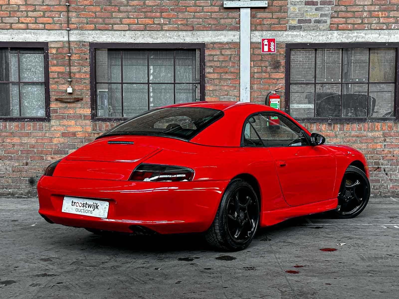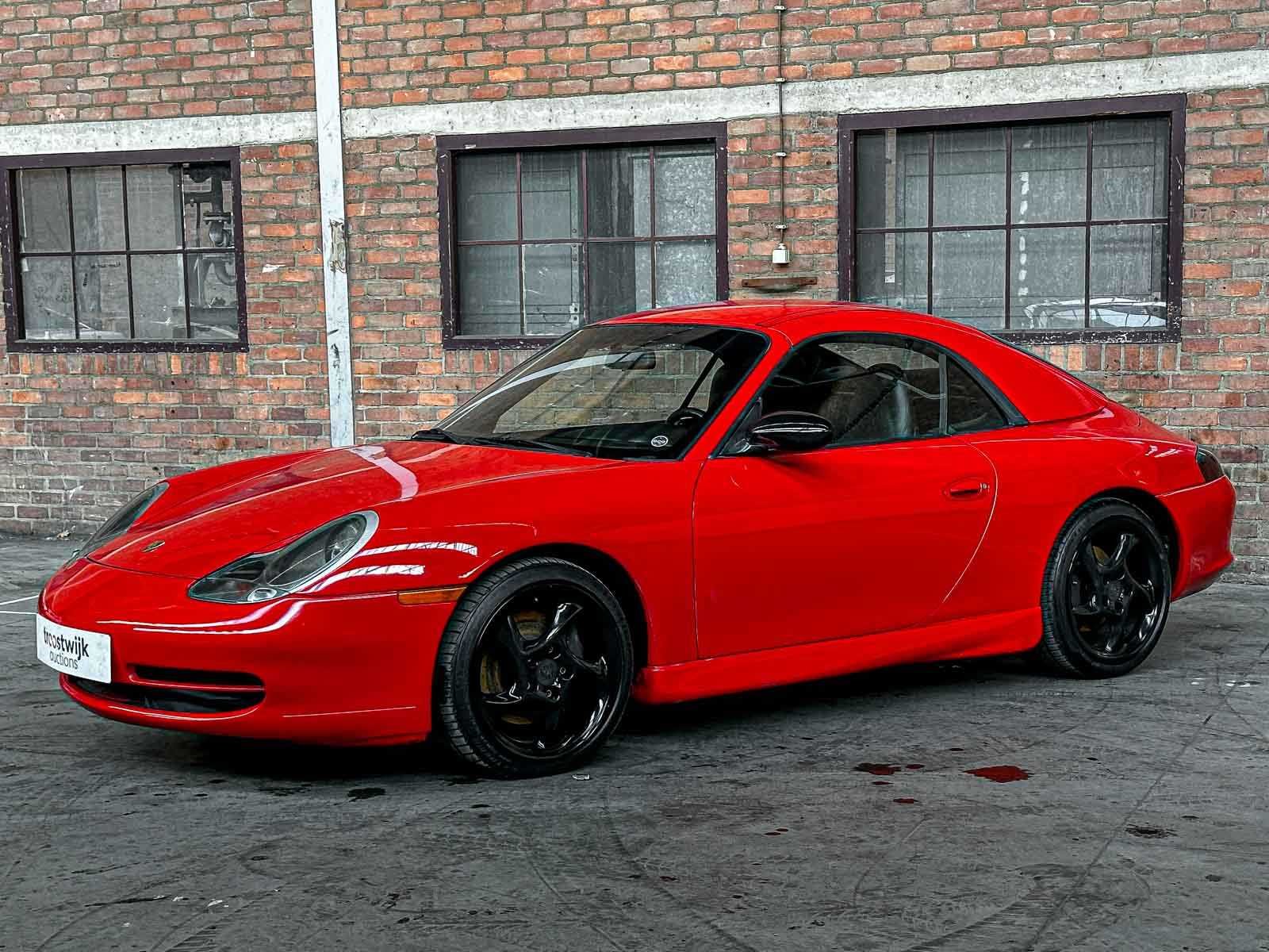 Merk: Porsche Model: 911 Type: 996 Carrera Cabrio 3.4 Brandstof: Benzine Afgelezen mijlenstand: 126025mi Chassisnummer: WP0CA29981S651633 Datum eerste toelating: 2001-01-01 Vermogen (pk): 300hp Aandrijving: Achterwielaandrijving Aantal zitplaatsen: 4 Kleur: Rood Transmissie: Automaat Stuurwiel: Links gestuurd Aantal deuren: 2 Nationaliteit documenten: USA (clean) title, invoerrechten en BTW zijn voldaan
