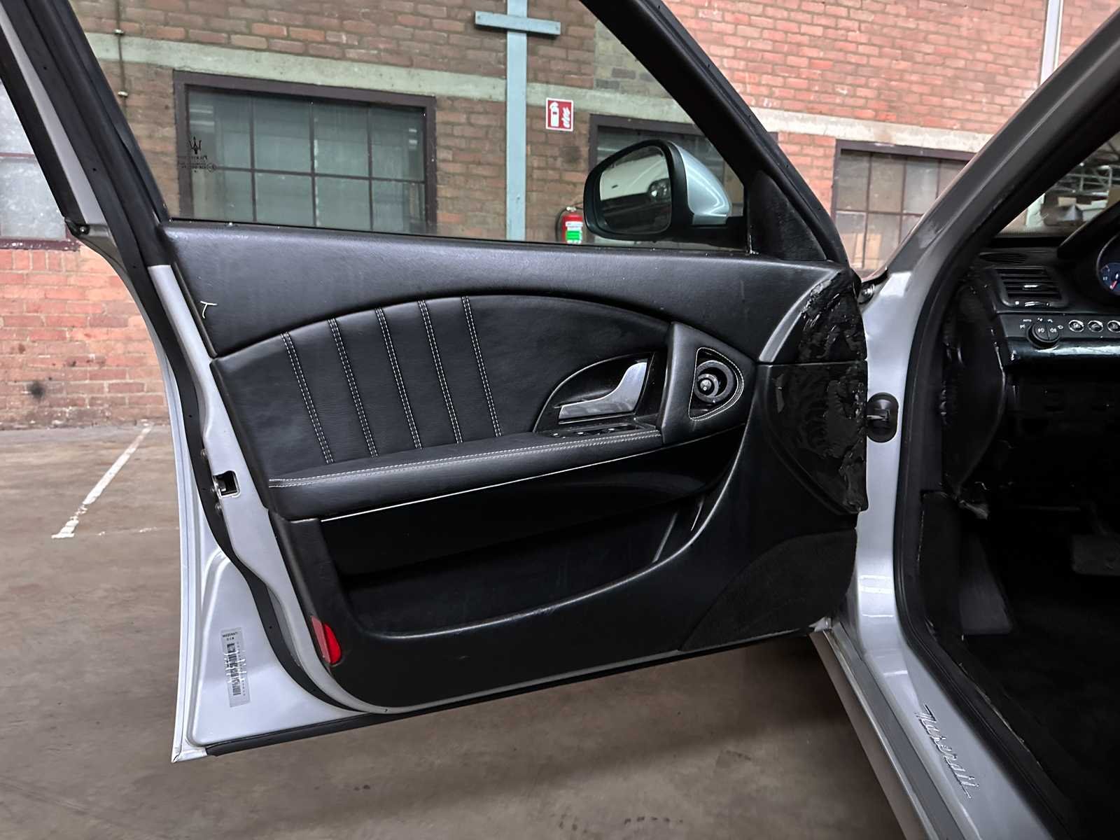 Merk: Maserati Model: Quattroporte Type: 4.2 V8 Brandstof: Benzine Afgelezen mijlenstand: 74106mi Chassisnummer: ZAMFK39A190043806 Datum eerste toelating: 01-01-2009 Vermogen (pk): 440hp Aandrijving: Achterwielaandrijving Aantal zitplaatsen: 5 Kleur: grijs Transmissie: Automaat Stuurwiel: Links gestuurd Aantal cilinders: 8 Carrosserie: Sedan Nationaliteit documenten: USA (salvage title), invoerrechten en BTW zijn betaald. Onderhoudshistorie: ja gedeeltelijk
