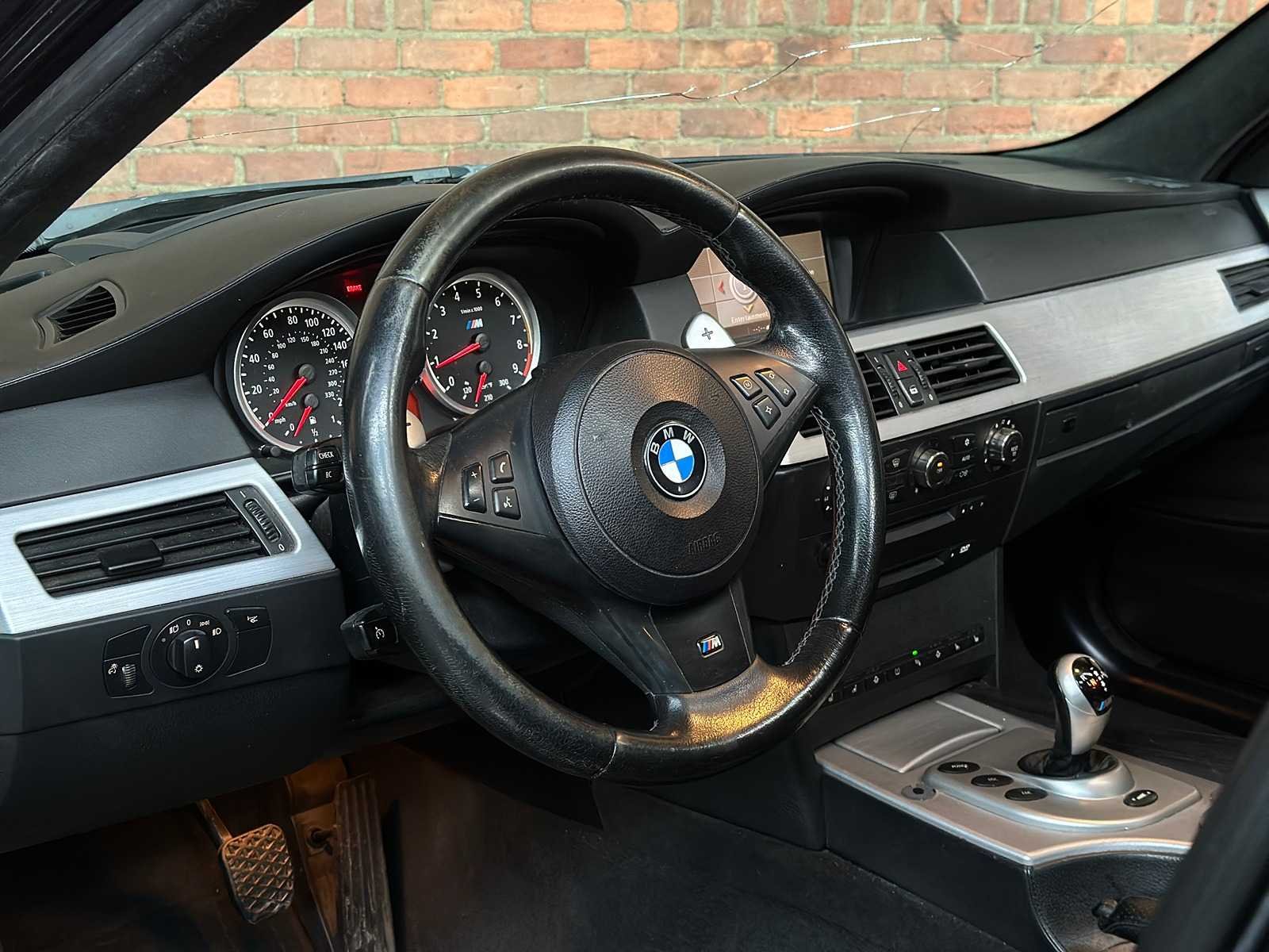 Merk: BMW Model: 5-serie Type: M5 5.0 V10 E60 Brandstof: Benzine Afgelezen mijlenstand: 176558mi Chassisnummer: WBSNB93586B583645 Datum eerste toelating: 2006-01-01 Vermogen (pk): 500hp Aandrijving: Achterwielaandrijving Aantal zitplaatsen: 5 Kleur: Zwart Transmissie: Automaat Stuurwiel: Links gestuurd Aantal deuren: 5 Aantal cilinders: 10 Carrosserie: Sedan Nationaliteit documenten: USA (clean title), invoerrechten en BTW zijn betaald. Onderhoudshistorie: ja gedeeltelijk