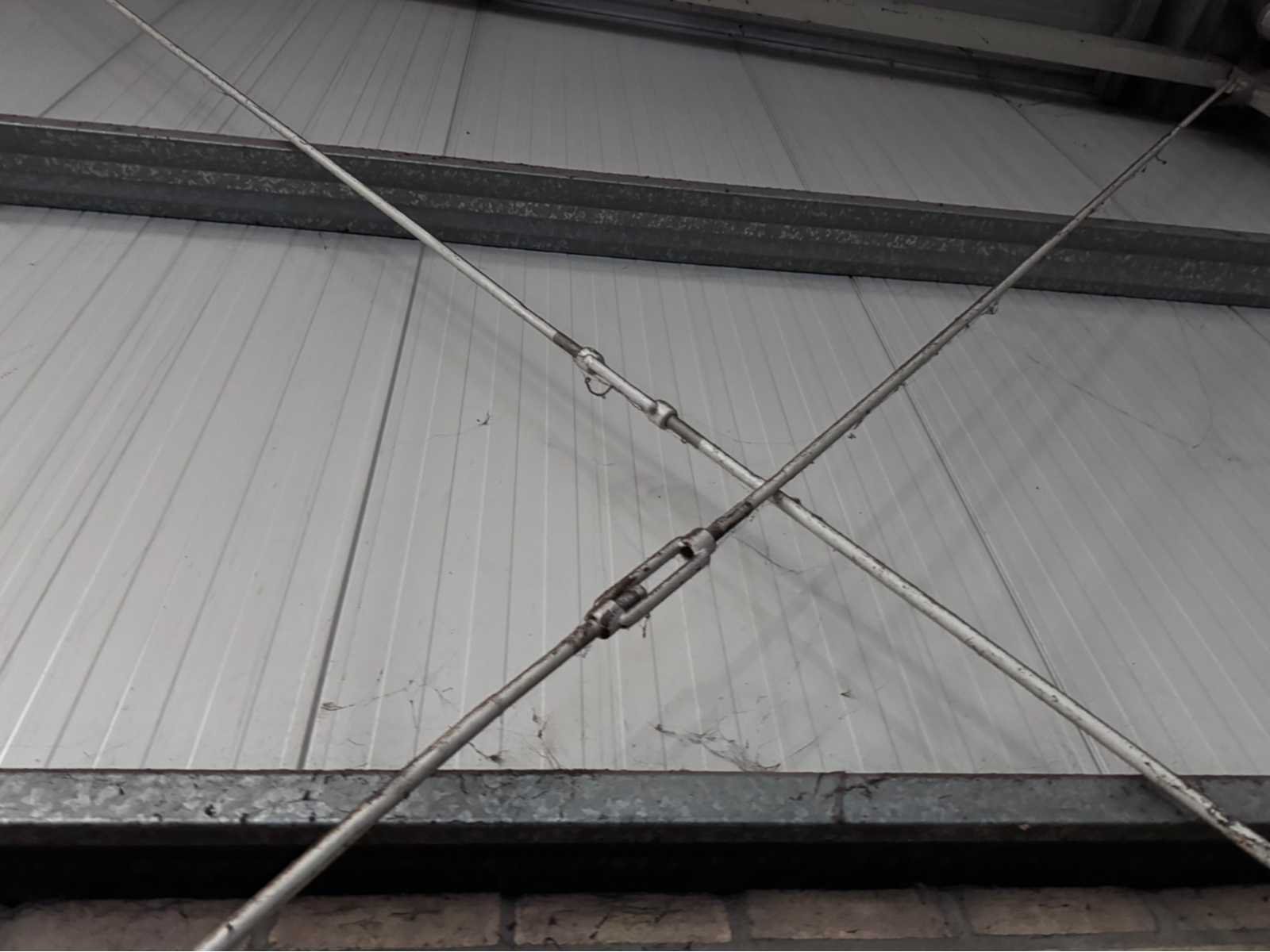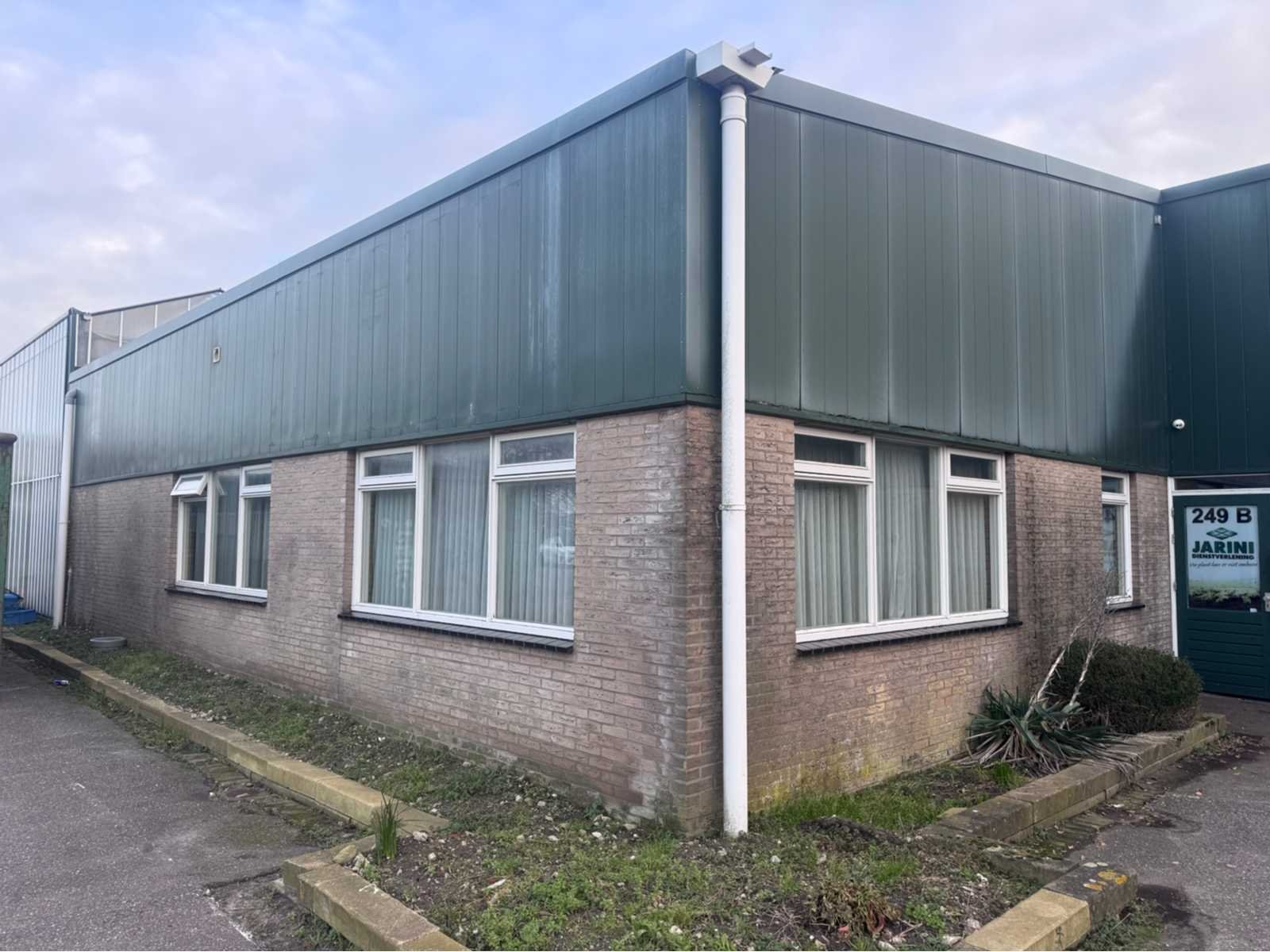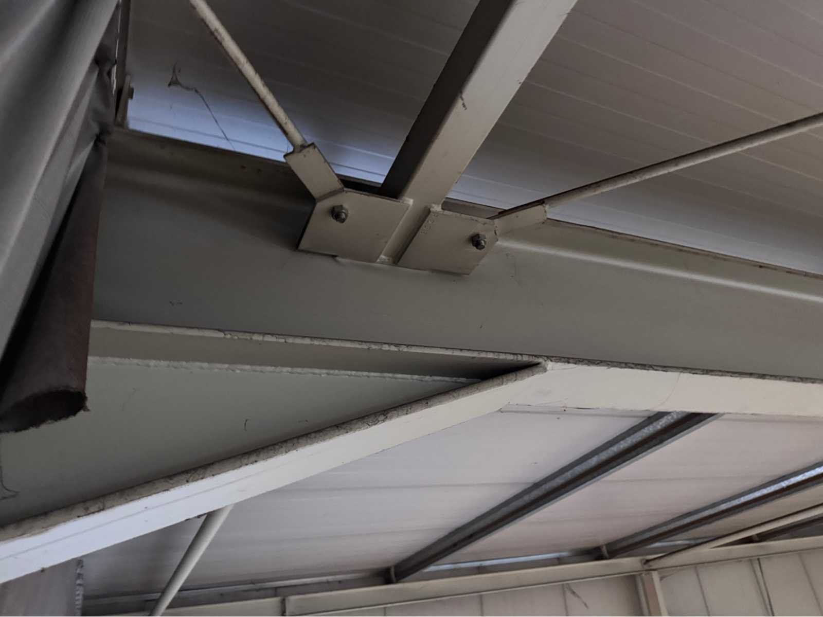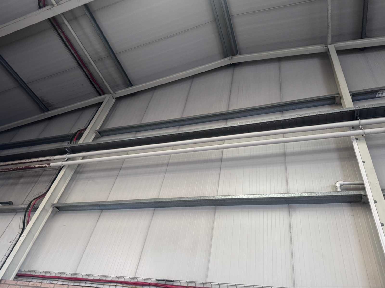 Wit gecoate staalconstructie; vak 1; vrije overspanning van 19980 mm; lengte van 36400 mm; vak 2; aanbouw Dock gedeelte van 5800 mm breed en een lengte van 18800 mm; vak 3; vrije overspanning van 25800 mm; lengte van 14930 mm; vak 4; aanbouw gedeelte van 7690 mm diep en een lengte van 14930 mm; goothoogte aanbouw zijde kas is 5500 mm; nokhoogte is 8300 mm; goothoogte aanbouw vak 4 is 4200 mm; vakmaat 4500 mm; hoofd staanders IPE 300; spantbenen IPE 300; kopgevel staanders IPE 200; met kruisschoren en windverbanden; doorlopende nokluchting met mechanische aandrijving; met 3 overheaddeuren en de aanwezige gevel beplating; met Dock levelaar en bediening; zonnepaneel installatie van 290 panelen; 170 zonnepanelen zijn 270 WP; en 120 zonnepanelen zijn 255 WP; met 4 bijhorende omvormers; totale installatie is 76500 WP; met montage systeem en bijhorende bekabeling tot aan de omvormers; wordt vakkundig gedemonteerd door verkoper en transport klaar gemaakt;