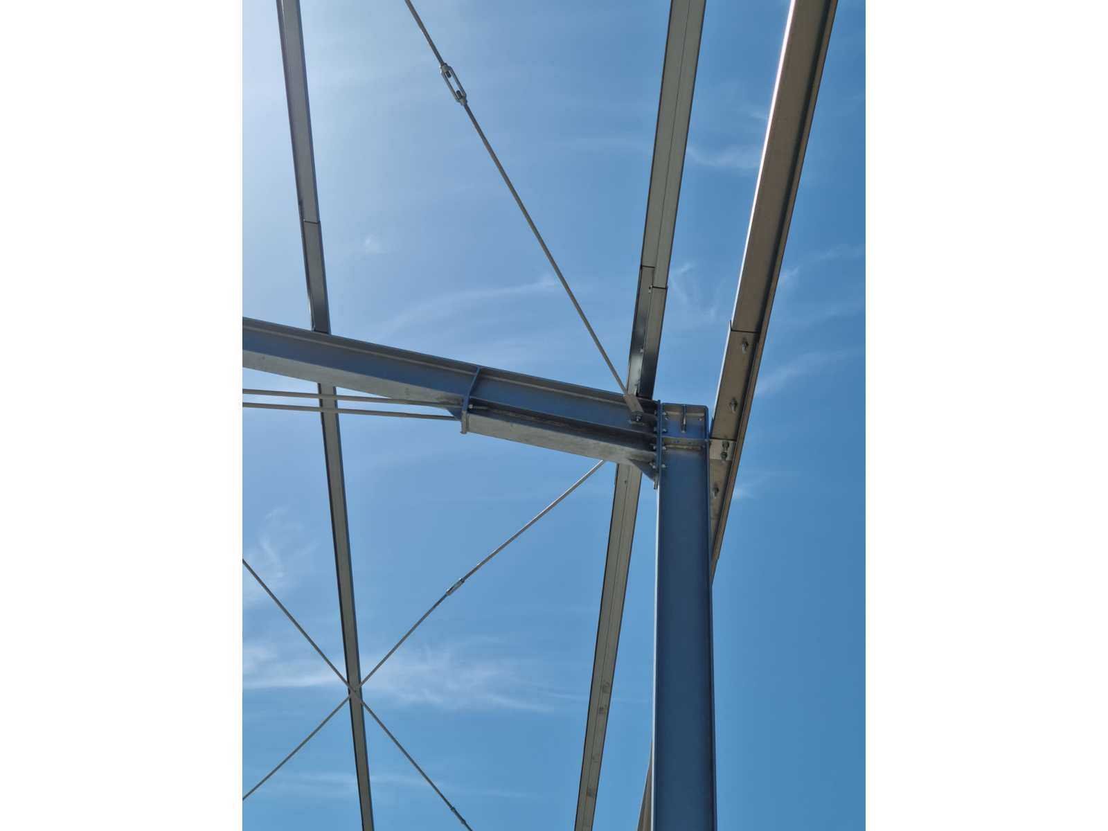 Ongebruikte staalconstructie; gegalvaniseerd staal; volblad verzinkt; IPE 160 onderbouw; constructie bestaat uit staanders en spanten; inclusief windverbanden/schoren; loods is transport klaar gemaakt Totaal oppervlakte: 280m² Goot hoogte: 5000mm Totale afmeting L: 20000mm Totale afmeting Breedte: 14000mm