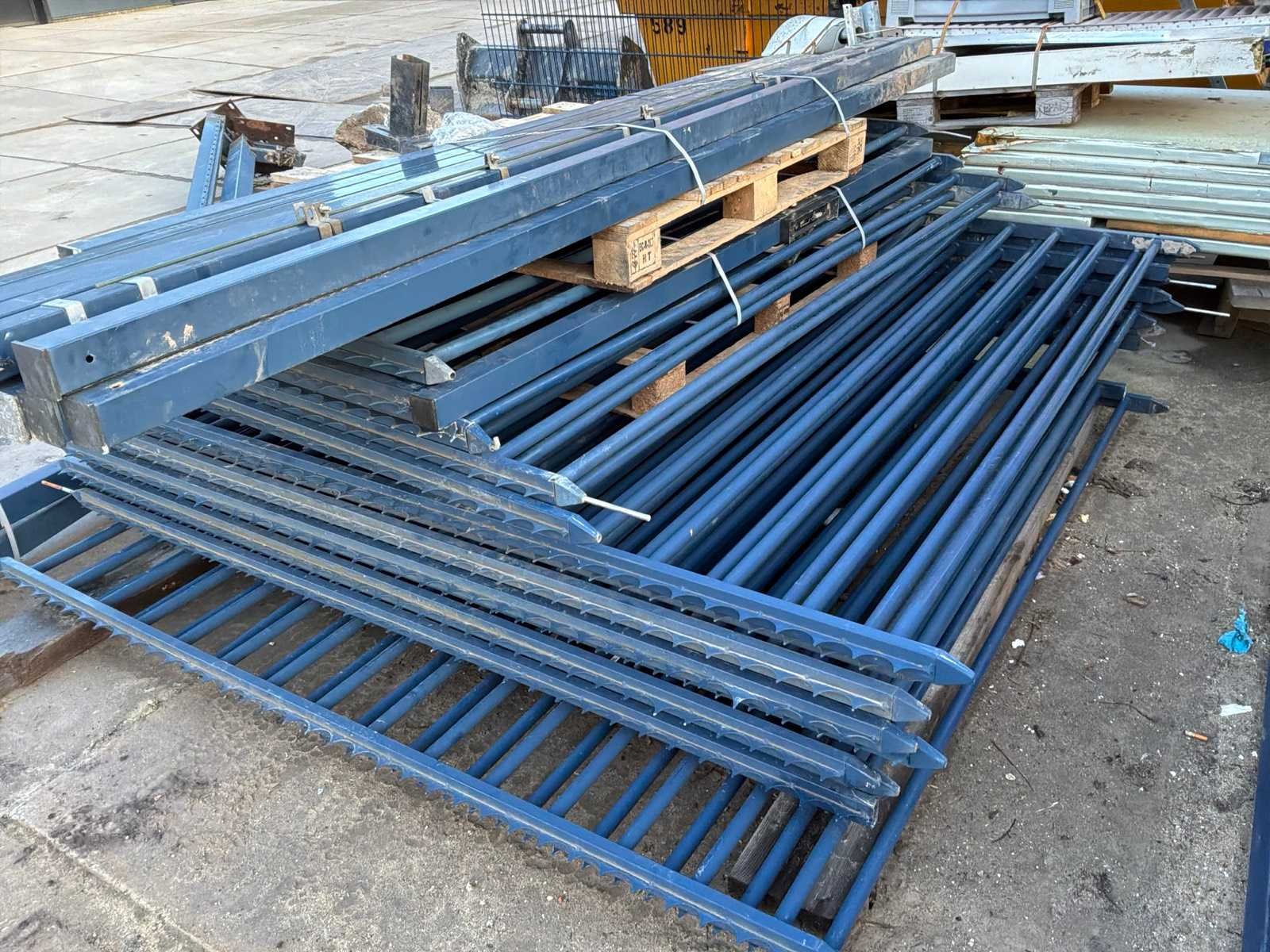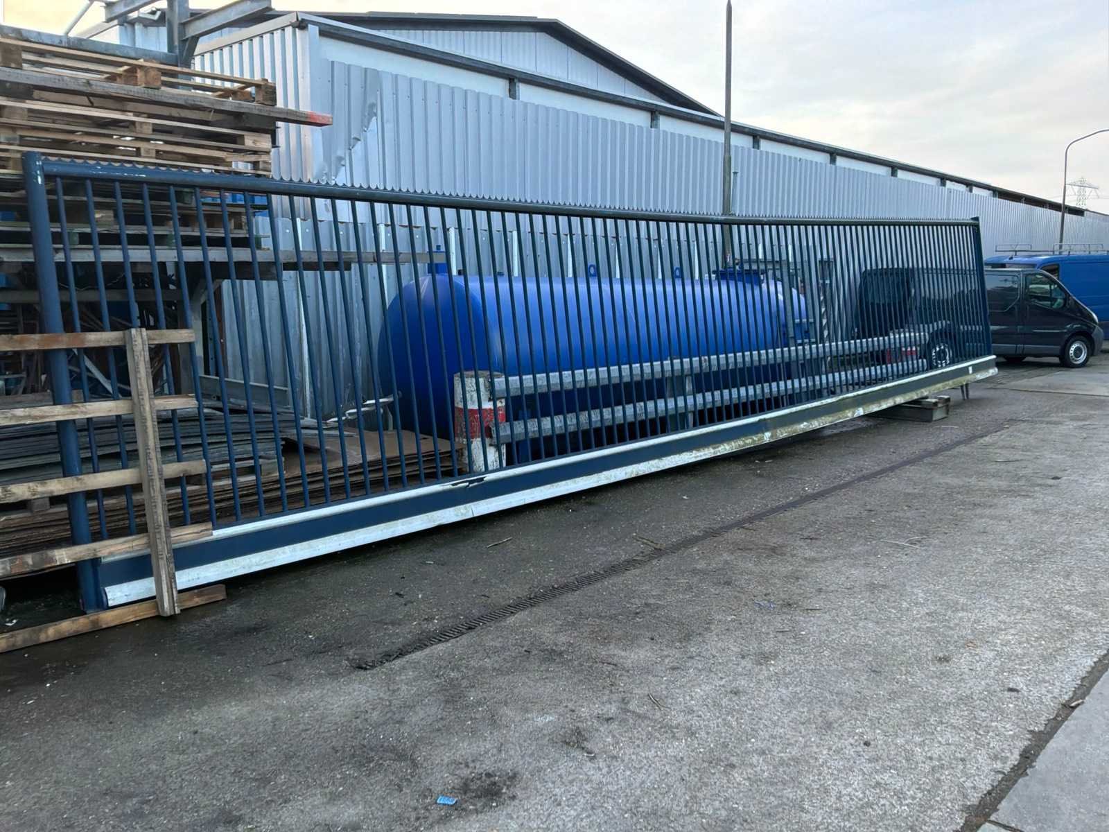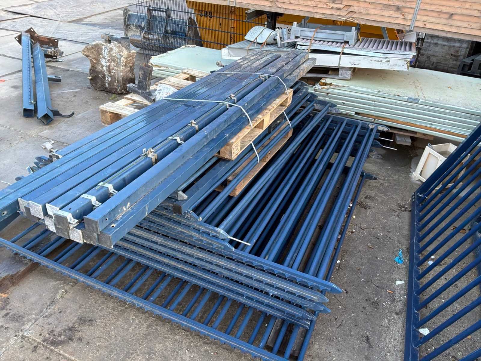 Gedemonteerd geleverd; lengte ca 13000mm; hoogte ca 2500mm; inclusief bijbehorende hekken en staanders; bijbehorend hekwerk bestaat uit 12 stuks van ca 2350mm x ca 2400mm; inclusief palen Afmeting l: 13m