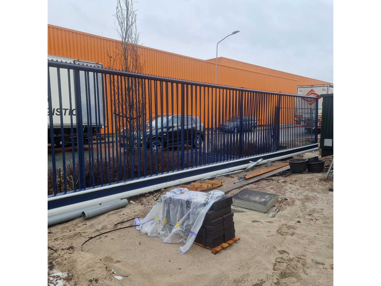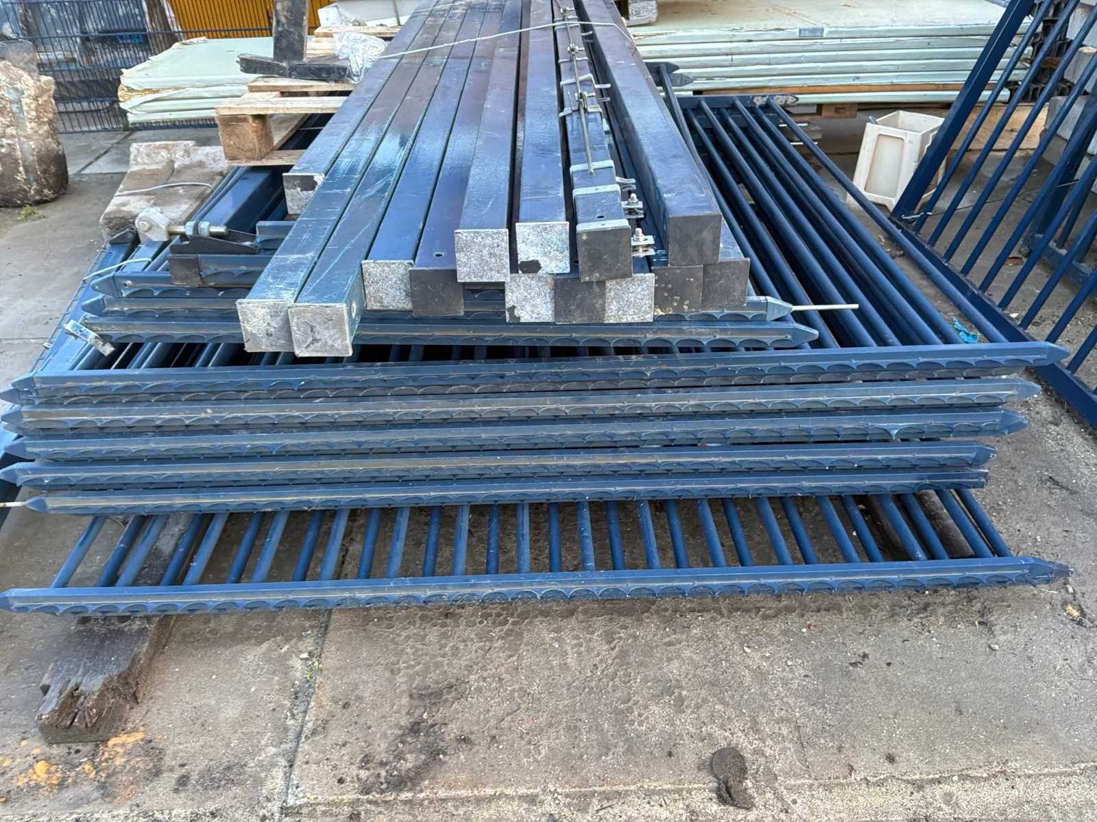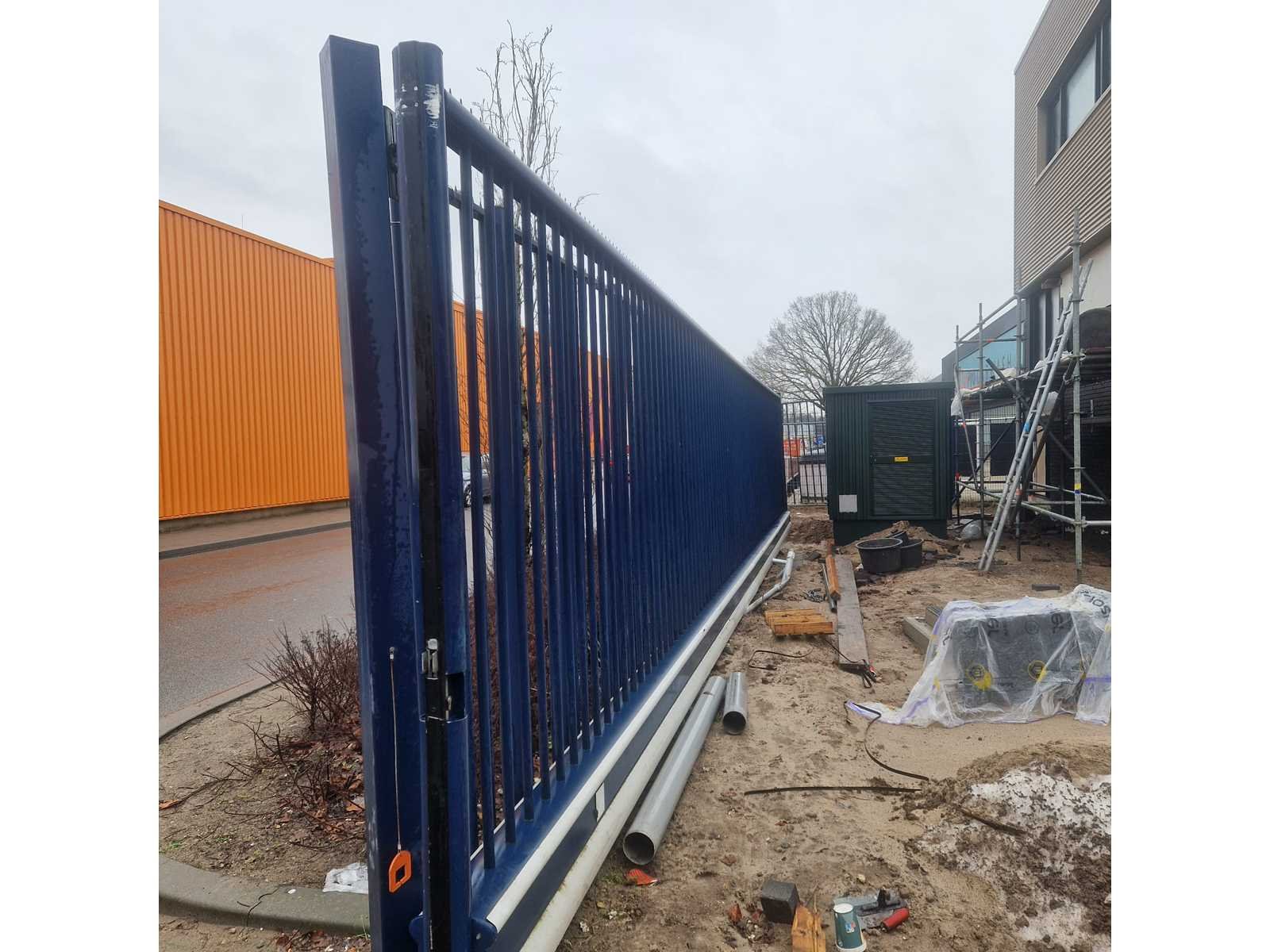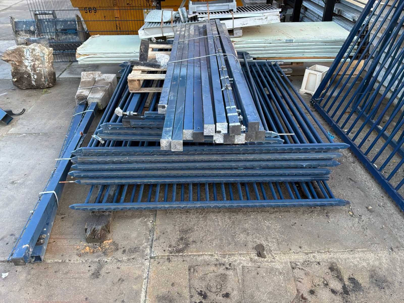 Gedemonteerd geleverd; lengte ca 13000mm; hoogte ca 2500mm; inclusief bijbehorende hekken en staanders; bijbehorend hekwerk bestaat uit 12 stuks van ca 2350mm x ca 2400mm; inclusief palen Afmeting l: 13m