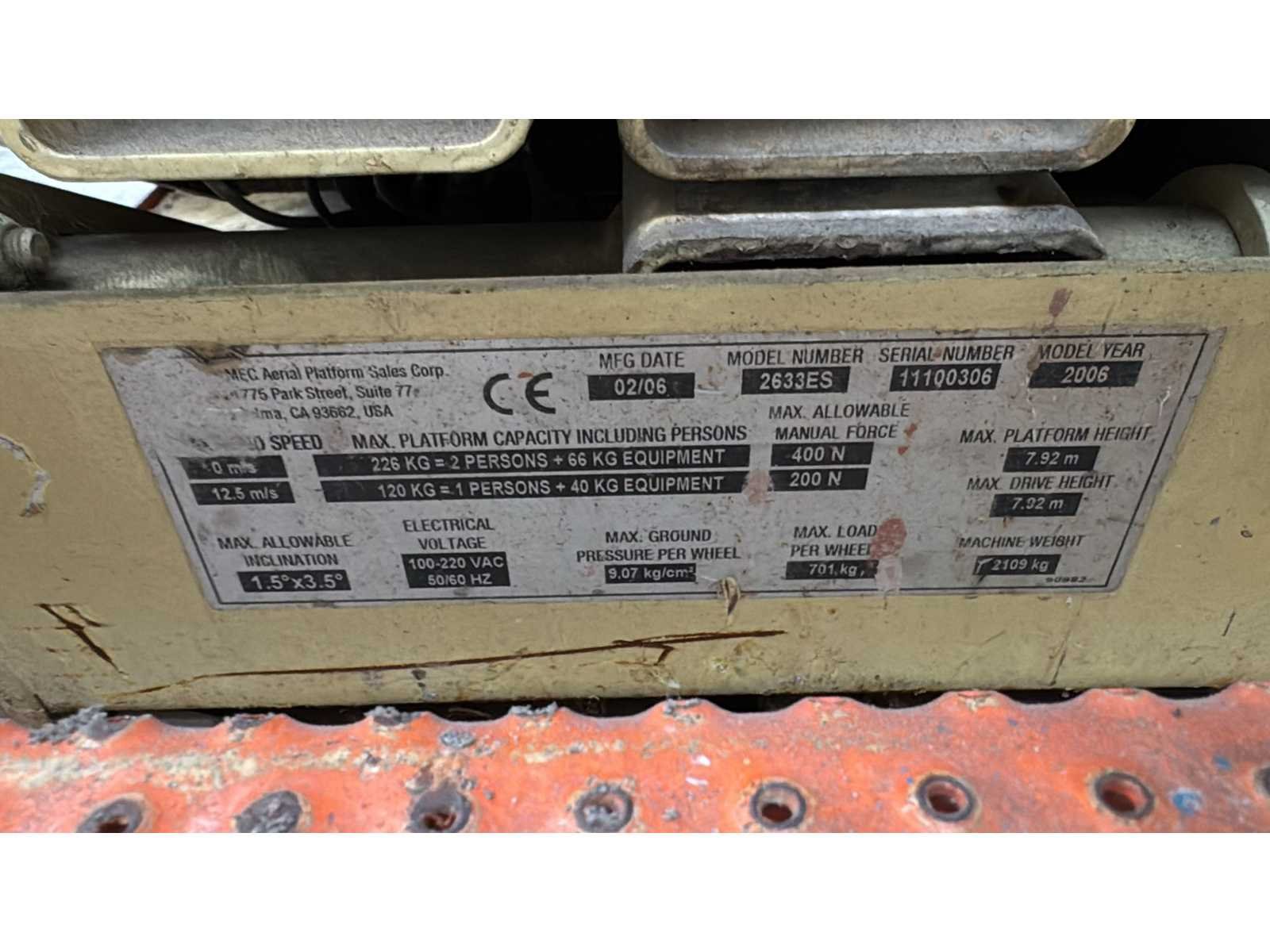 Merk: MEC Type: 2633 ES Elektrisch: true Schaarhoogwerker: true Werkhoogte: 10000mm Accu lader: true