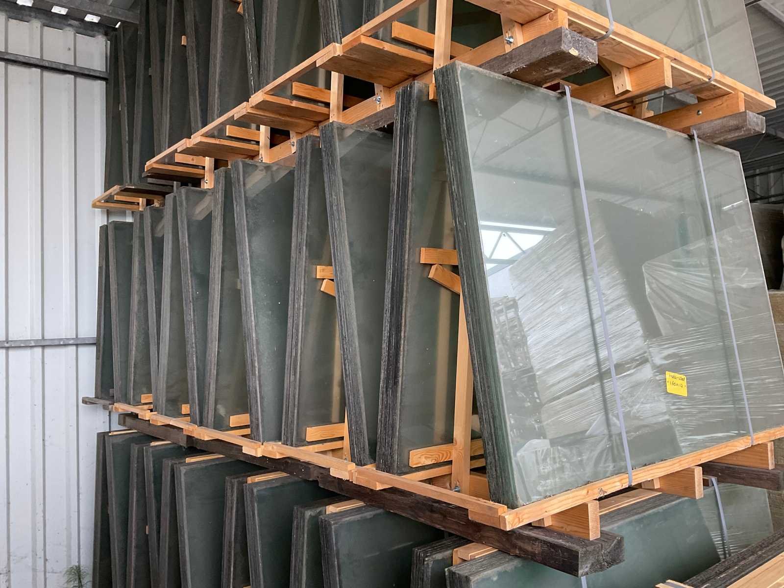 Gestapeld op houten glasbok; glasbok is inbegrepen Plaatafmeting l: 1650mm Dikte: 4mm Plaatafmeting b: 997mm
