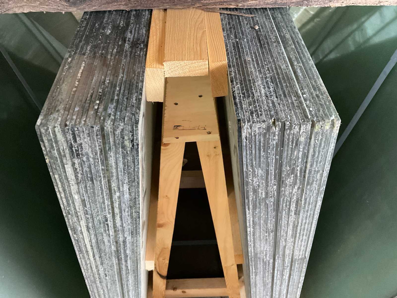 Gestapeld op houten glasbok; glasbok is inbegrepen Plaatafmeting l: 1650mm Dikte: 4mm Plaatafmeting b: 997mm