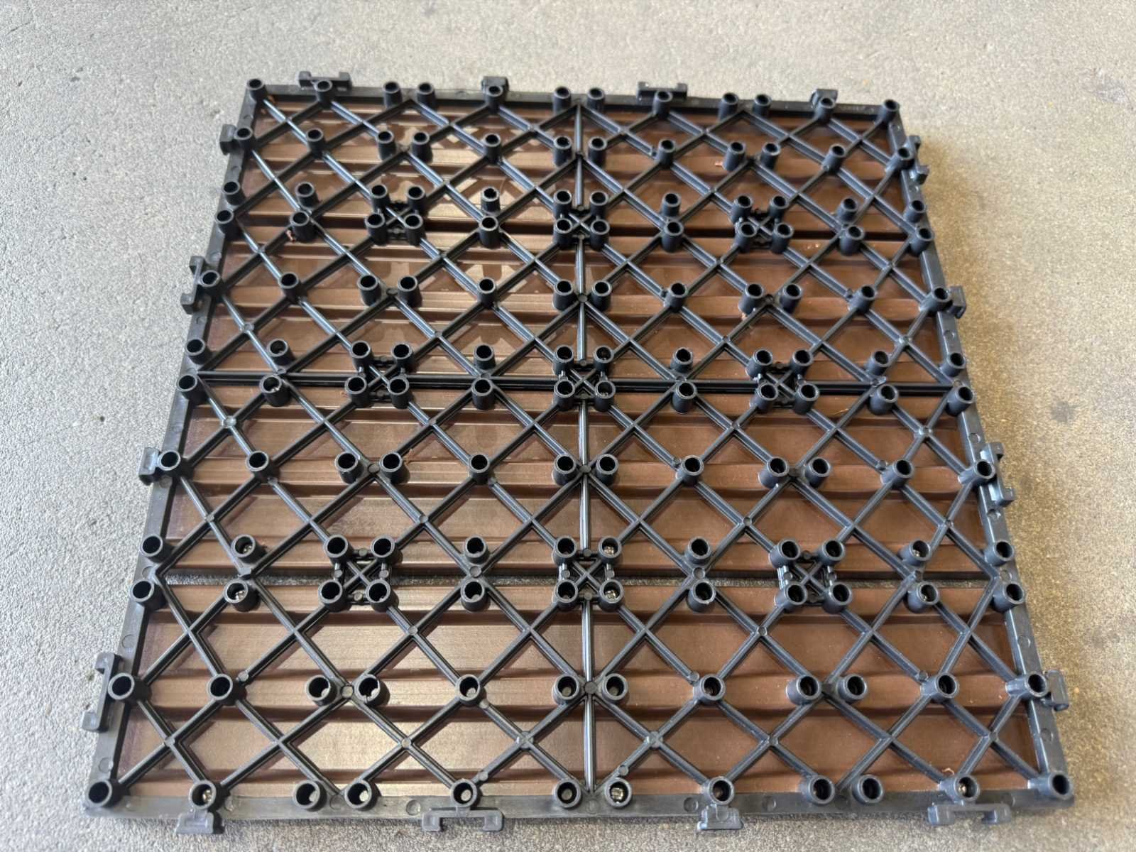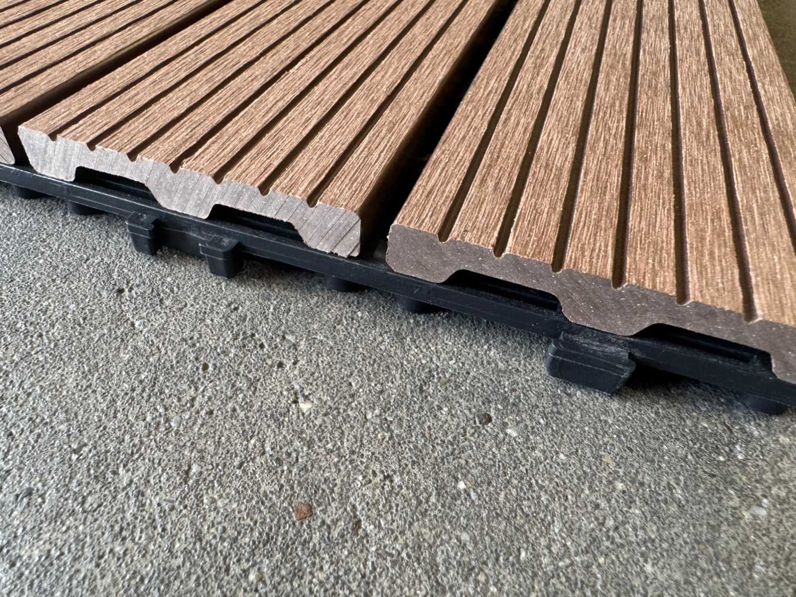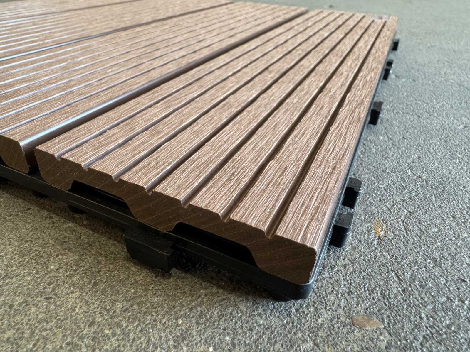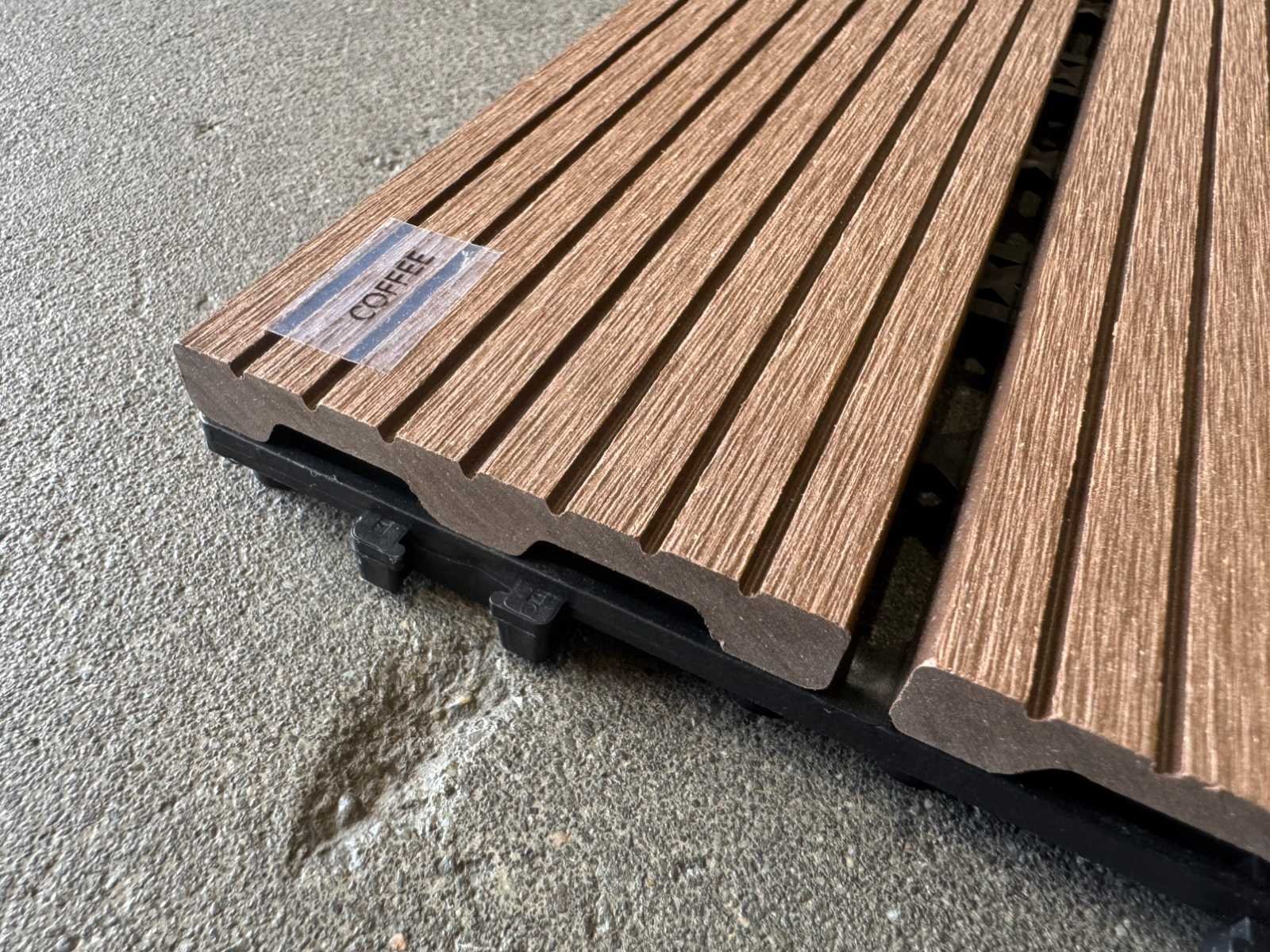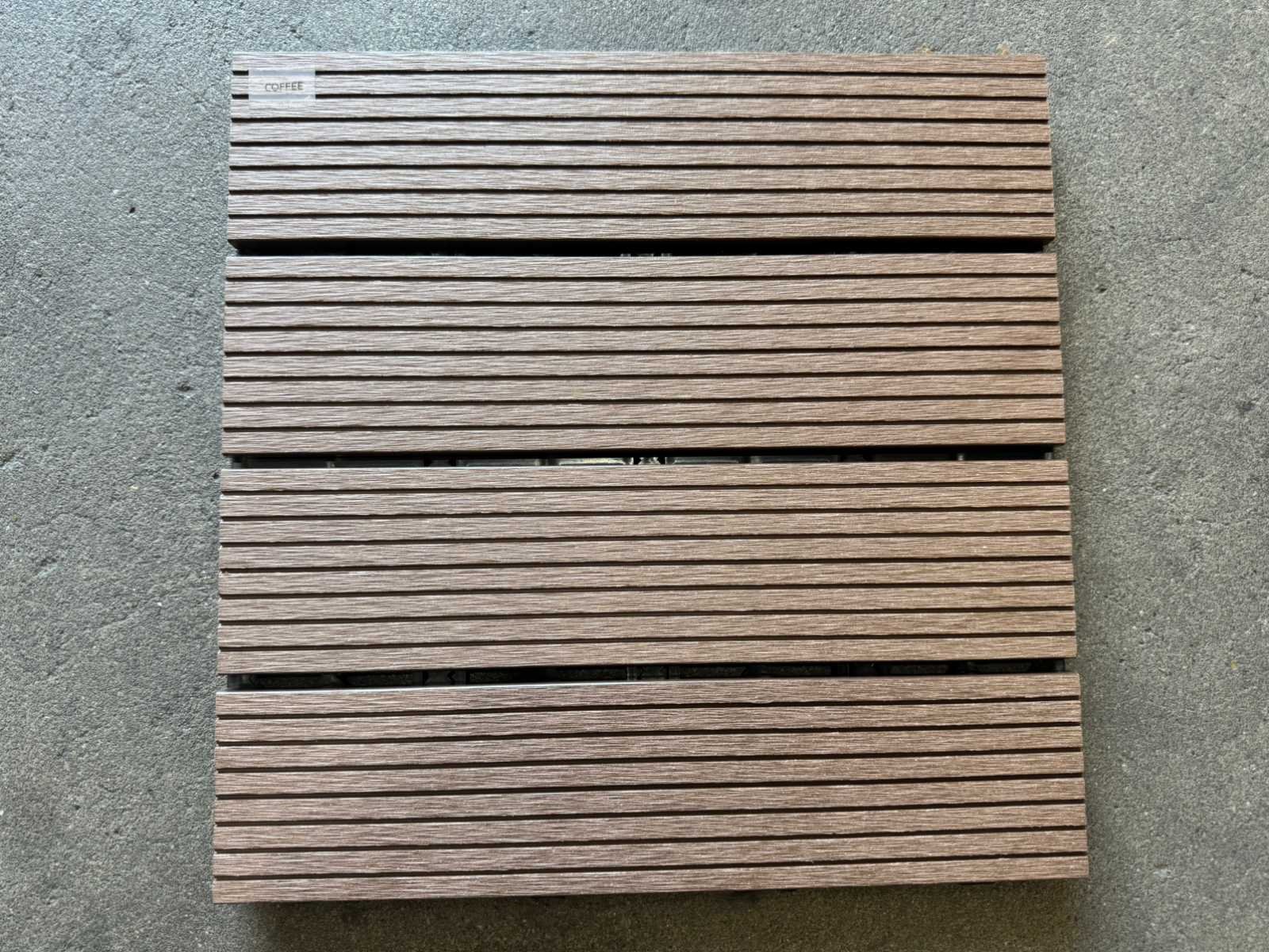1 tegel is 0,09 m2; tegels zijn koppelbaar; dit kavel bestaat uit 111 stuks tegels Kleur: Coffee Lengte: 300mm Breedte: 300mm Dikte: 20mm