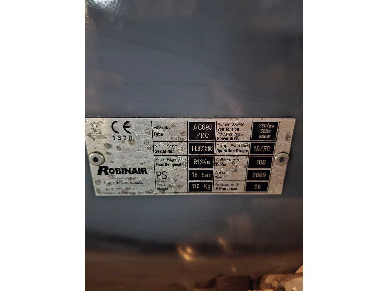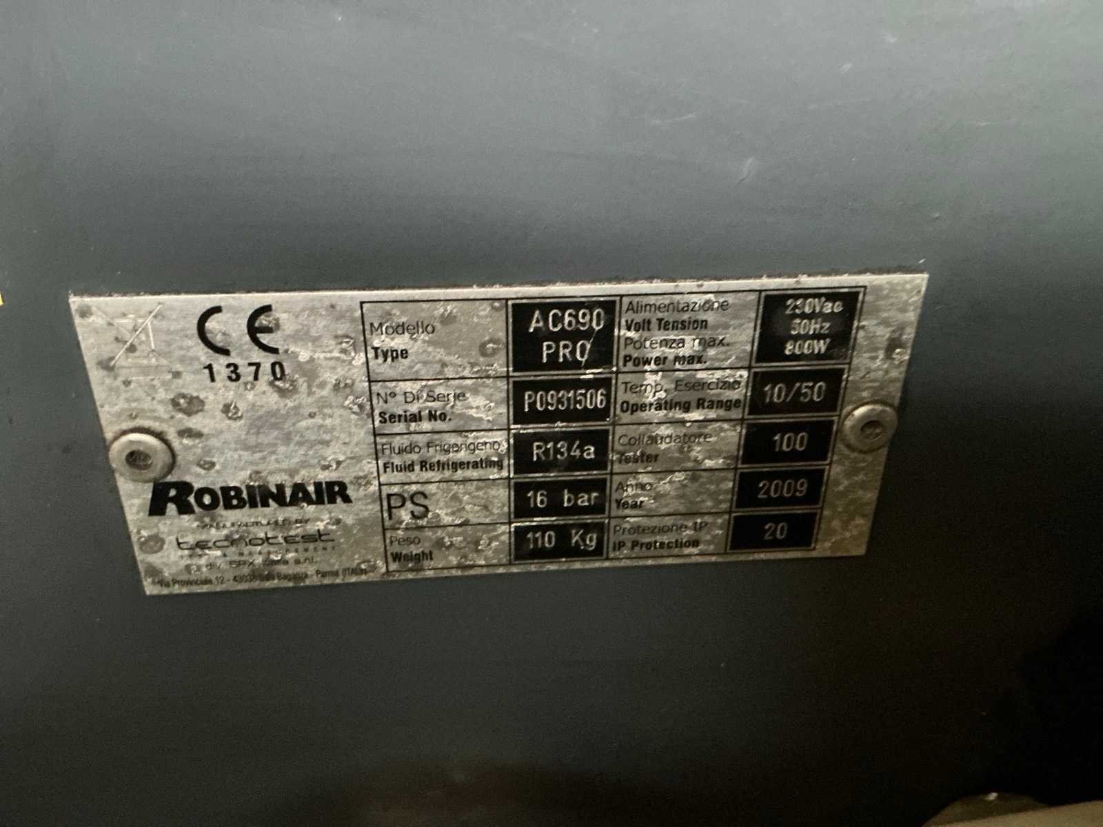 Merk: Robinair Type: AC690Pro Bouwjaar: 2009 Aansluiting: 230V Totale afmeting L: 780mm Totale afmeting Breedte: 750mm Totale afmeting Hoogte: 1350mm