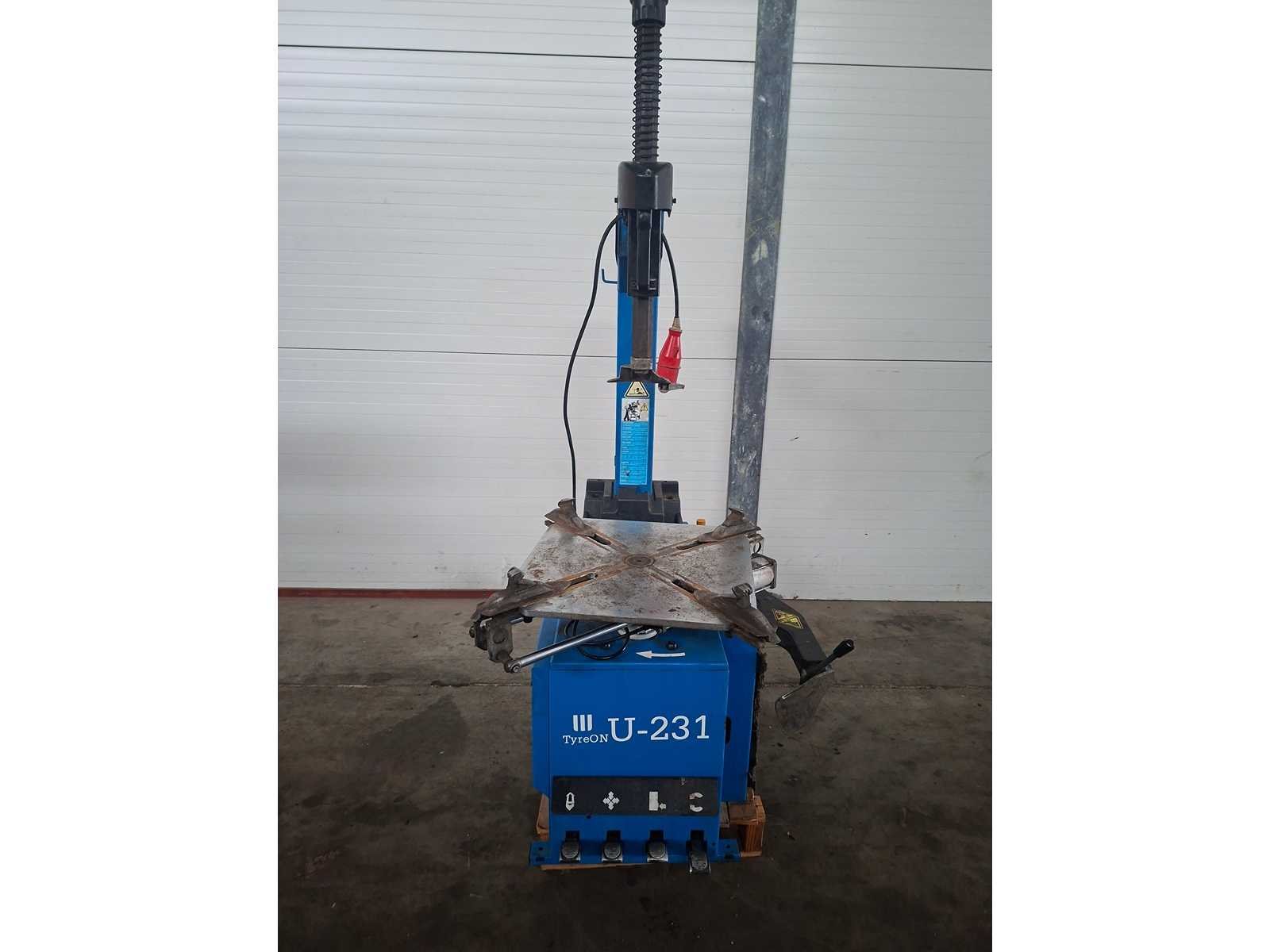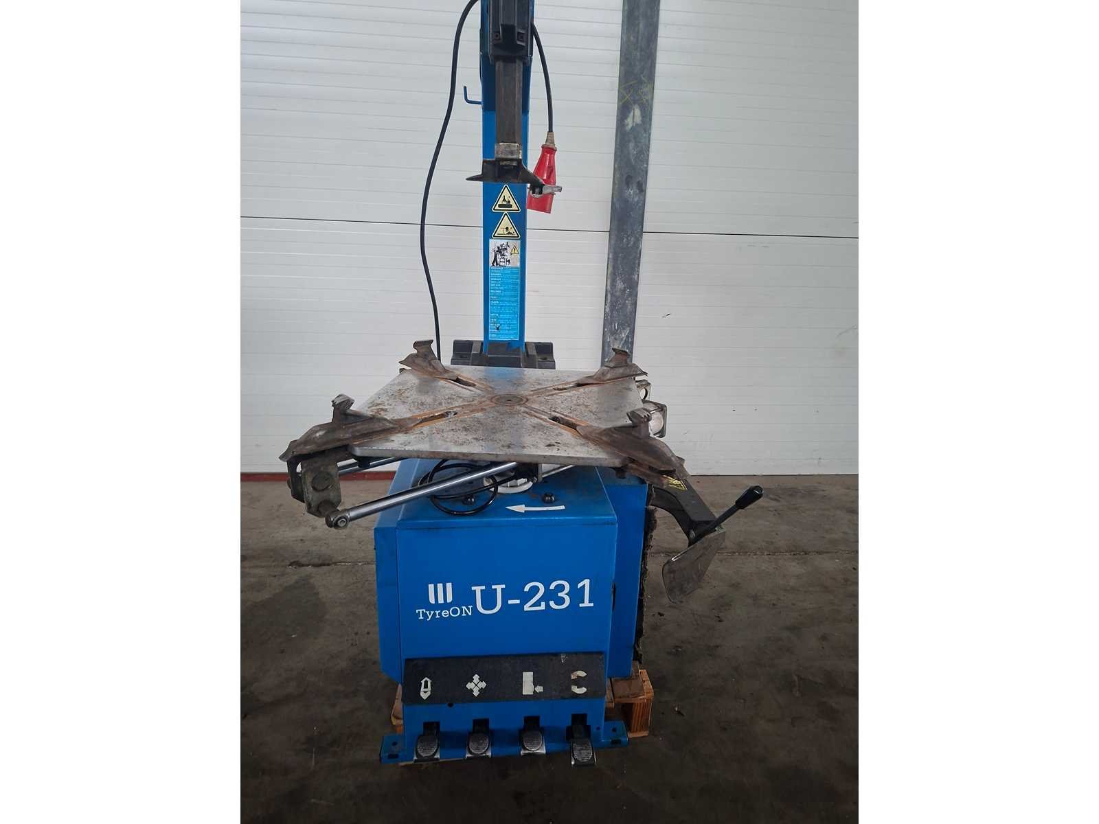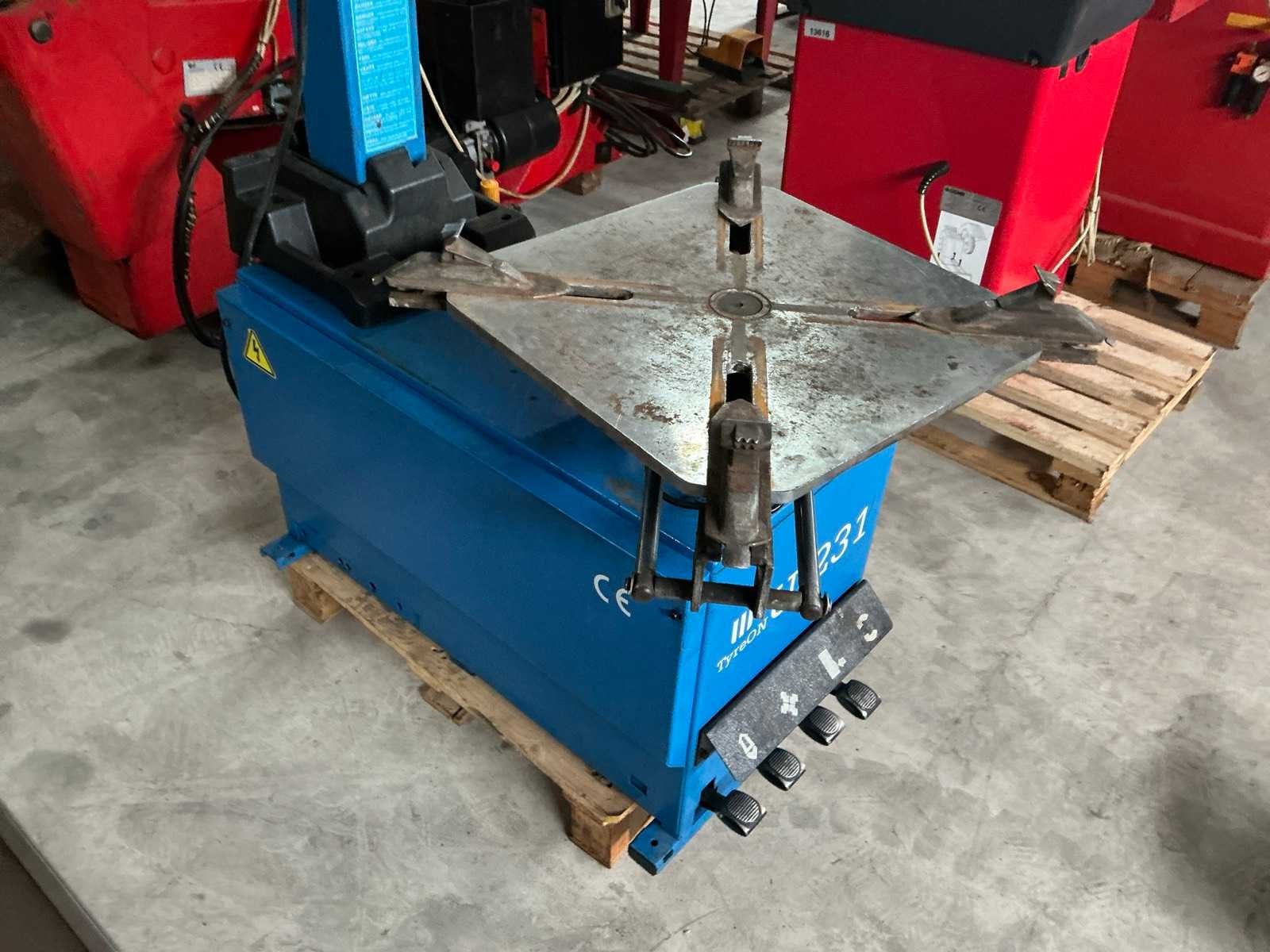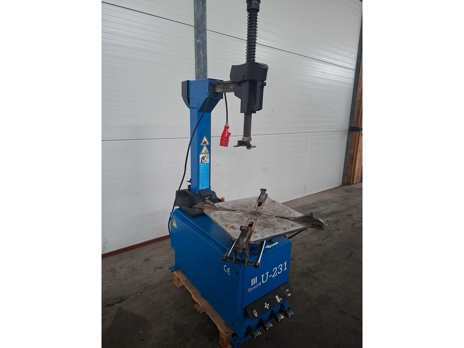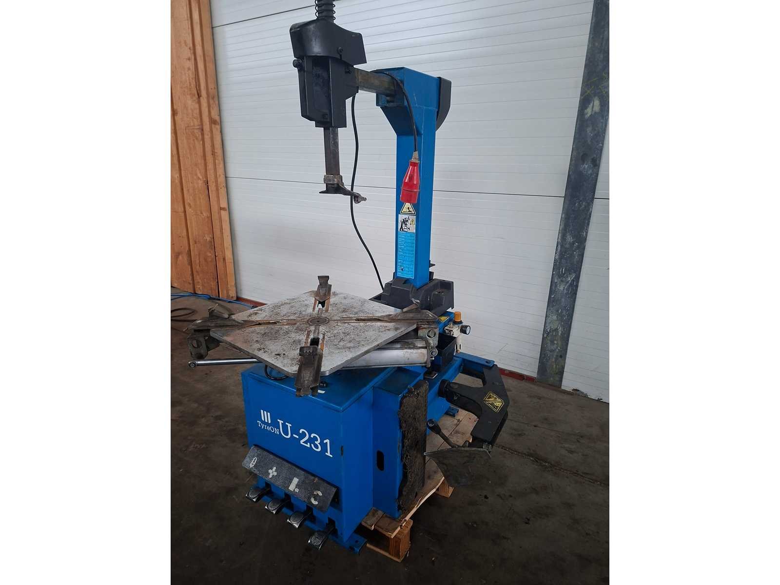 Bandenwisselaar machine op en inclusief 1 pallet Merk: TyreOn Type: U-231 Serienummer: T153549 Aansluiting: 400V Totale afmeting L: 1250mm Totale afmeting Breedte: 1000mm Totale afmeting Hoogte: 1900mm