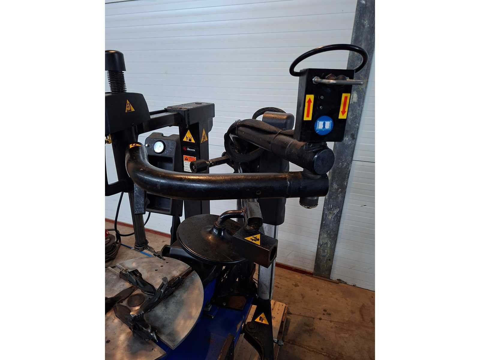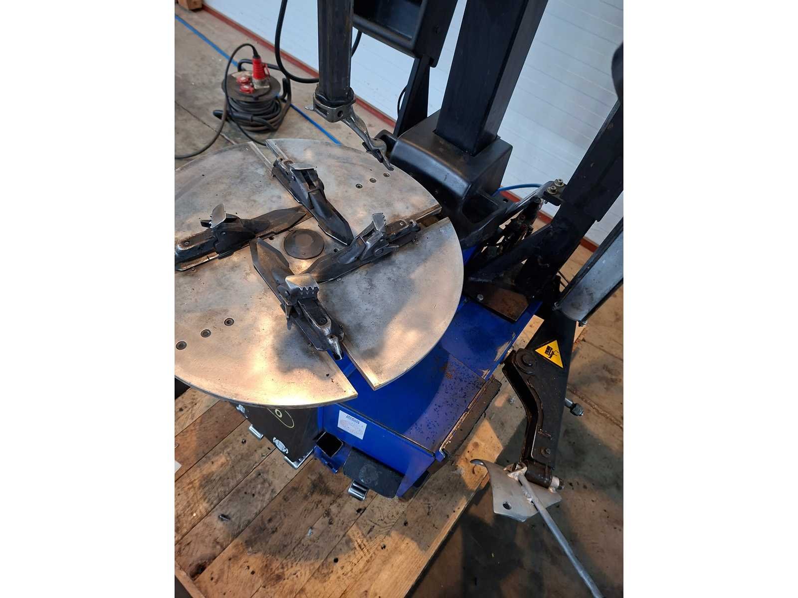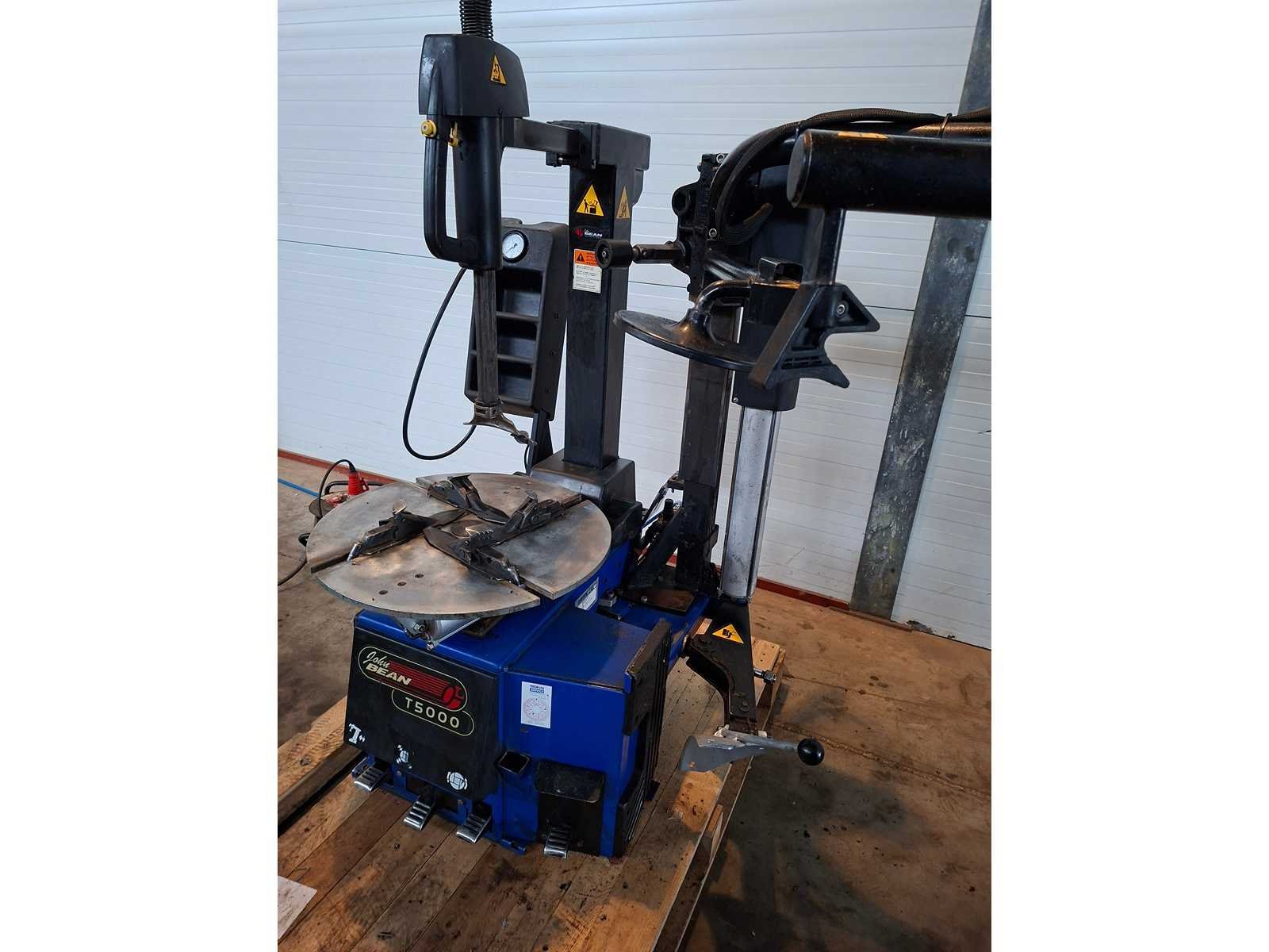 Bandenwisselaar machine 24" voorzien van hulparm, op en inclusief 1 pallet. Merk: John Bean Type: T5000 Bouwjaar: 2008 Serienummer: 0908.6028523.1 Aansluiting: 400V Totale afmeting L: 1300mm Totale afmeting Breedte: 1400mm Totale afmeting Hoogte: 1900mm