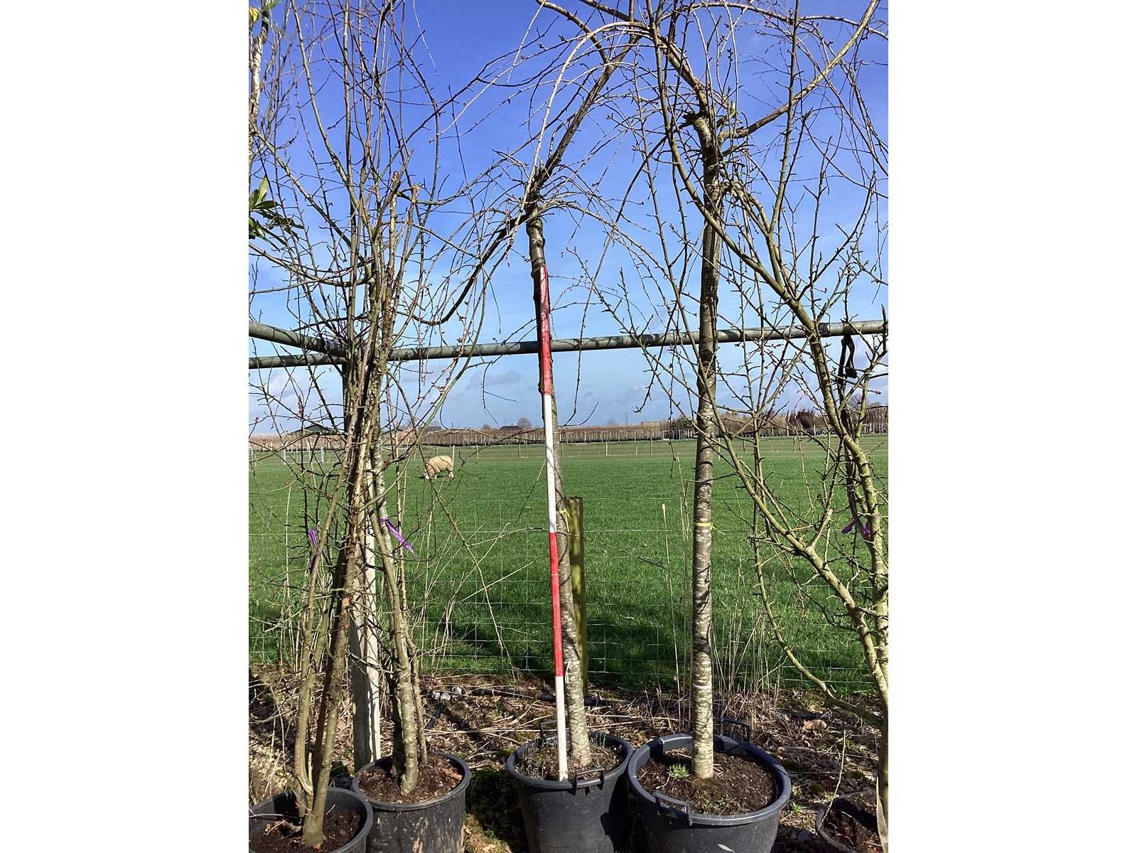 De kavels worden door ons verzameld en klaargelegd voor transport; Wilt u gebruik maken van de bezorgservice neem dan contact op via het emailadres arina@groviatrees.com. Voor overige vragen bel 0645641495 of 0633049344 Type: Cheal's Treurkers Latijnse benaming: Prunus kiku Zakura Shidare Hoogte ca.: 300cm In pot: true Stamdikte: 20cm