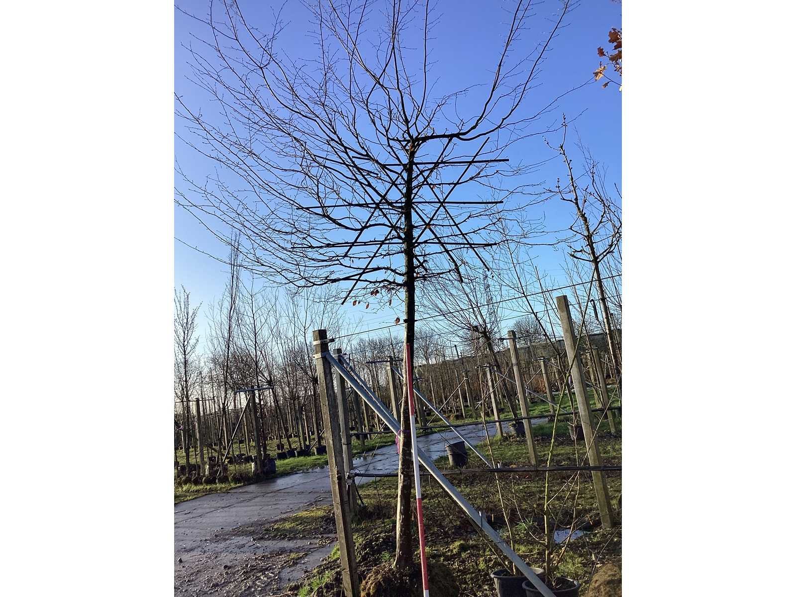 De kavels worden door ons verzameld en klaargelegd voor transport; Wilt u gebruik maken van de bezorgservice neem dan contact op via het emailadres arina@groviatrees.com. Voor overige vragen bel 0645641495 of 0633049344 Type: Haagbeuk Latijnse benaming: Carpinus Hoogte ca.: 350cm Met kluit: true Stamdikte: 25cm