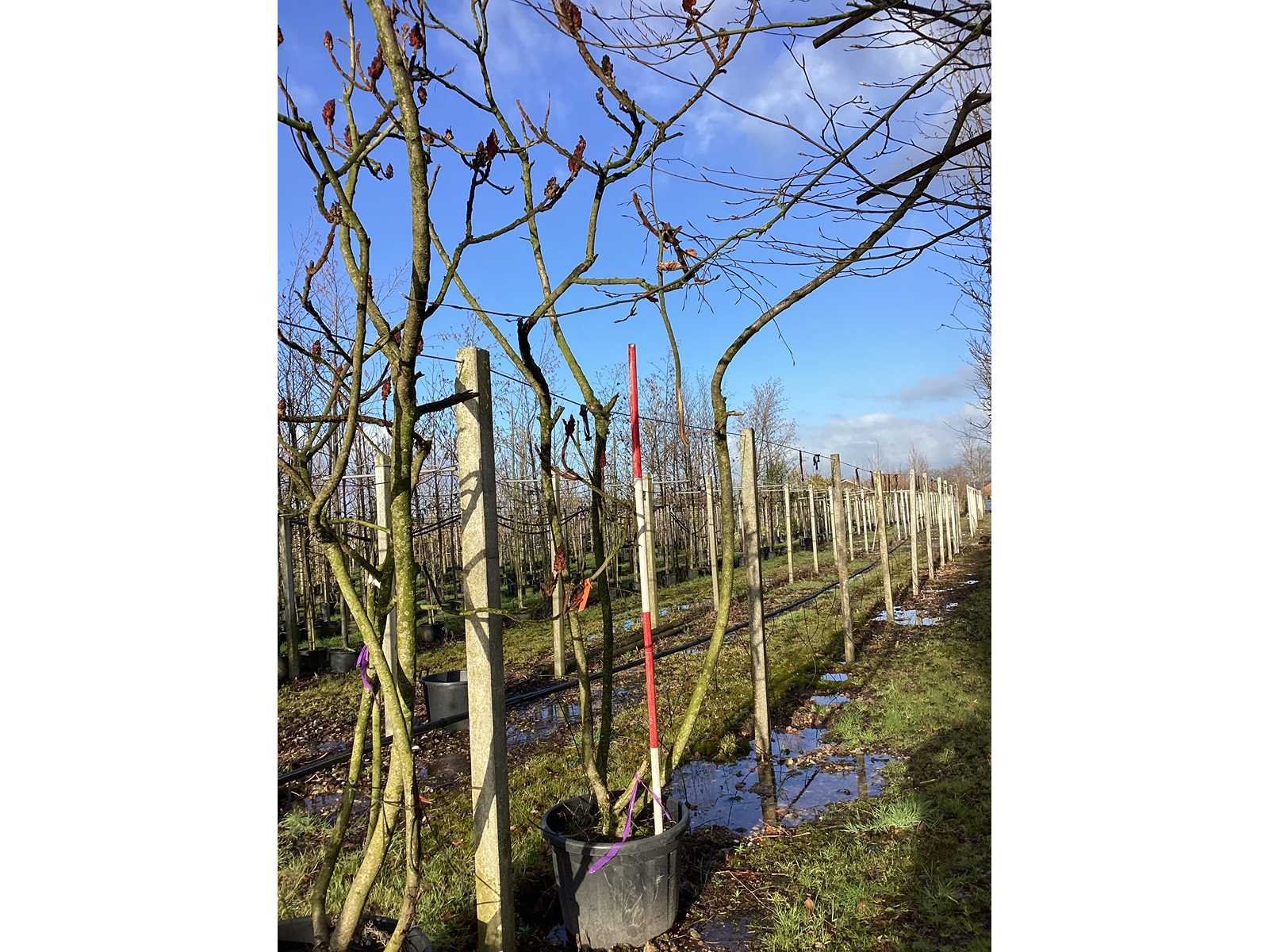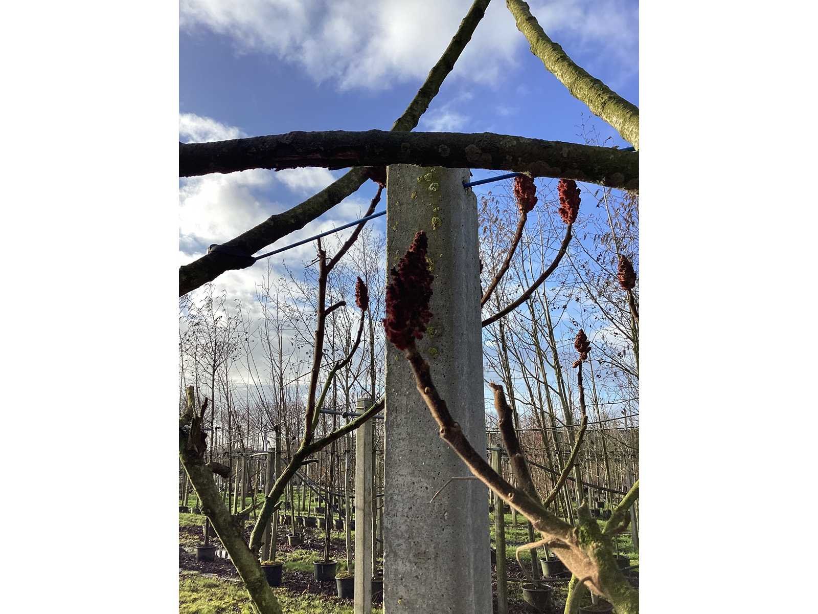 De kavels worden door ons verzameld en klaargelegd voor transport; Wilt u gebruik maken van de bezorgservice neem dan contact op via het emailadres arina@groviatrees.com. Voor overige vragen bel 0645641495 of 0633049344 Type: Fluweelboom Latijnse benaming: Rhus Typhina Hoogte ca.: 300cm In pot: true Stamdikte: 20cm